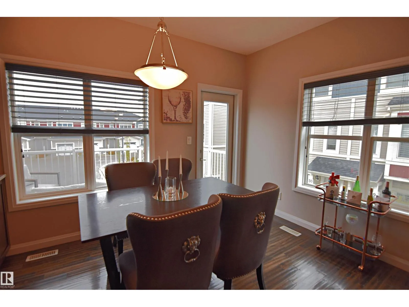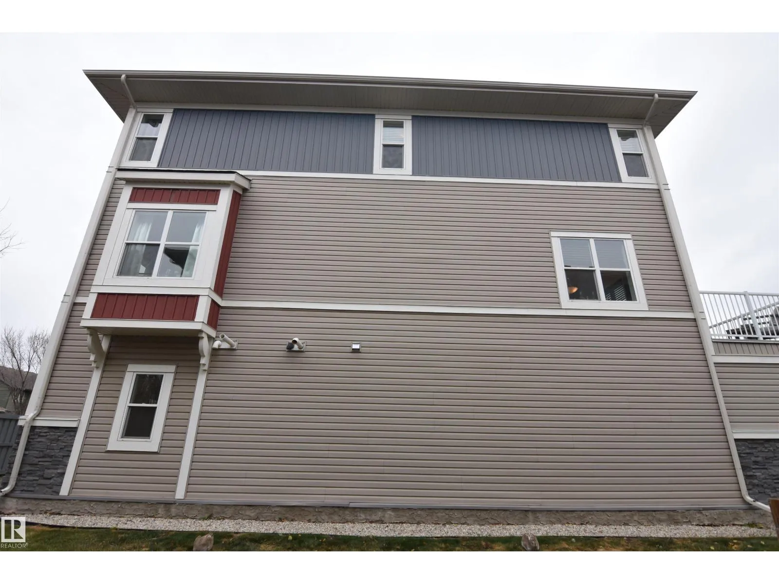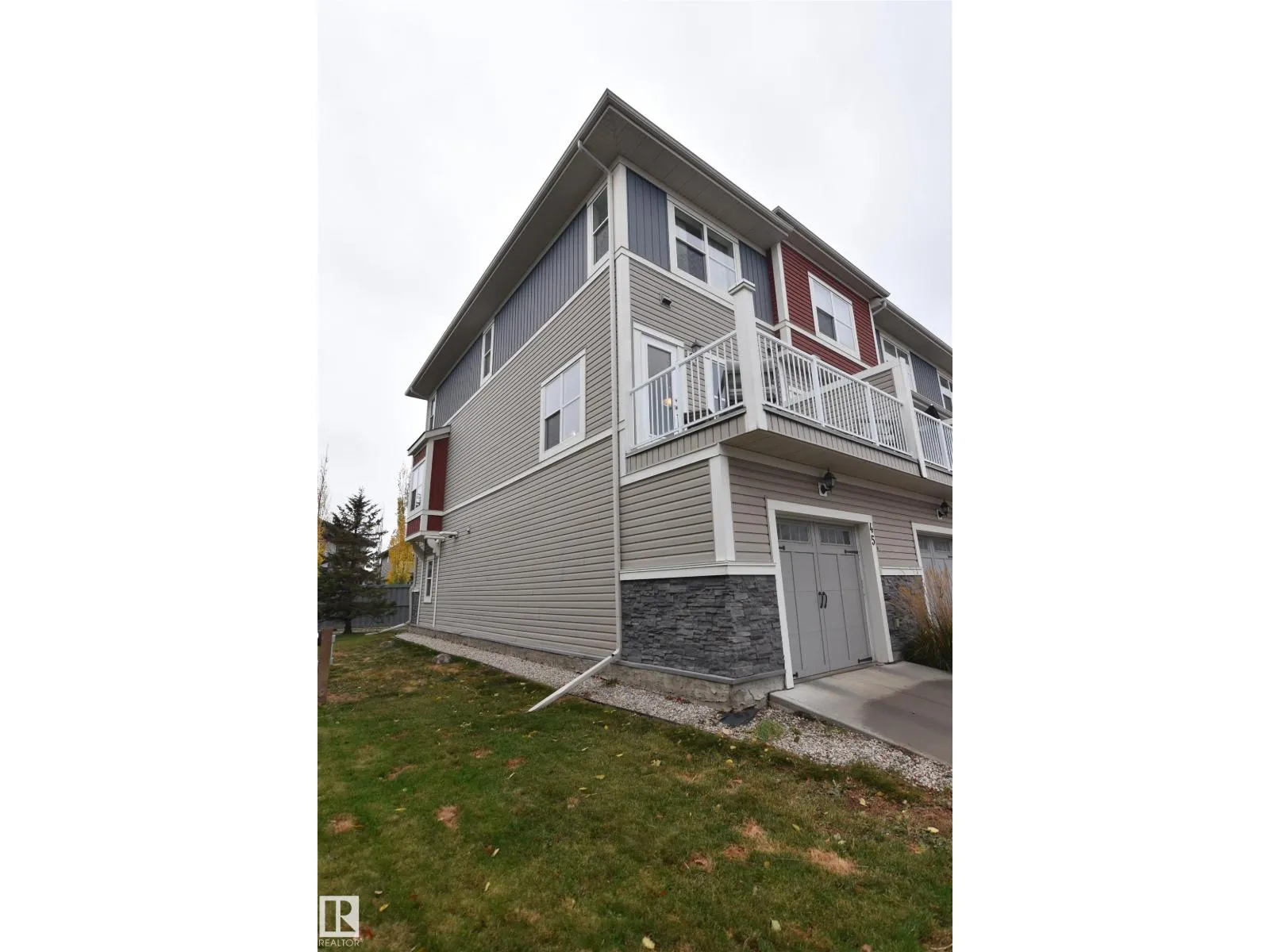 Modern end unit townhome at Eve in Ambleside, this 1529 sqft home features 9' ceilings on 3 levels, a huge 8' x 14' balcony w/ a natural gas hookup for the BBQ. The lower entry level features a flex room adjacent to the front entry, a large front entry closet, laundry with front load washer & dryer, and access to the oversized 23'x13' insulated & heated garage - room to fit a full size truck!. The main floor features hardwood flooring throughout, a bright & spacious living room, 2-piece bathroom, and a large kitchen which has beautiful granite countertops, an eating bar and a large amount of extra cabinet space. Enjoy the sunlight with the additional end-unit windows throughout. The upper level opens up into two primary bedrooms, w, a 3-piece and a 4-piece ensuite, and double closets in each bedroom. Brand new carpets and the home has been professionally painted throughout. Includes an additional titled surface parking stall. Walking distance to transit, schools & shopping. Move-in ready! (id:27476)