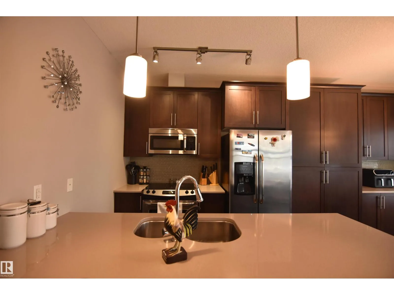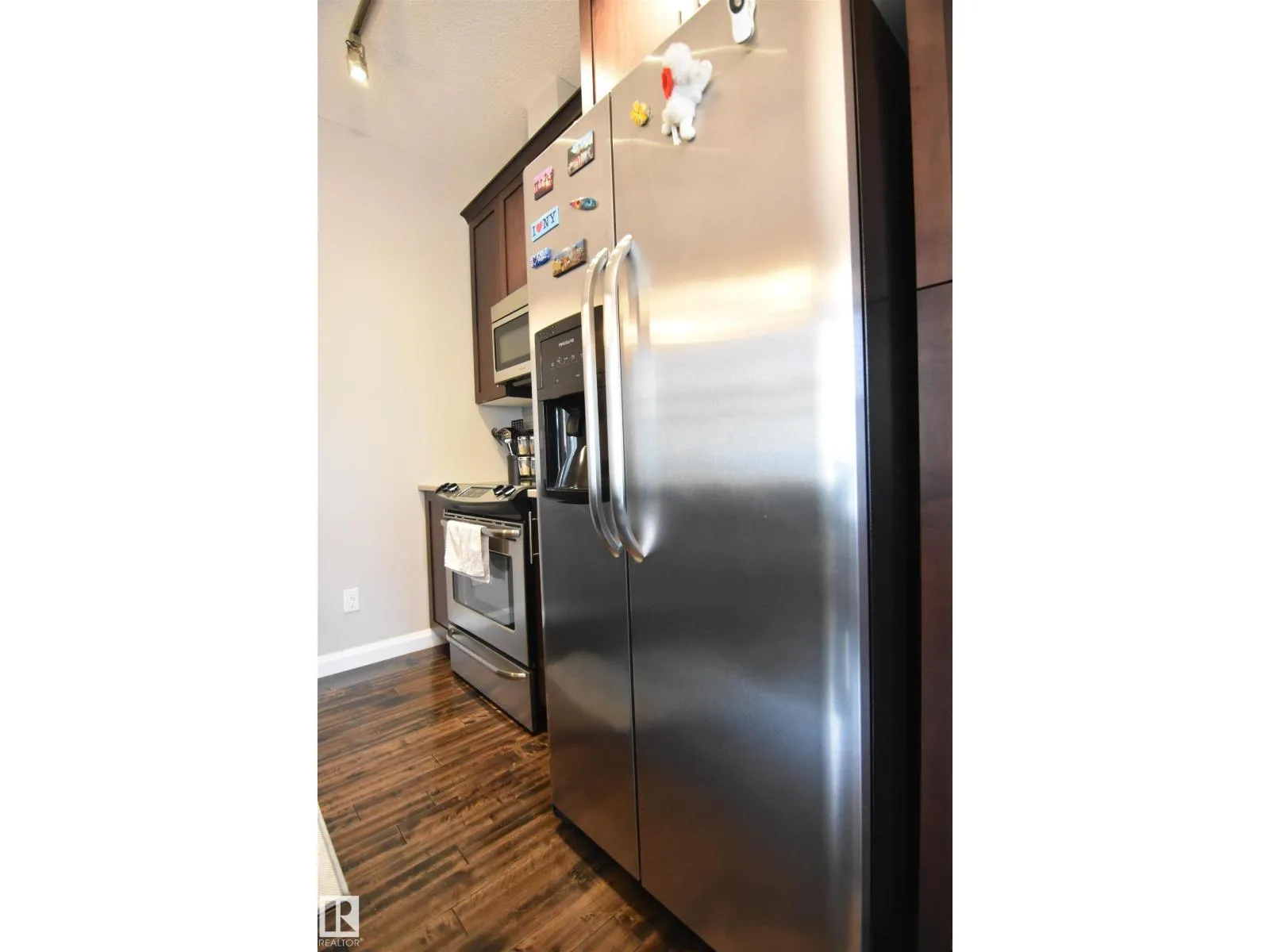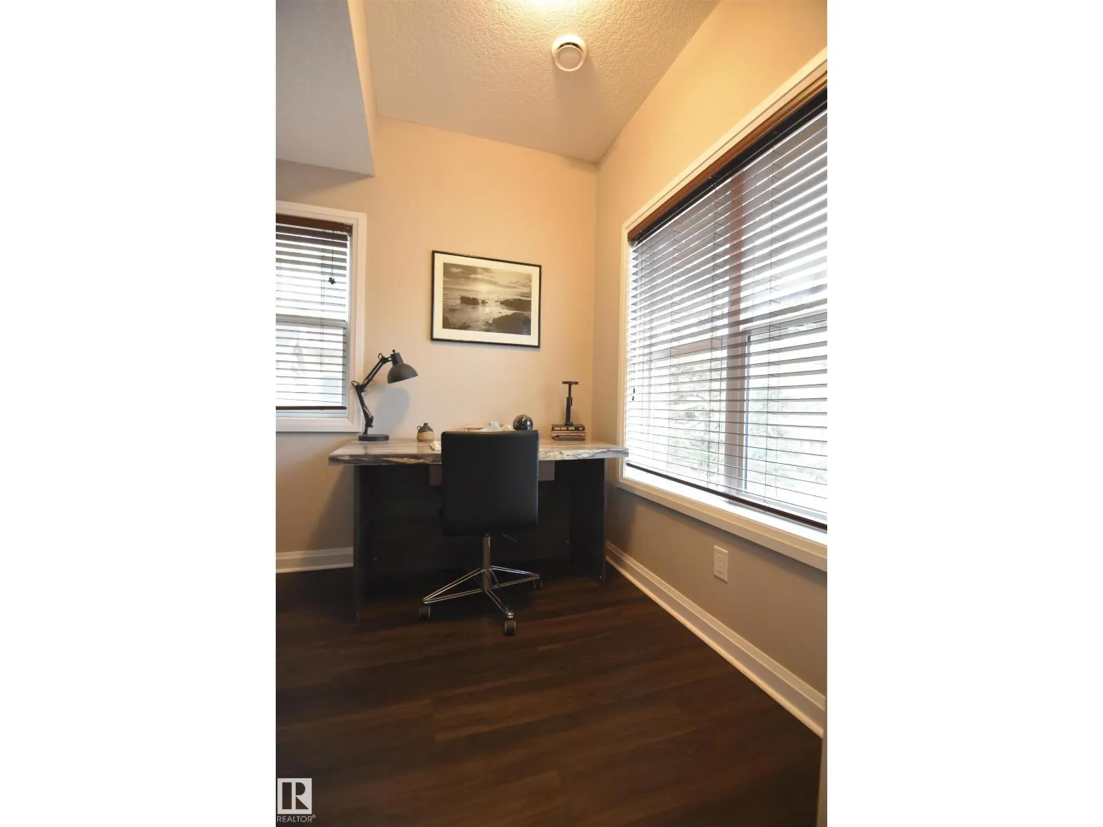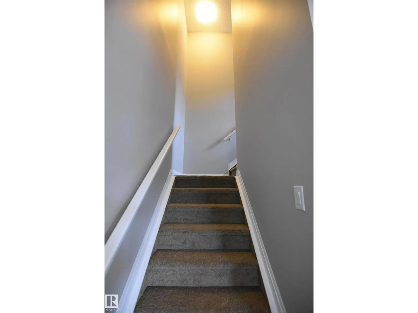 Modern end unit townhome at Eve in Ambleside, this 1529 sqft home features 9' ceilings on 3 levels, a huge 8' x 14' balcony w/ a natural gas hookup for the BBQ. The lower entry level features a flex room adjacent to the front entry, a large front entry closet, laundry with front load washer & dryer, and access to the oversized 23'x13' insulated & heated garage - room to fit a full size truck!. The main floor features hardwood flooring throughout, a bright & spacious living room, 2-piece bathroom, and a large kitchen which has beautiful granite countertops, an eating bar and a large amount of extra cabinet space. Enjoy the sunlight with the additional end-unit windows throughout. The upper level opens up into two primary bedrooms, w, a 3-piece and a 4-piece ensuite, and double closets in each bedroom. Brand new carpets and the home has been professionally painted throughout. Includes an additional titled surface parking stall. Walking distance to transit, schools & shopping. Move-in ready! (id:27476)