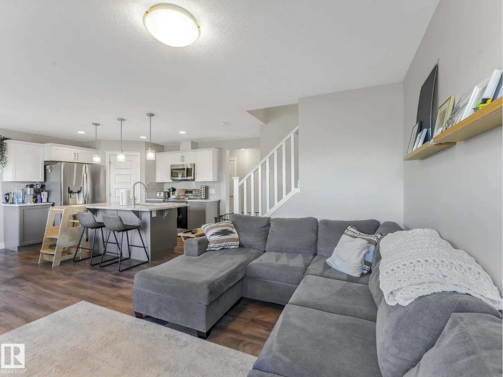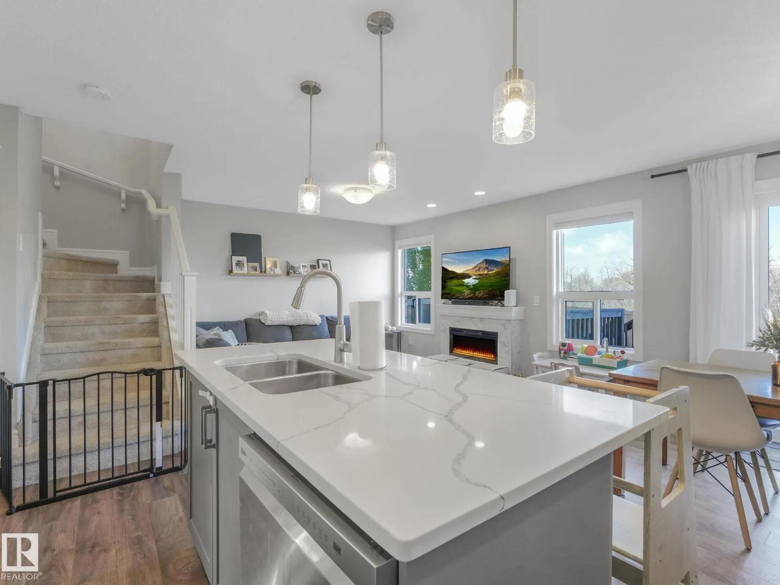Beautifully maintained half duplex, backing onto Ravine and walking trails in desirable Starling! This modern 3 bed, 2.5 bath home features an open-concept layout with quartz countertops, white cabinetry, tiled backsplash, and a functional eat-up island. New appliances including the fridge and dishwasher. Upstairs offers a spacious primary suite with walk-in closet and ensuite, plus laundry and bonus space. Upstairs you will also find 2 additional bedrooms. Enjoy year-round comfort with NEW central A/C, a fully landscaped yard, large rear deck, and double attached garage. Steps to parks, trails, and minutes to St. Albert and the Anthony Henday! The incredible view from the home and backyard make this one truly exceptional! (id:27476)