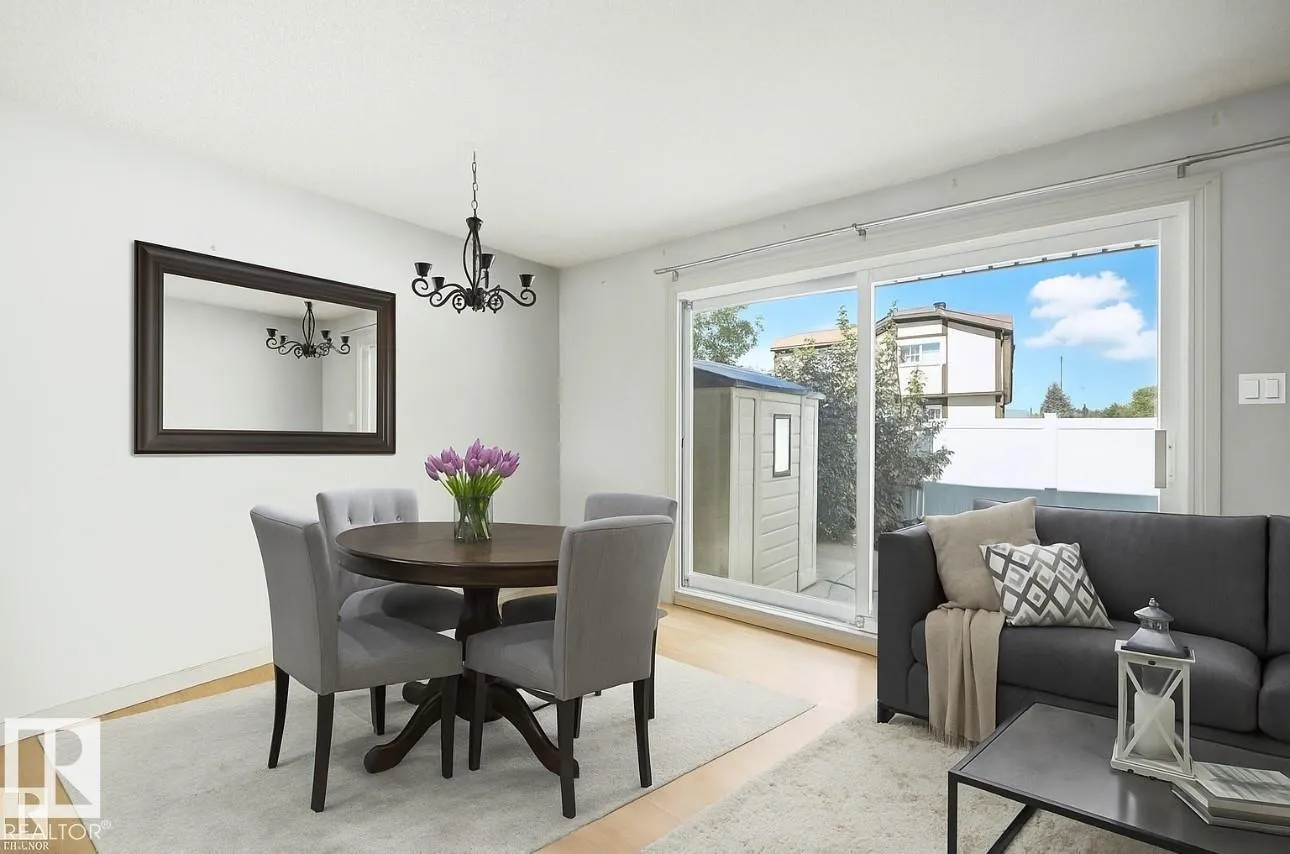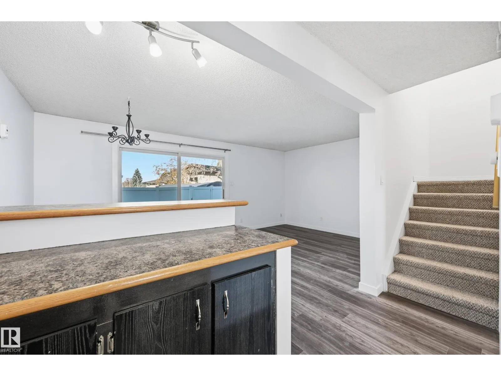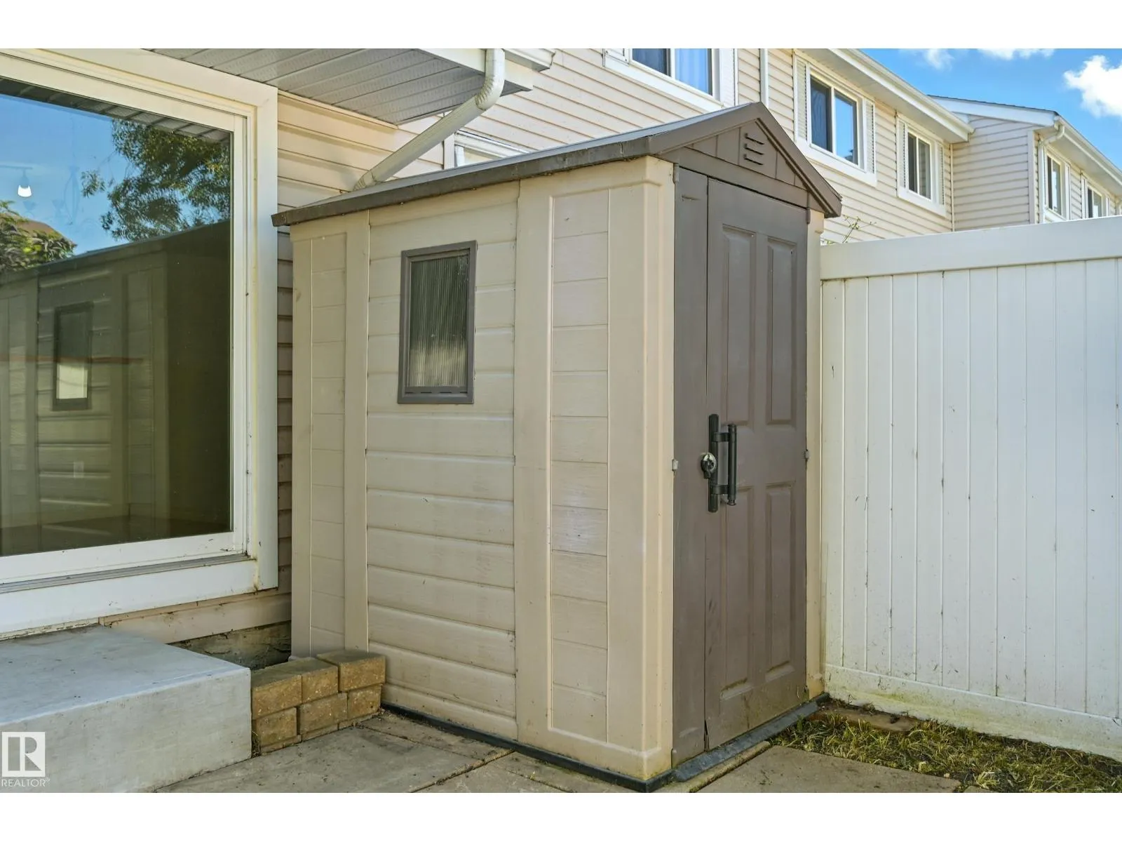 Gorgeous Townhome with Elegant Living Spaces. This beautifully maintained townhome offers 990 sqft of elegant living with 3 beds and 1.5 baths. Featuring stunning curb appeal with a modern vinyl exterior, this home welcomes you with an inviting front entry leading into a spacious and bright living area. The chefâs kitchen impresses from every angle, showcasing tasteful finishes, painted cabinetry, tile flooring, and a functional island bar. Upstairs, youâll find three generous bedrooms and a full bathroom designed for comfort and practicality. The fully finished basement expands your living space perfect for entertaining or relaxing and includes a large family room and a dedicated laundry area. Step outside to your fully fenced private backyard, with a cement pad ideal for a patio set or BBQ area, plus a storage shed for added convenience. Parking is a breeze with your stall right in front of the unit, along with plenty of visitor parking nearby. Located in a prime area close to schools and parks. (id:27476)