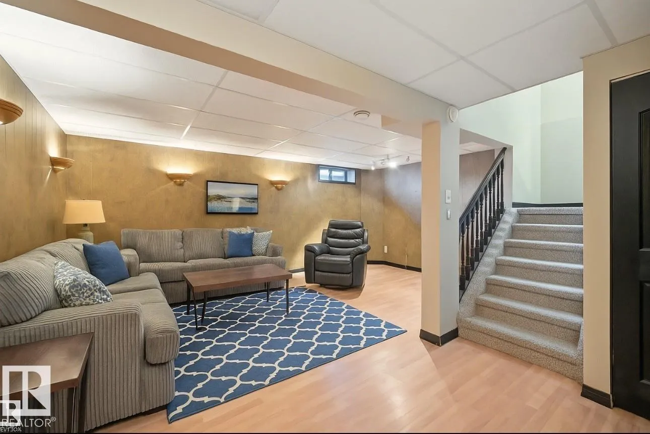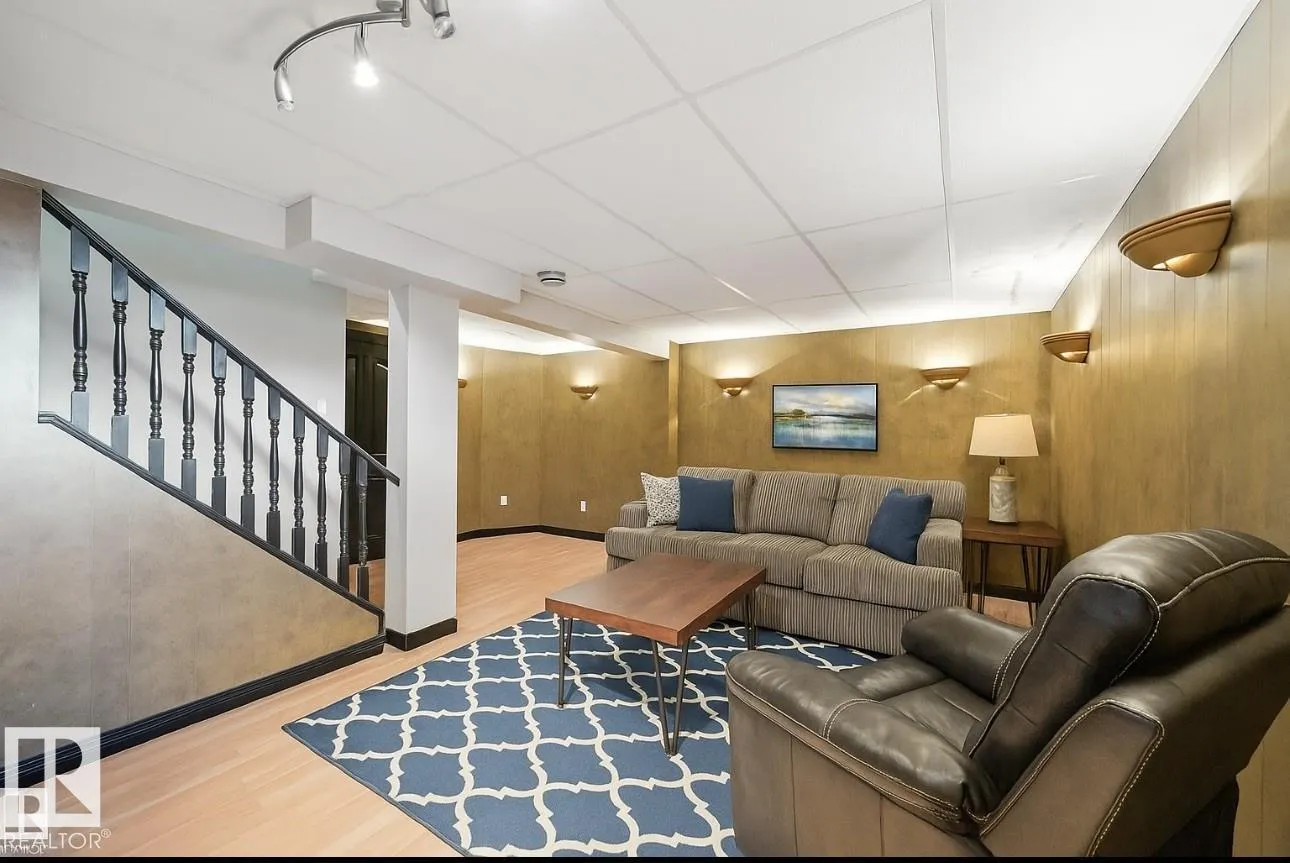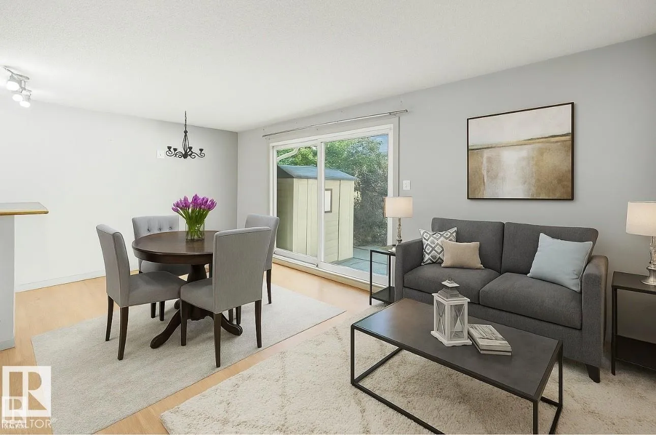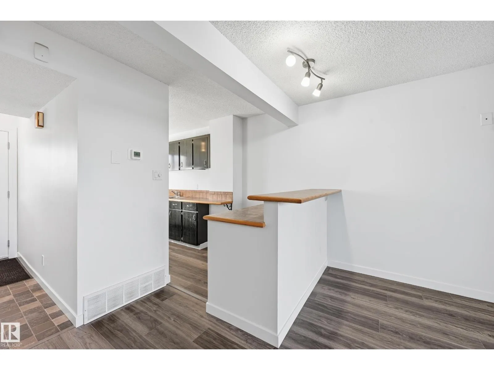 Gorgeous Townhome with Elegant Living Spaces. This beautifully maintained townhome offers 990 sqft of elegant living with 3 beds and 1.5 baths. Featuring stunning curb appeal with a modern vinyl exterior, this home welcomes you with an inviting front entry leading into a spacious and bright living area. The chefâs kitchen impresses from every angle, showcasing tasteful finishes, painted cabinetry, tile flooring, and a functional island bar. Upstairs, youâll find three generous bedrooms and a full bathroom designed for comfort and practicality. The fully finished basement expands your living space perfect for entertaining or relaxing and includes a large family room and a dedicated laundry area. Step outside to your fully fenced private backyard, with a cement pad ideal for a patio set or BBQ area, plus a storage shed for added convenience. Parking is a breeze with your stall right in front of the unit, along with plenty of visitor parking nearby. Located in a prime area close to schools and parks. (id:27476)