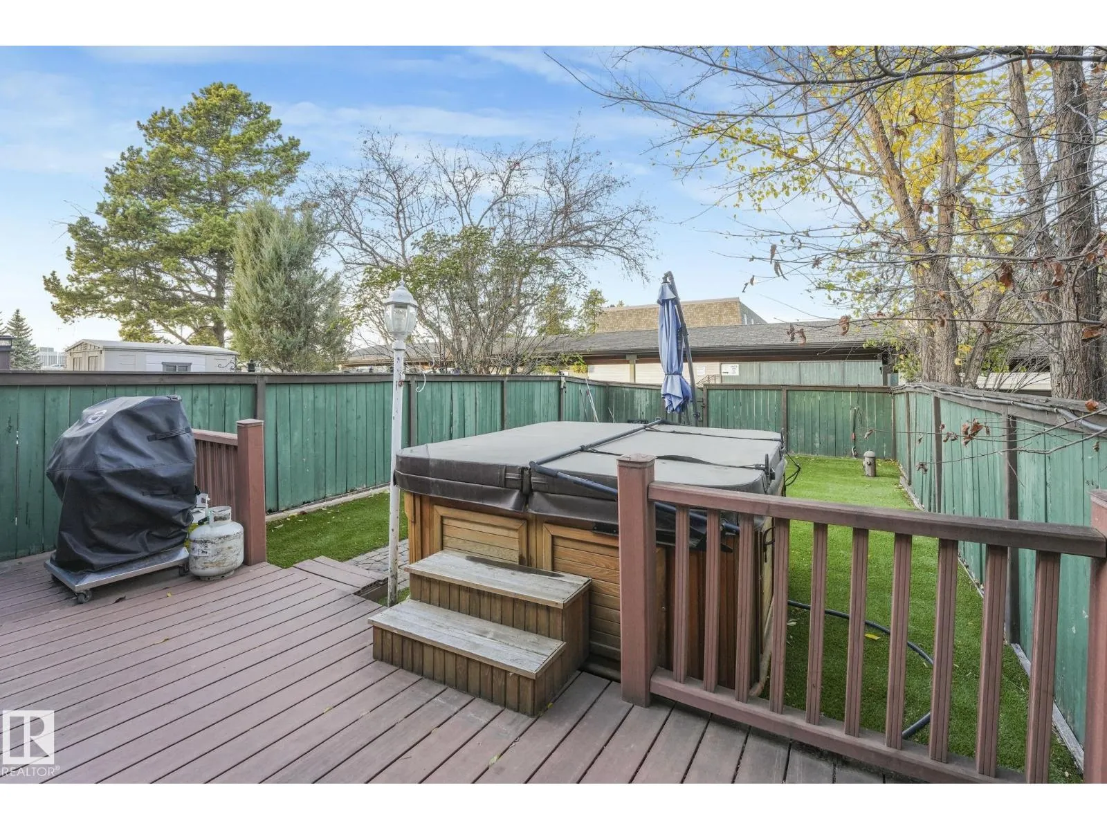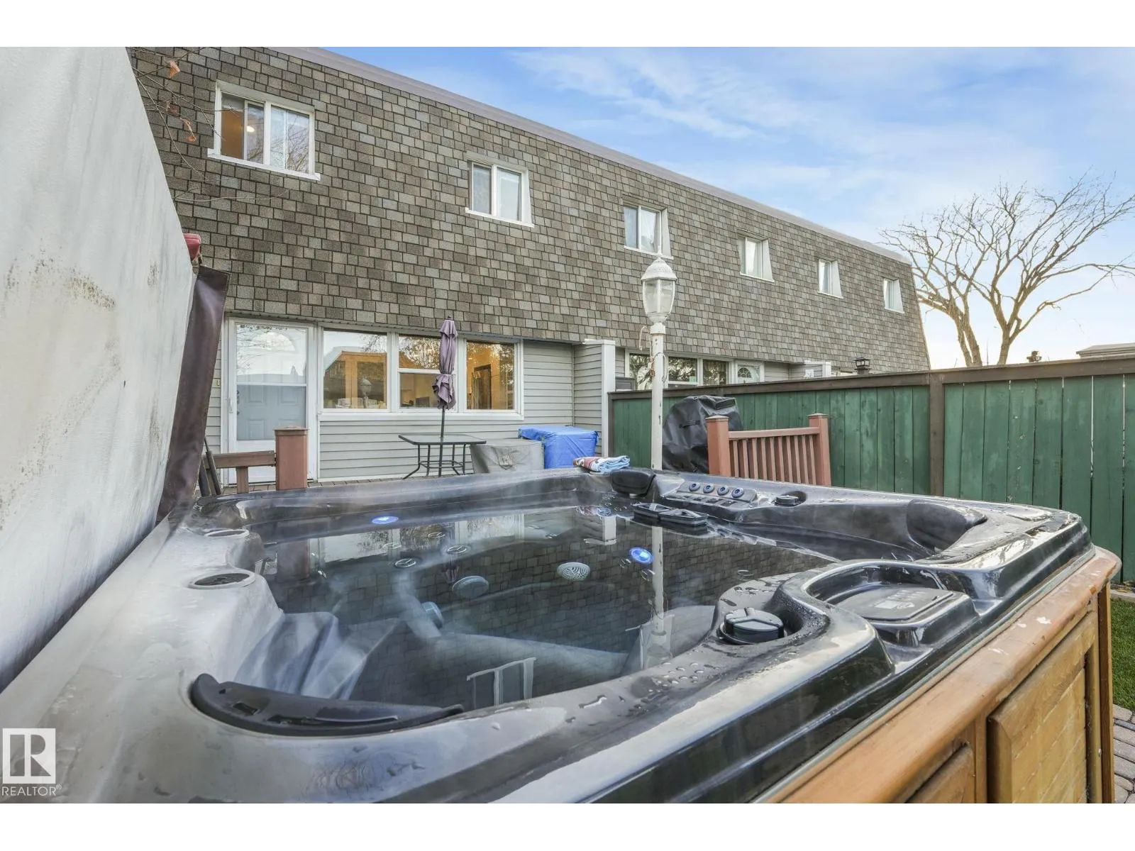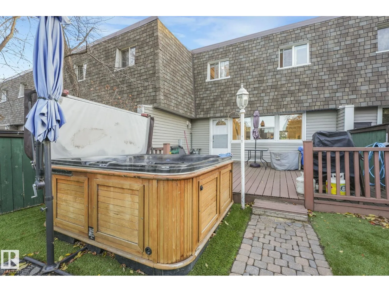 This professionally renovated 2-storey townhouse with upgraded finishings and appliances throughout is extremely well maintained. Upgrades include: Flooring, lighting, electrical, kitchen cabinets, taps, sinks, tile backsplash, toilets, tub, wood finishings, doors and much more! The main level offers a bright and spacious living room with a gorgeous stone feature wall. Walk through kitchen into the dining area, laundry area and a half bath complete the main floor. Upstairs there are 3 generous sized bedrooms with the Primary bedroom offering 2 closets, one which is a walk-in. The basement features a large rec room accommodated by a bar and a workshop area, perfect for entertaining. The backyard includes a large deck, professional installed artificial grass and newer High end Arctic Spas Hot Tub, as well as two covered parking stalls. Within walking distance of Londonderry Mall, schools, public transportation. (id:27476)