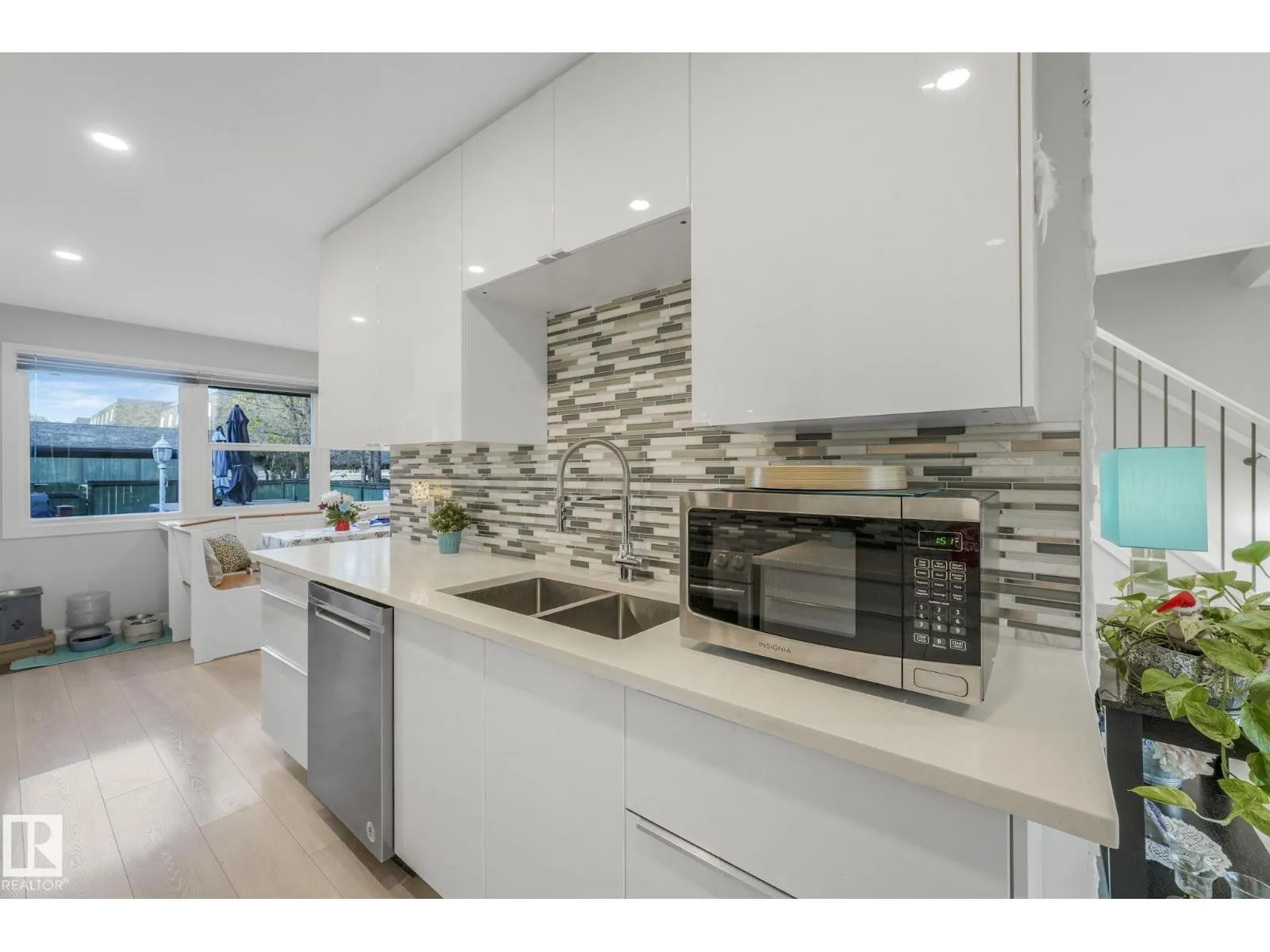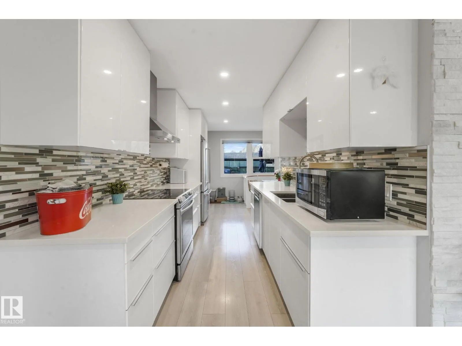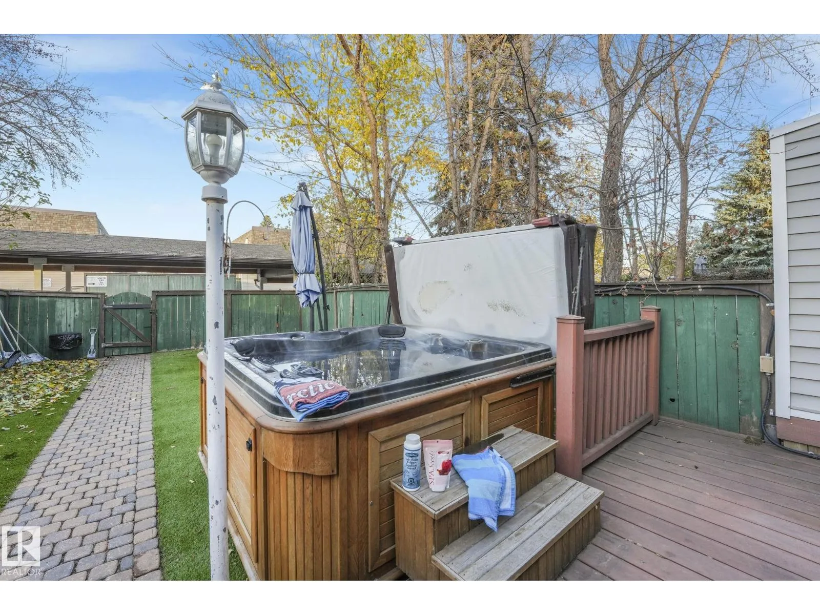 This professionally renovated 2-storey townhouse with upgraded finishings and appliances throughout is extremely well maintained. Upgrades include: Flooring, lighting, electrical, kitchen cabinets, taps, sinks, tile backsplash, toilets, tub, wood finishings, doors and much more! The main level offers a bright and spacious living room with a gorgeous stone feature wall. Walk through kitchen into the dining area, laundry area and a half bath complete the main floor. Upstairs there are 3 generous sized bedrooms with the Primary bedroom offering 2 closets, one which is a walk-in. The basement features a large rec room accommodated by a bar and a workshop area, perfect for entertaining. The backyard includes a large deck, professional installed artificial grass and newer High end Arctic Spas Hot Tub, as well as two covered parking stalls. Within walking distance of Londonderry Mall, schools, public transportation. (id:27476)