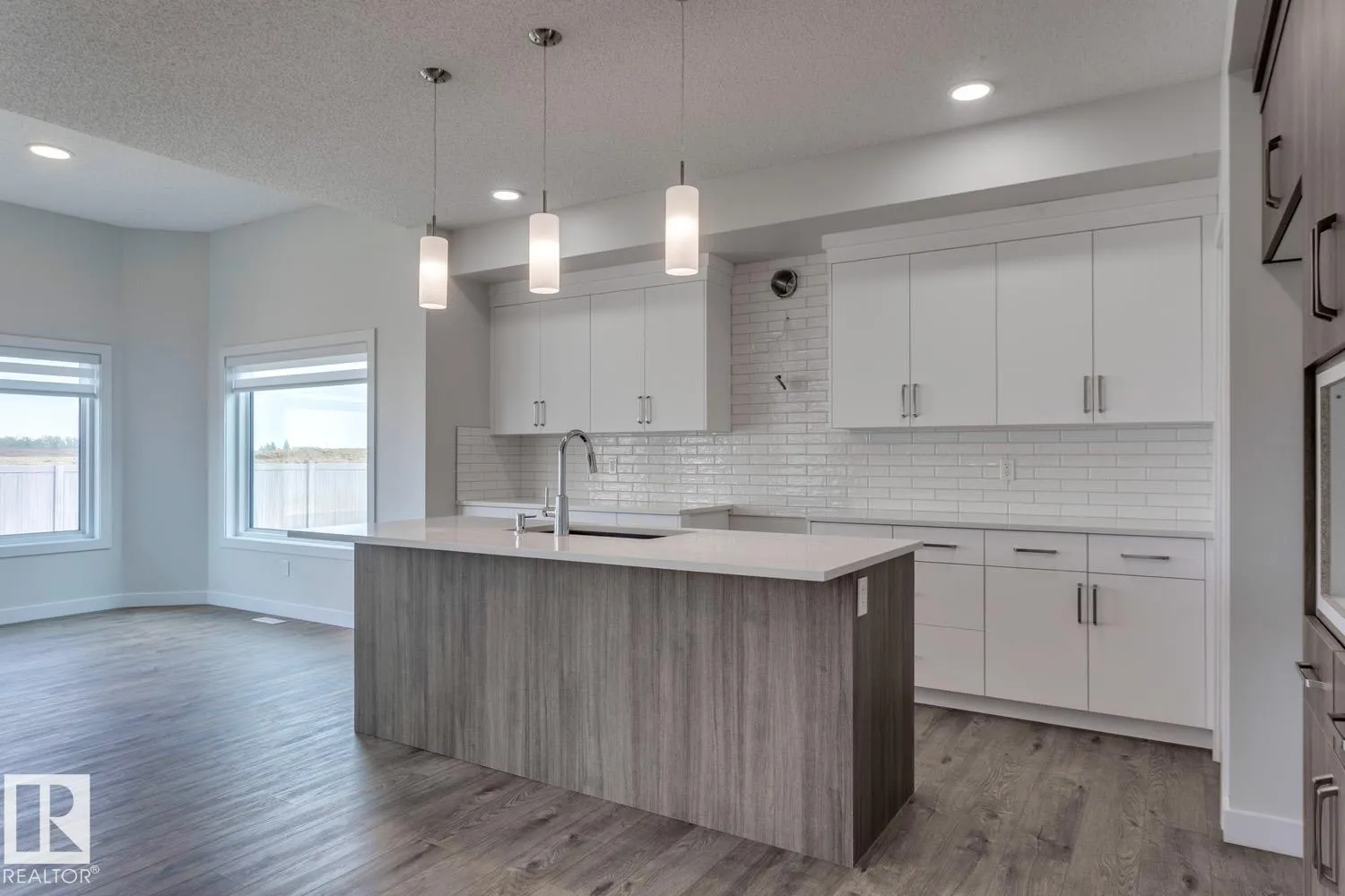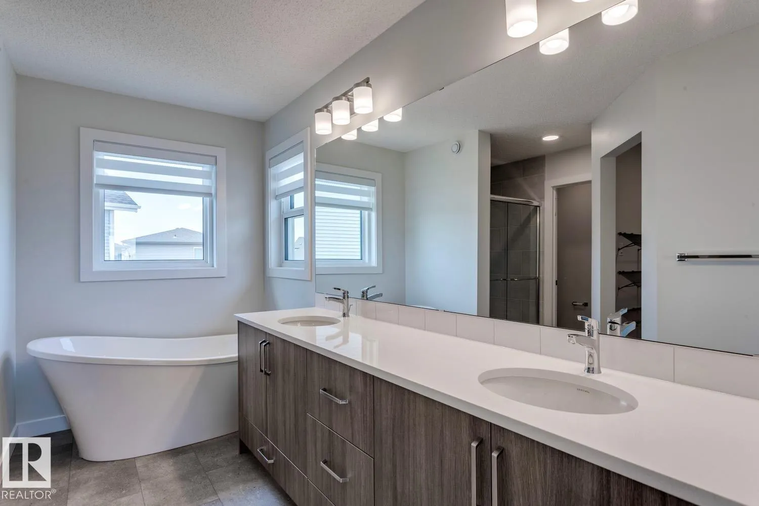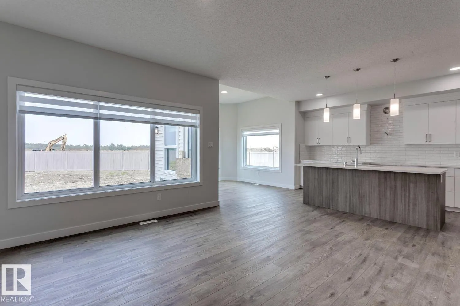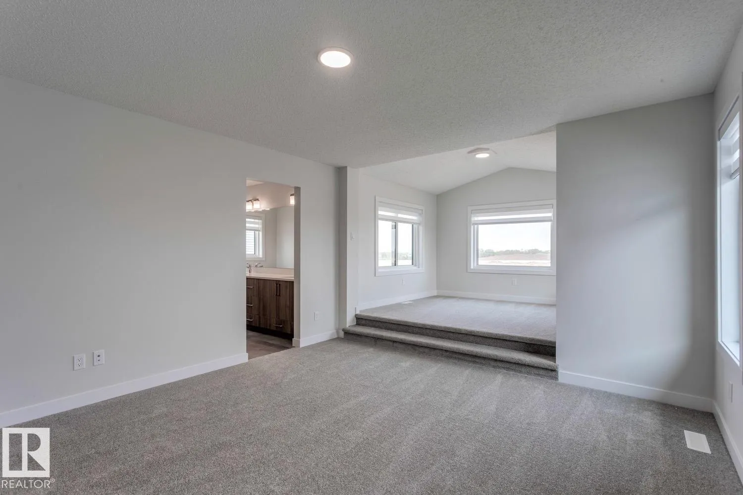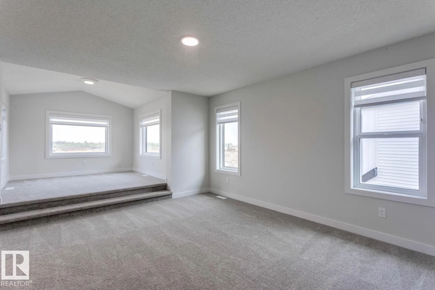 Welcome to the Apparition by Look Master Builder! This stunning 3-bedroom, 2.5-bath two-story home sits on a large pie-shaped lot in a quiet cul-de-sac in Rivers Edge. Features an open-to-above foyer, main floor den, stylish kitchen with island and walk-through pantry, and a cozy great room with electric fireplace. Upstairs offers a bonus room and a luxurious primary suite with raised sitting area, vaulted ceiling, double sinks, tiled shower, and freestanding soaker tub. Added upgrades include 9â foundation walls, 2 basement windows, railing with metal spindles, window coverings, 200 AMP electrical panel, and an extended garage. Modern design and thoughtful details throughout! Quick possession available! (id:27476)