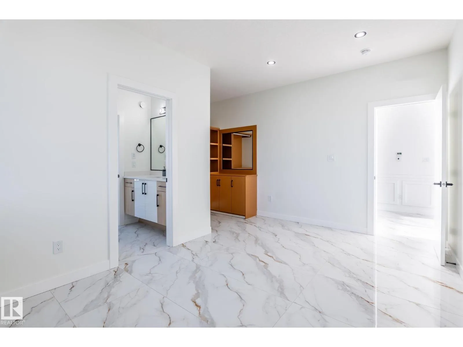 Welcome to an executive masterpiece in Gorman, where high-end custom finishes and intelligent dual-family design redefine modern living. This stunning, carpet-free home boasts high-quality tile and 7-inch vinyl plank throughout. The gourmet kitchen features custom cabinetry, elegant quartz countertops throughout, and a unique, fully ventilated spice kitchenâperfect for the passionate chef. This dual-family design features two distinct living areas, a main floor bedroom with 'cheater' ensuite, and main floor laundry, purpose-built for multi-generational comfort. The luxurious primary suite is a true sanctuary, with a dressing closet, custom lighting, and a private balcony overlooking the large, pie-shaped backyard. A separate entrance leads to the bright, 2-bed plus den basement suite, offering exceptional versatility and income potential. Situated near Anthony Henday Drive, your commute is effortless. Experience a space designed for the way you live today. (id:27476)