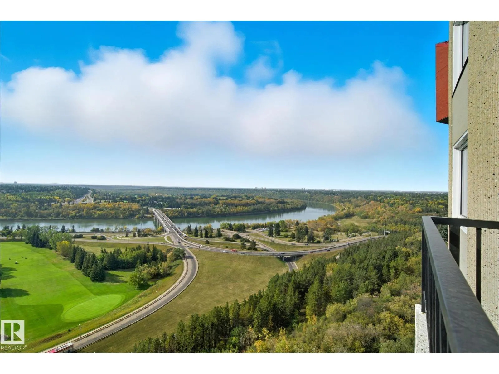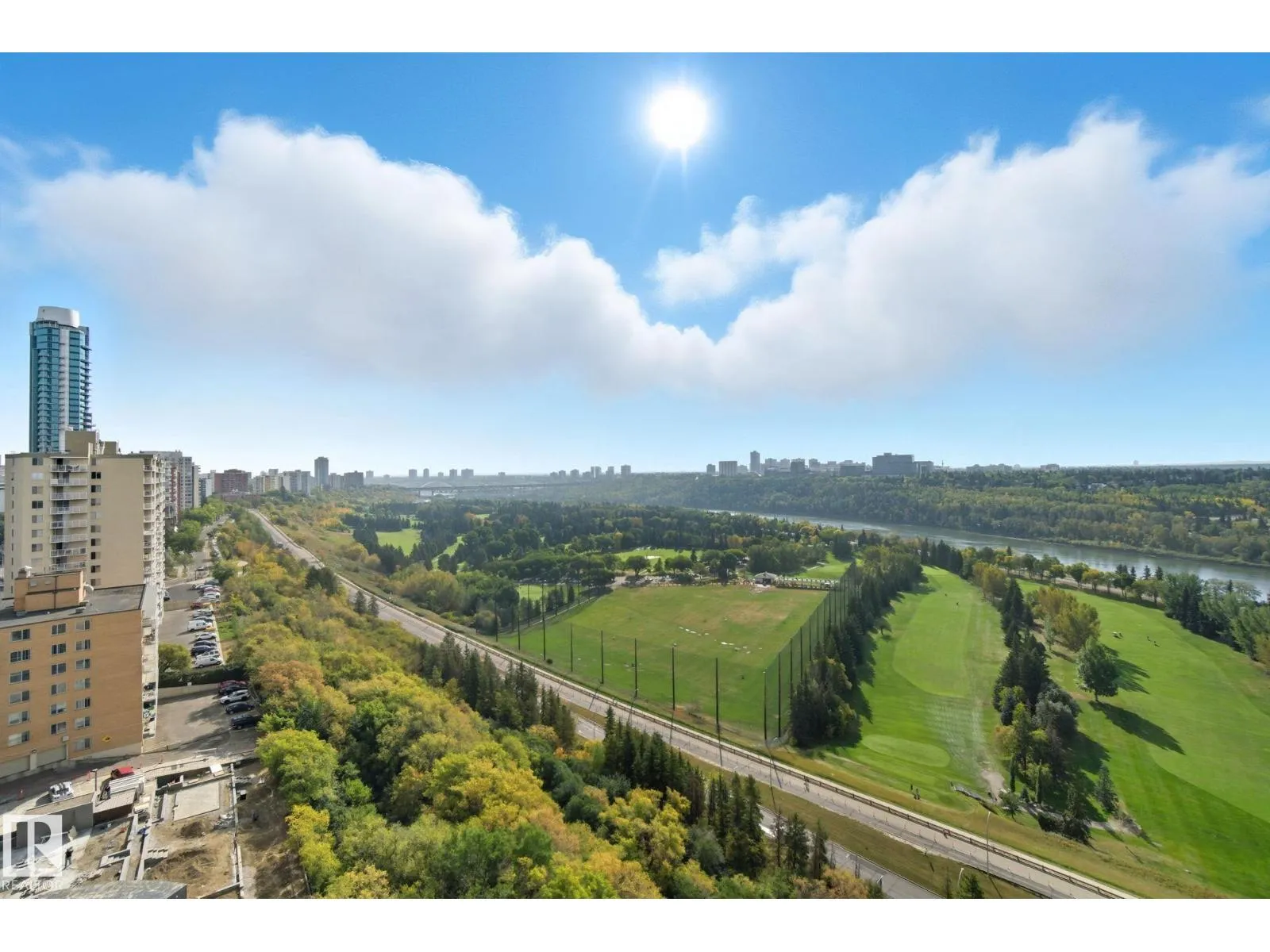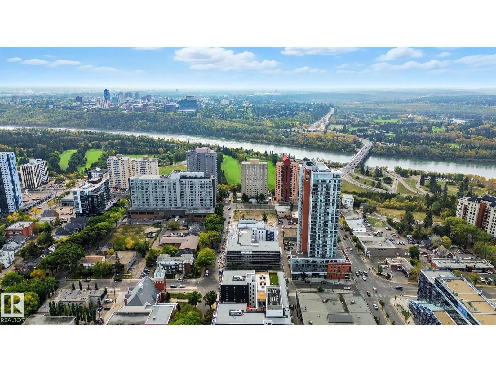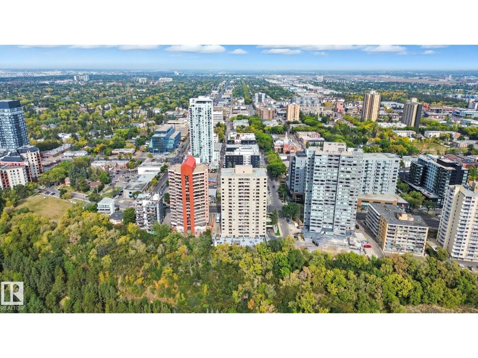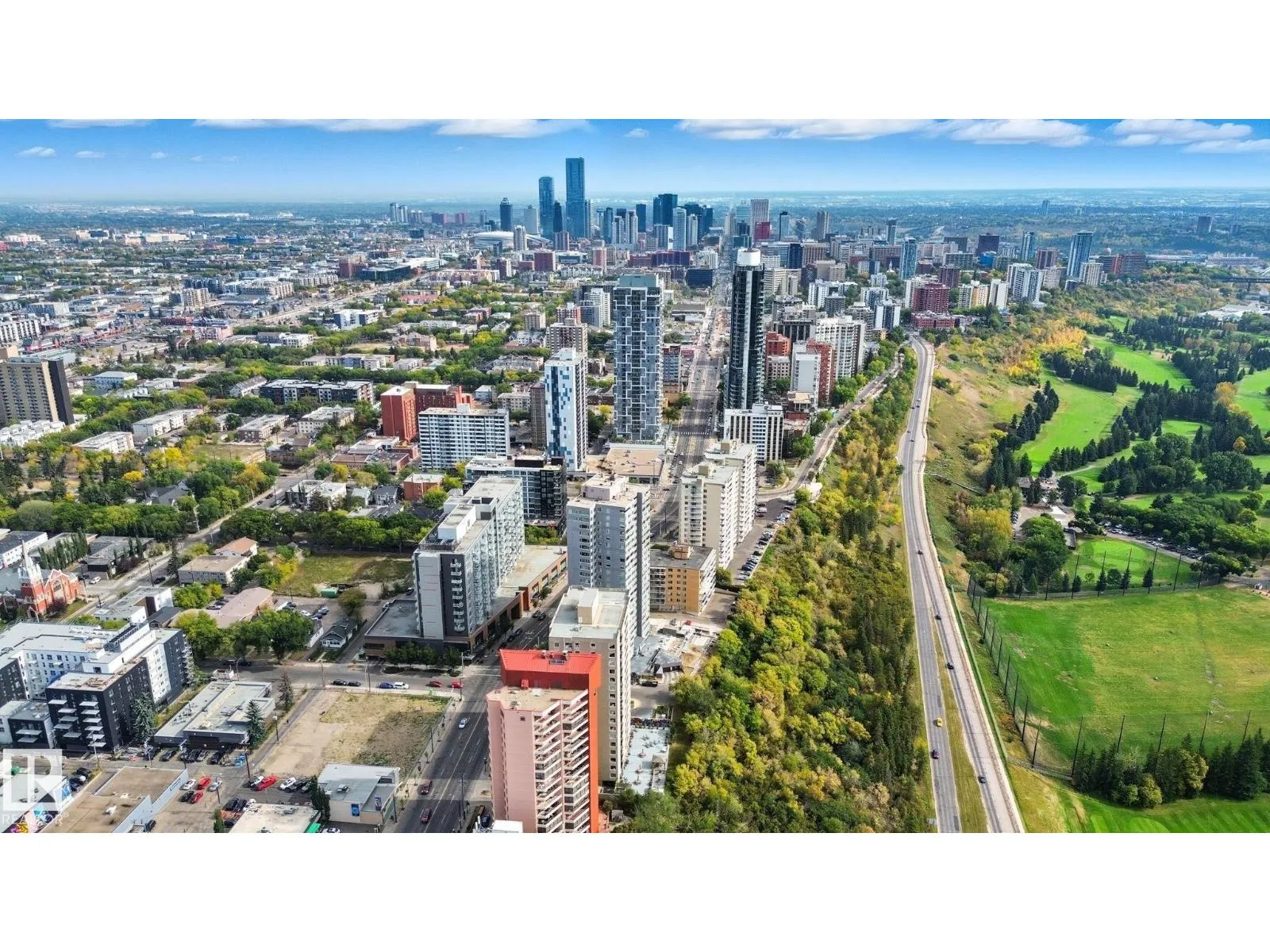 Located on the 16th floor, this immaculate corner unit offers breathtaking, panoramic views of the river valleyâtruly one of the best in the city! Flooded with natural light, this 2-bedroom, 2-bath home features a sleek galley kitchen with granite countertops and an open layout ideal for both entertaining and unwinding. Enjoy your morning coffee on your private balcony, as the sun rises over the skyline, or set up your home office with an inspiring view youâll never get tired of. Located in the highly desirable High Street District, youâre steps away from Edmontonâs top restaurants, local boutiques, and vibrant community life. The building offers premium amenitiesâsauna, fitness centre, car wash, workshop, and a resident patioâall designed for your comfort and convenience. Condo fees include heat, power, and air conditioning, giving you effortless living in the heart of the city. (id:27476)