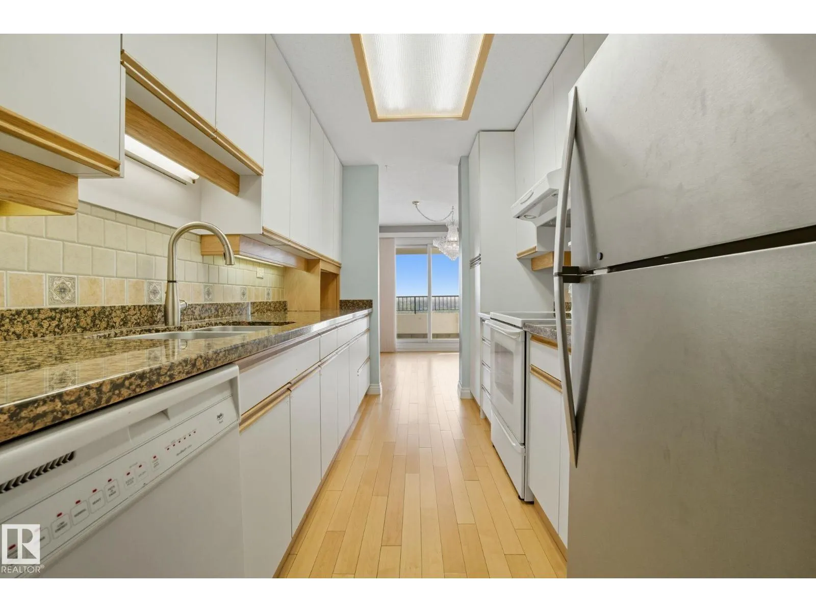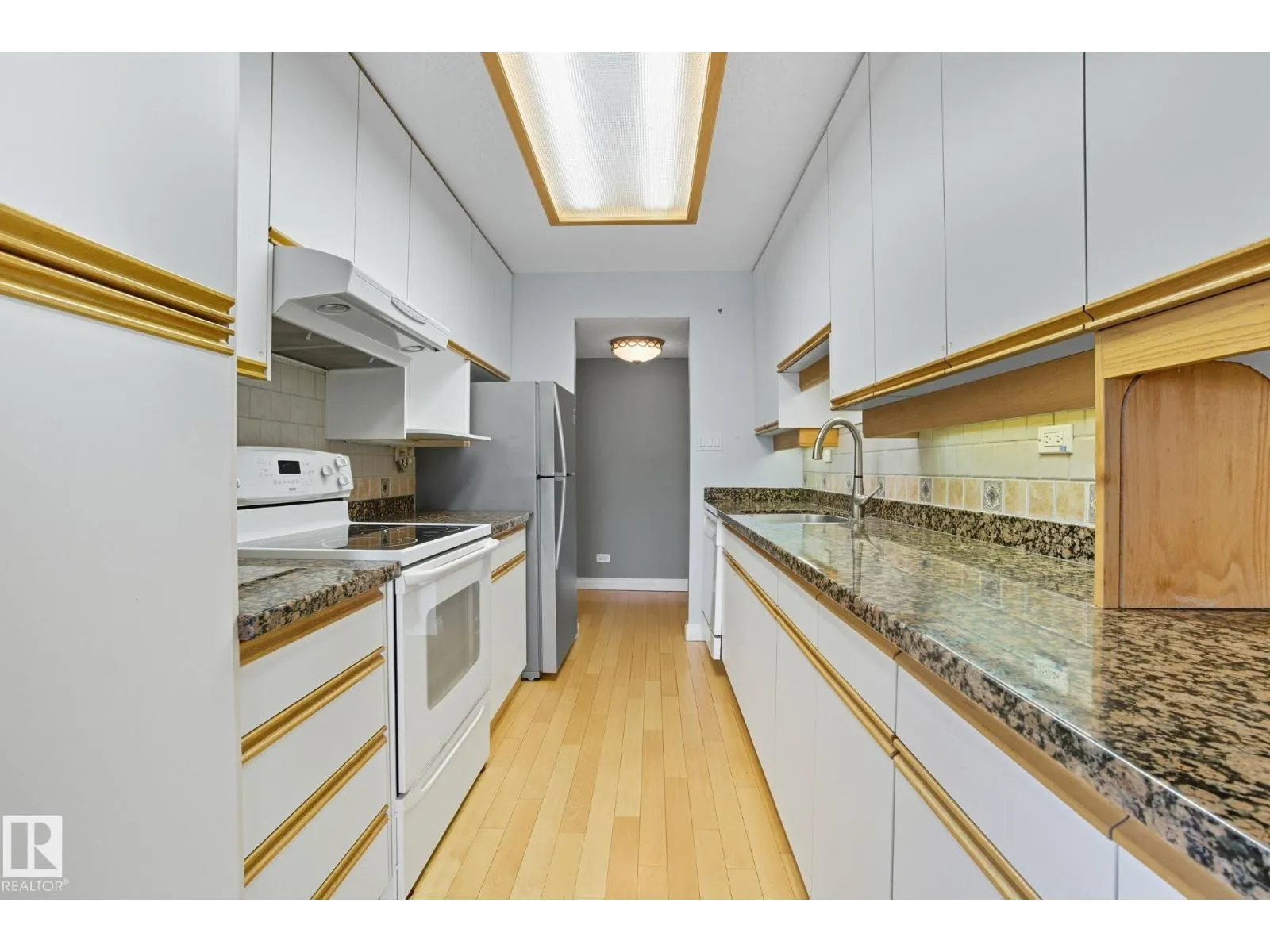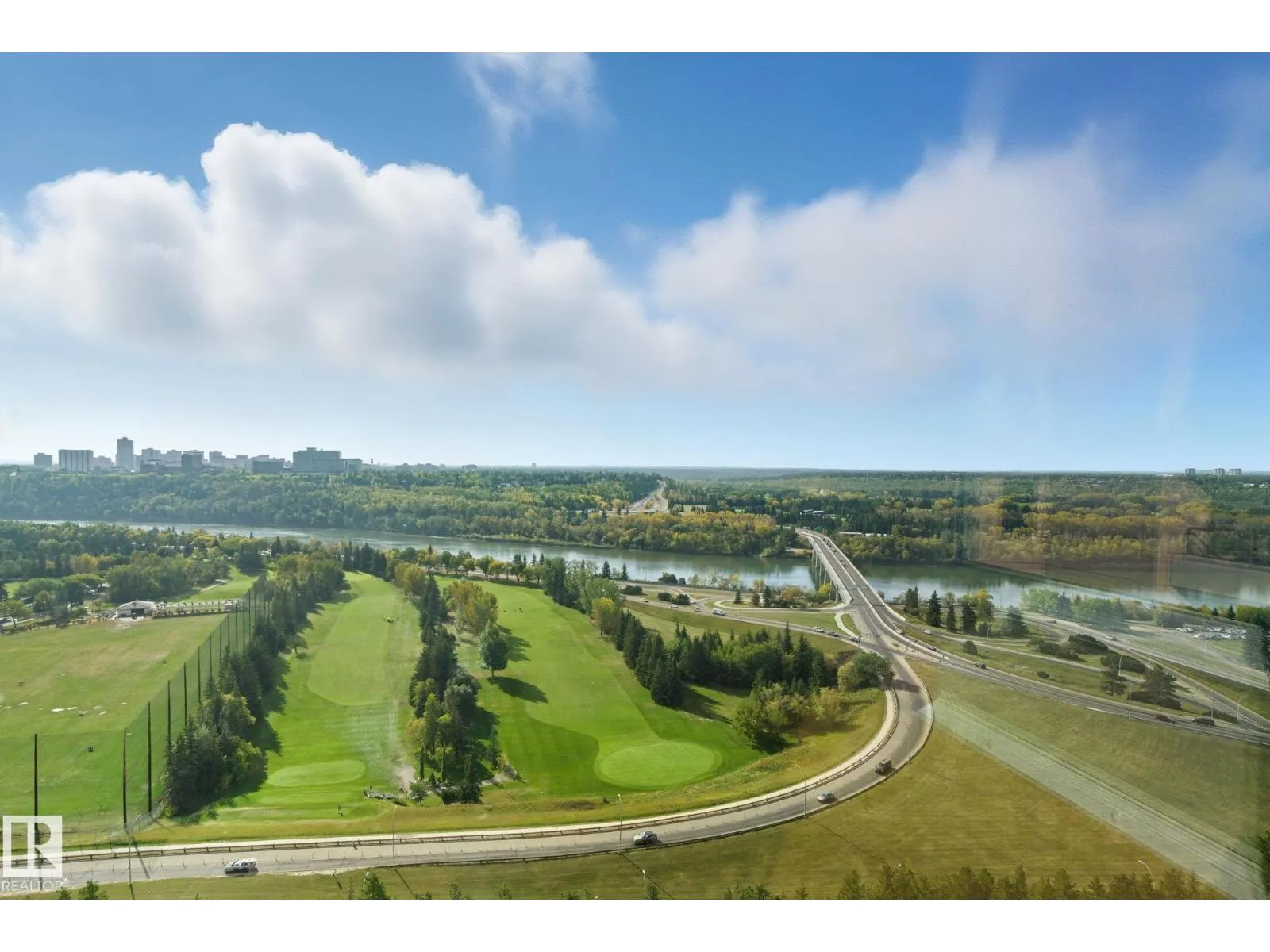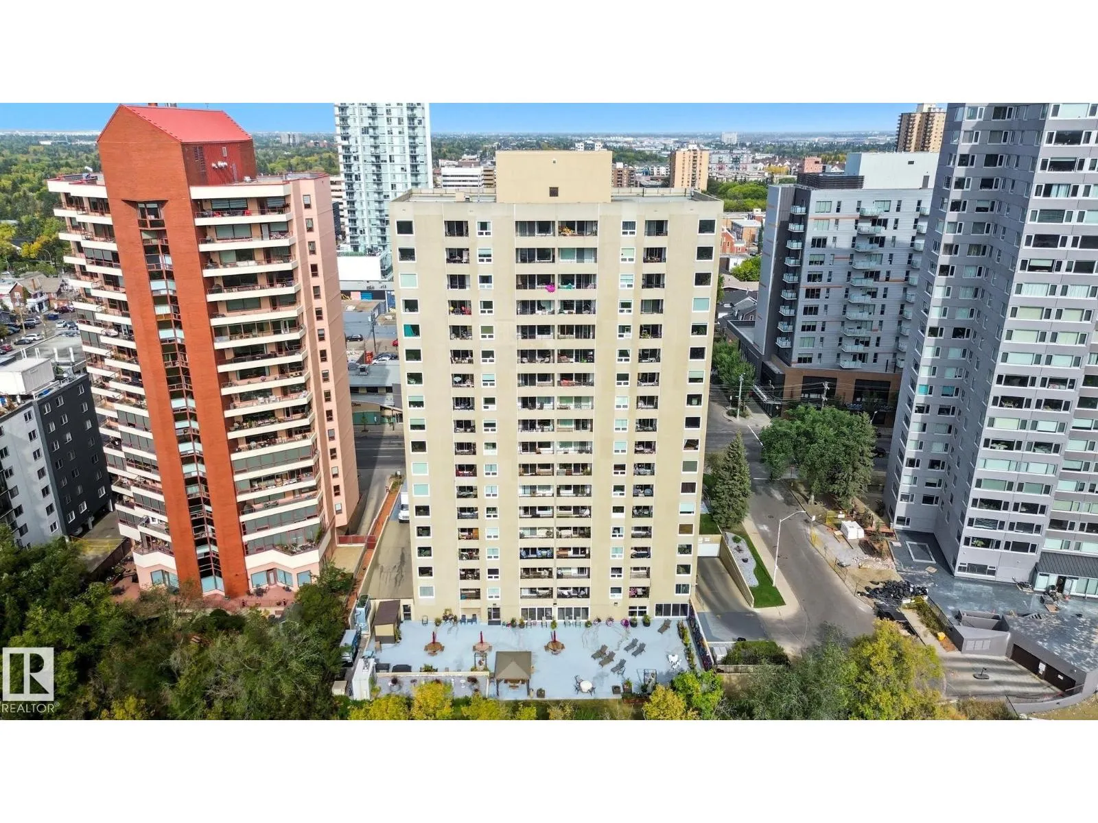 Located on the 16th floor, this immaculate corner unit offers breathtaking, panoramic views of the river valleyâtruly one of the best in the city! Flooded with natural light, this 2-bedroom, 2-bath home features a sleek galley kitchen with granite countertops and an open layout ideal for both entertaining and unwinding. Enjoy your morning coffee on your private balcony, as the sun rises over the skyline, or set up your home office with an inspiring view youâll never get tired of. Located in the highly desirable High Street District, youâre steps away from Edmontonâs top restaurants, local boutiques, and vibrant community life. The building offers premium amenitiesâsauna, fitness centre, car wash, workshop, and a resident patioâall designed for your comfort and convenience. Condo fees include heat, power, and air conditioning, giving you effortless living in the heart of the city. (id:27476)