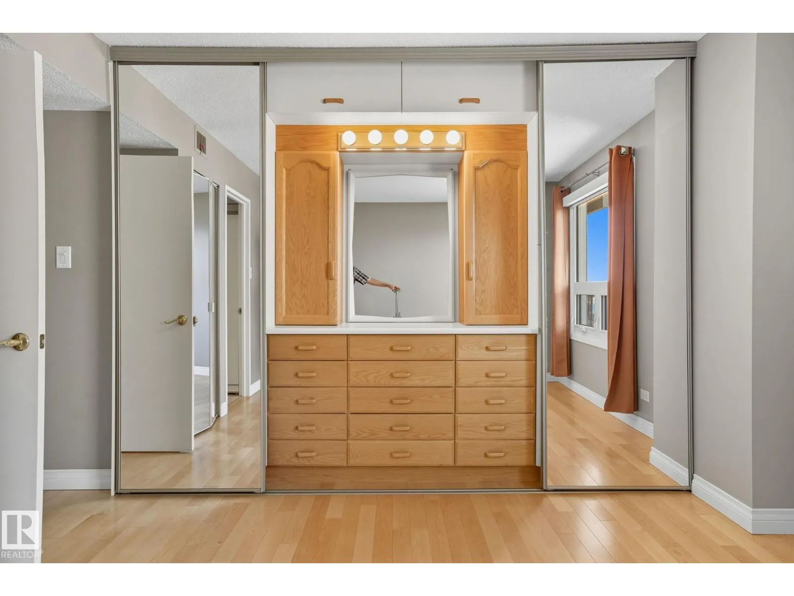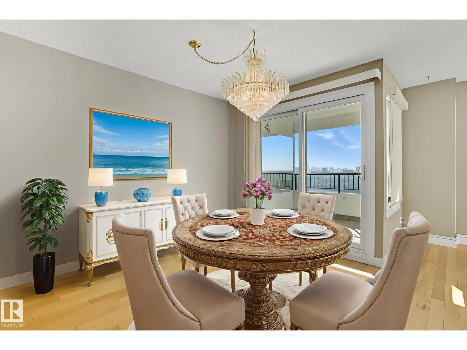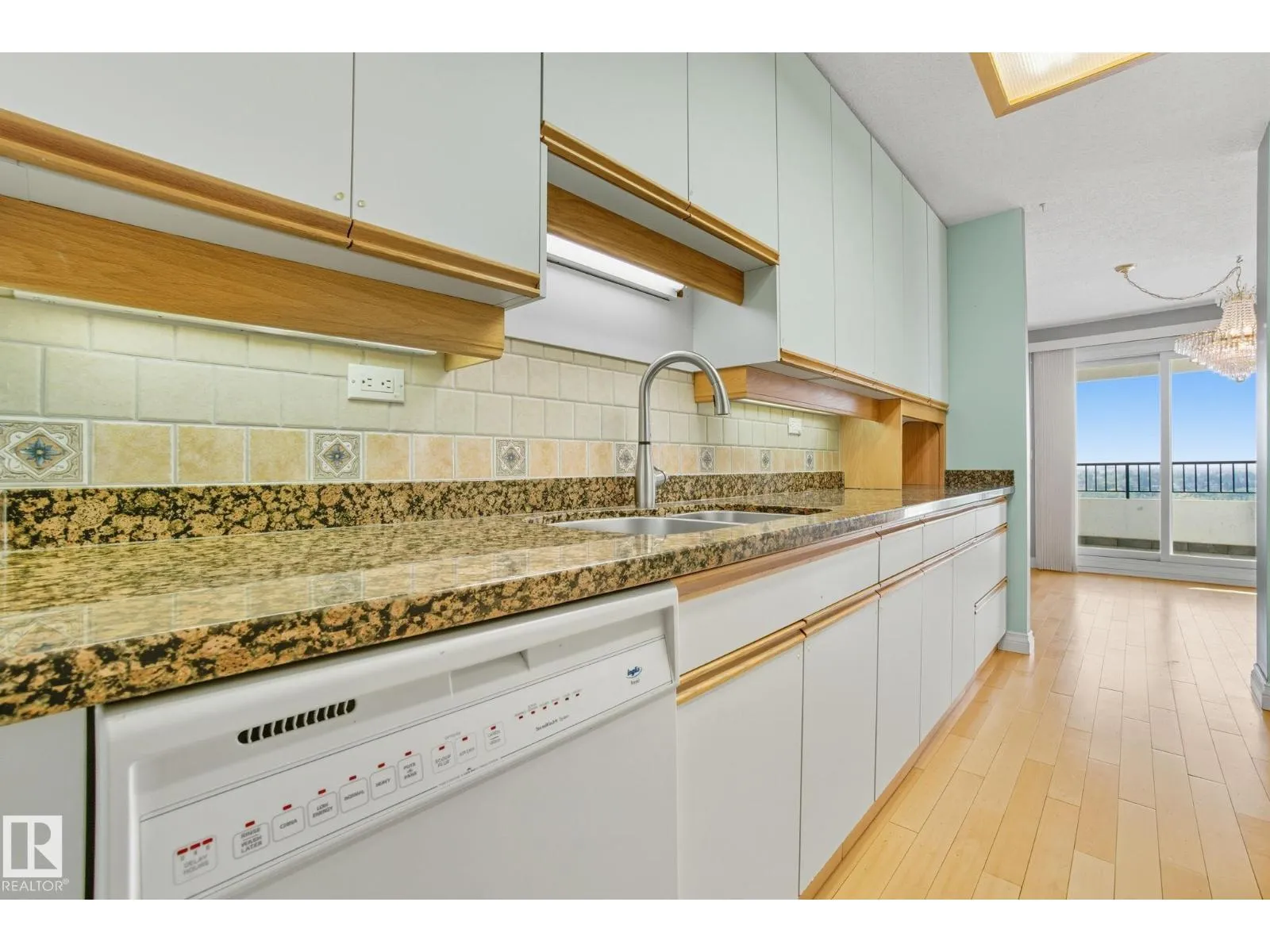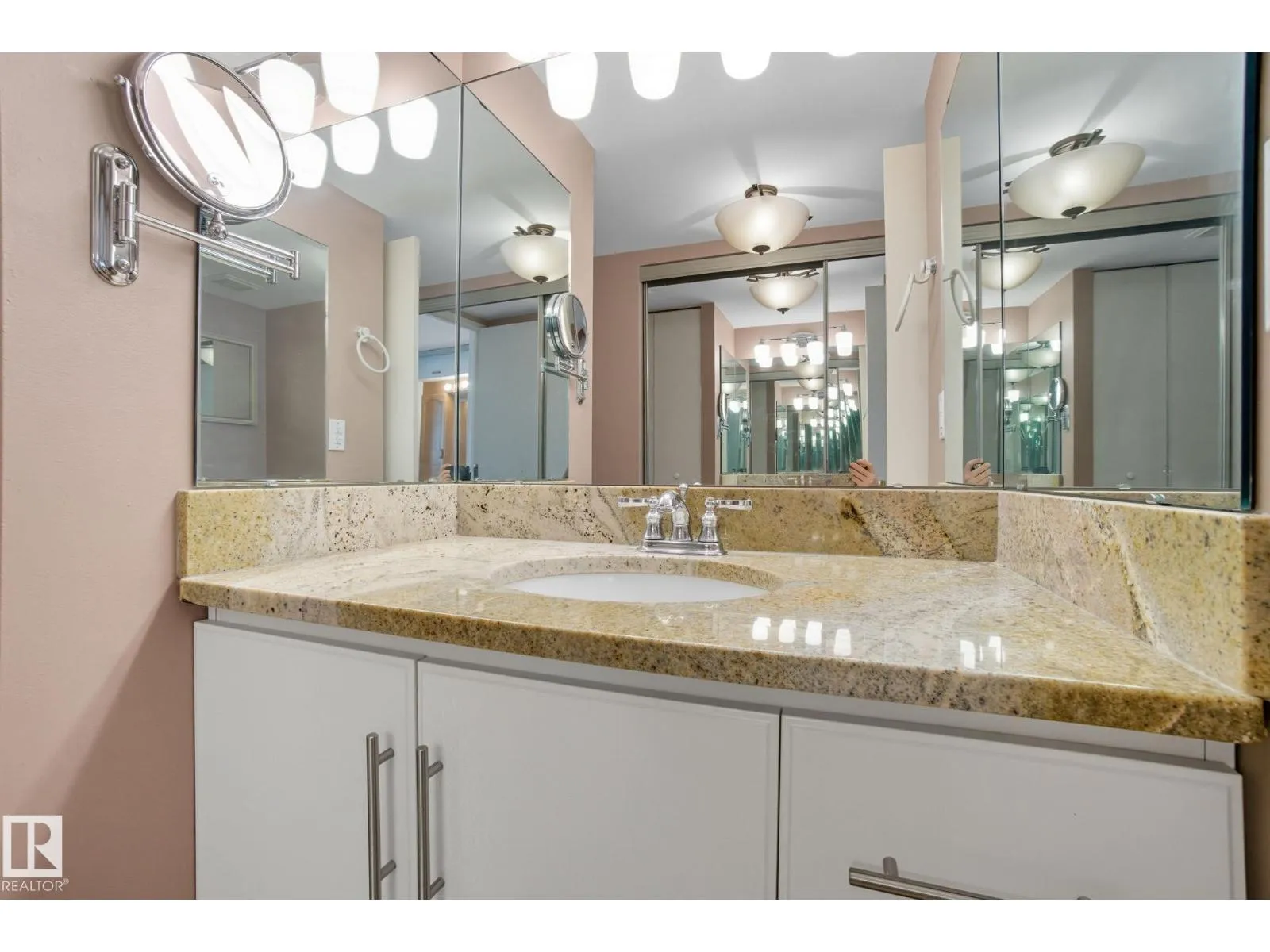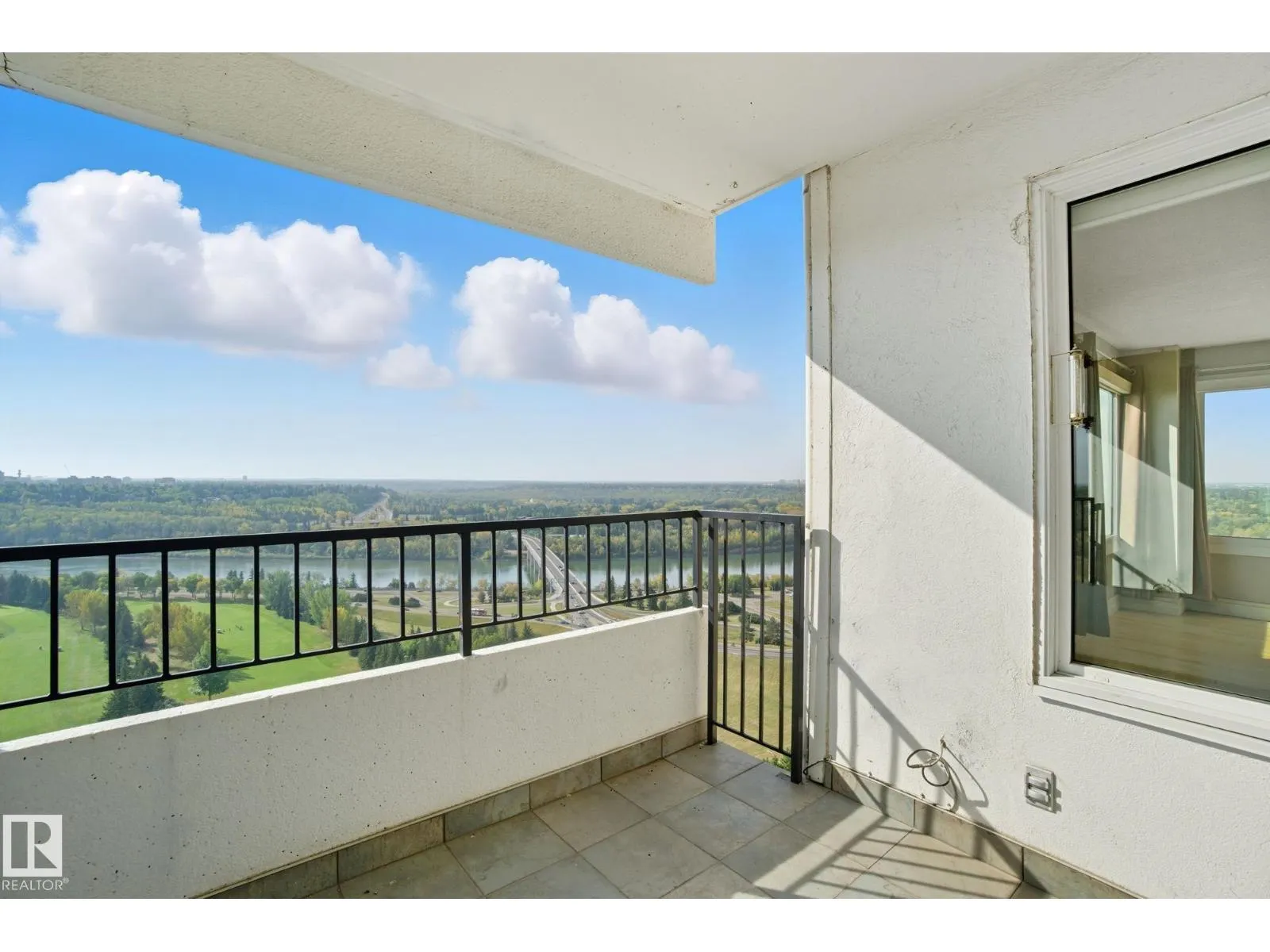 Located on the 16th floor, this immaculate corner unit offers breathtaking, panoramic views of the river valleyâtruly one of the best in the city! Flooded with natural light, this 2-bedroom, 2-bath home features a sleek galley kitchen with granite countertops and an open layout ideal for both entertaining and unwinding. Enjoy your morning coffee on your private balcony, as the sun rises over the skyline, or set up your home office with an inspiring view youâll never get tired of. Located in the highly desirable High Street District, youâre steps away from Edmontonâs top restaurants, local boutiques, and vibrant community life. The building offers premium amenitiesâsauna, fitness centre, car wash, workshop, and a resident patioâall designed for your comfort and convenience. Condo fees include heat, power, and air conditioning, giving you effortless living in the heart of the city. (id:27476)
