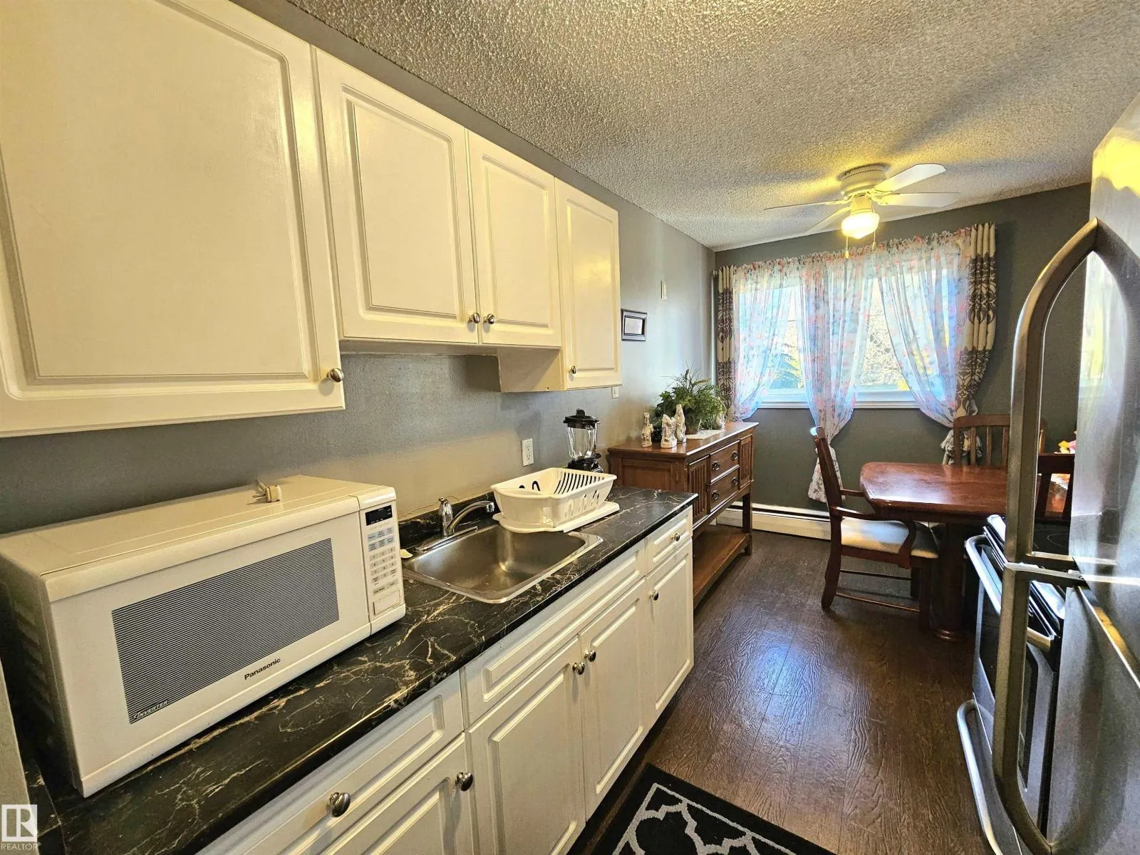 Fantastic value in this well-kept 1-bedroom end unit condo with private balcony! Bright and inviting, this home is perfect for first-time buyers or investors. Excellent central location with a bus stop right in front of the building and quick access to the University of Alberta, West Edmonton Mall, Grant MacEwan University, and the River Valley. Enjoy shopping, parks, schools, banks, and restaurants all within walking distance, plus the Misericordia Hospital and Meadowlark Mall just minutes away. Easy access to major commuting routes makes getting around the city a breeze. The building offers convenient laundry facilities on the top floor and visitor parking at the rear. Affordable, well-maintained, and ideally locatedâthis condo is a smart choice for anyone looking to stop renting or add to their investment portfolio! (id:27476)