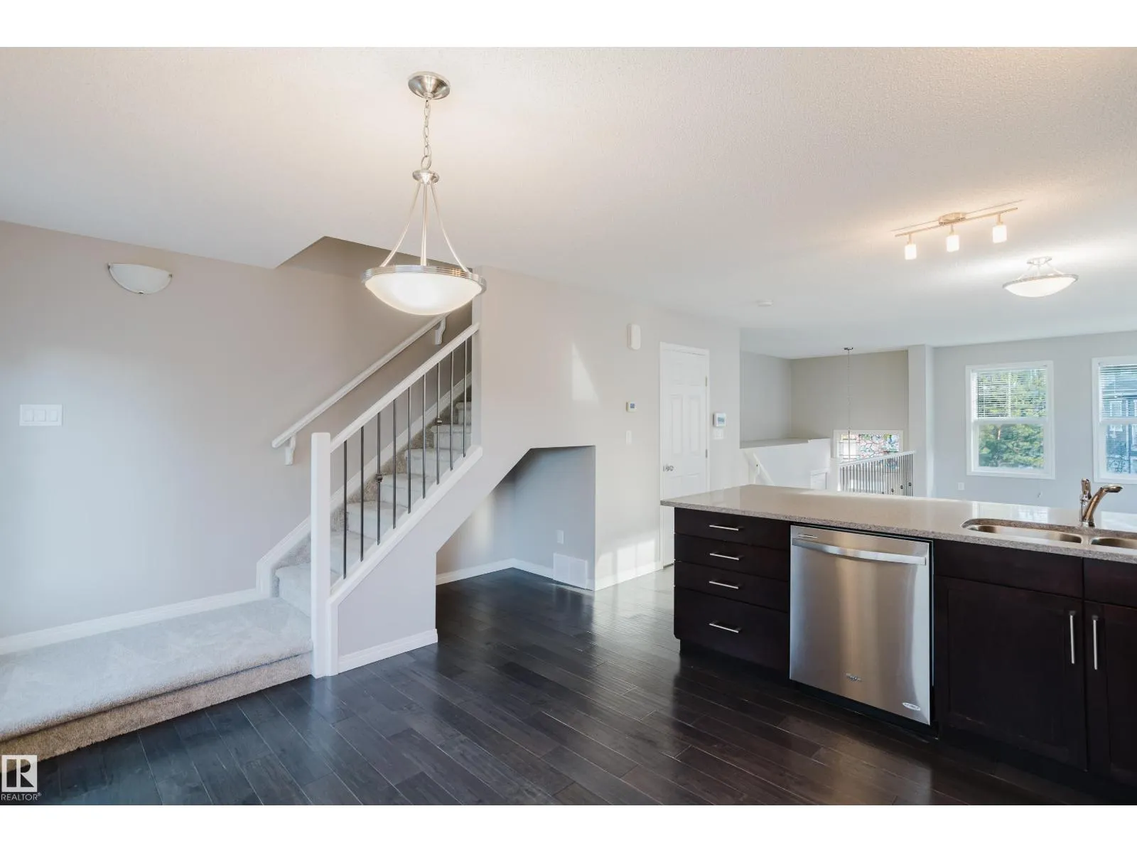 Welcome to this beautifully maintained end unit 2-storey townhouse located in the desirable community of Edgemont, Edmonton. Built in 2016, this modern home offers 1,238 sq. ft. of comfortable living space with a bright, open-concept design. The main floor features a welcoming living room, a stylish kitchen with plenty of counter space, and a cozy dining areaâperfect for family gatherings and entertainingas well as a half bath for convenience. Upstairs, youâll find three spacious bedrooms, including a primary suite with a walk-in closet, plus a full bathroom. The basement offers a huge laundry room and storage area. Enjoy the convenience of a double attached garage and low-maintenance living in this quiet, family-friendly complex. Located close to schools, shopping, parks, and walking trails, this home combines comfort, function, and location in one exceptional package. (id:27476)