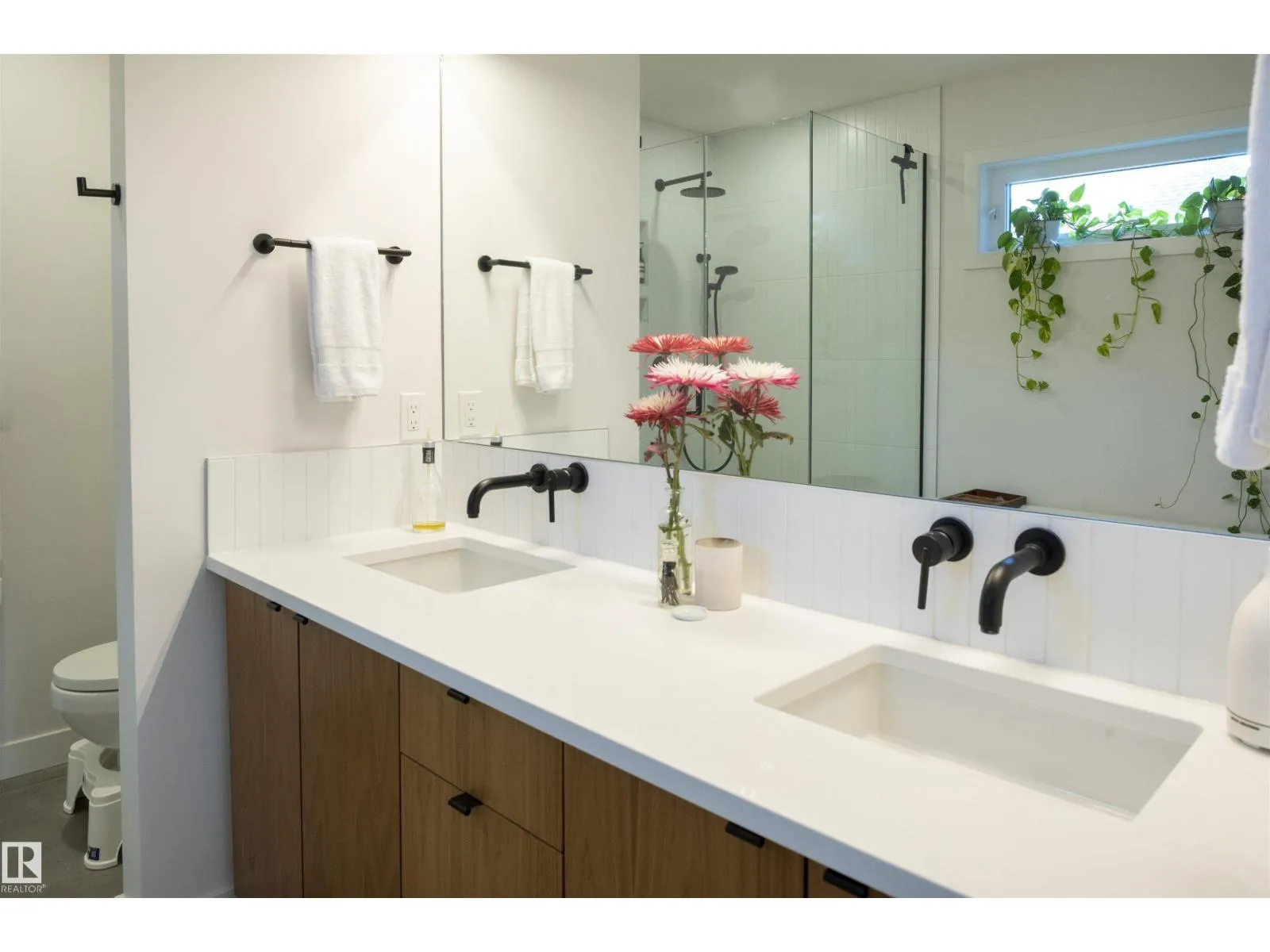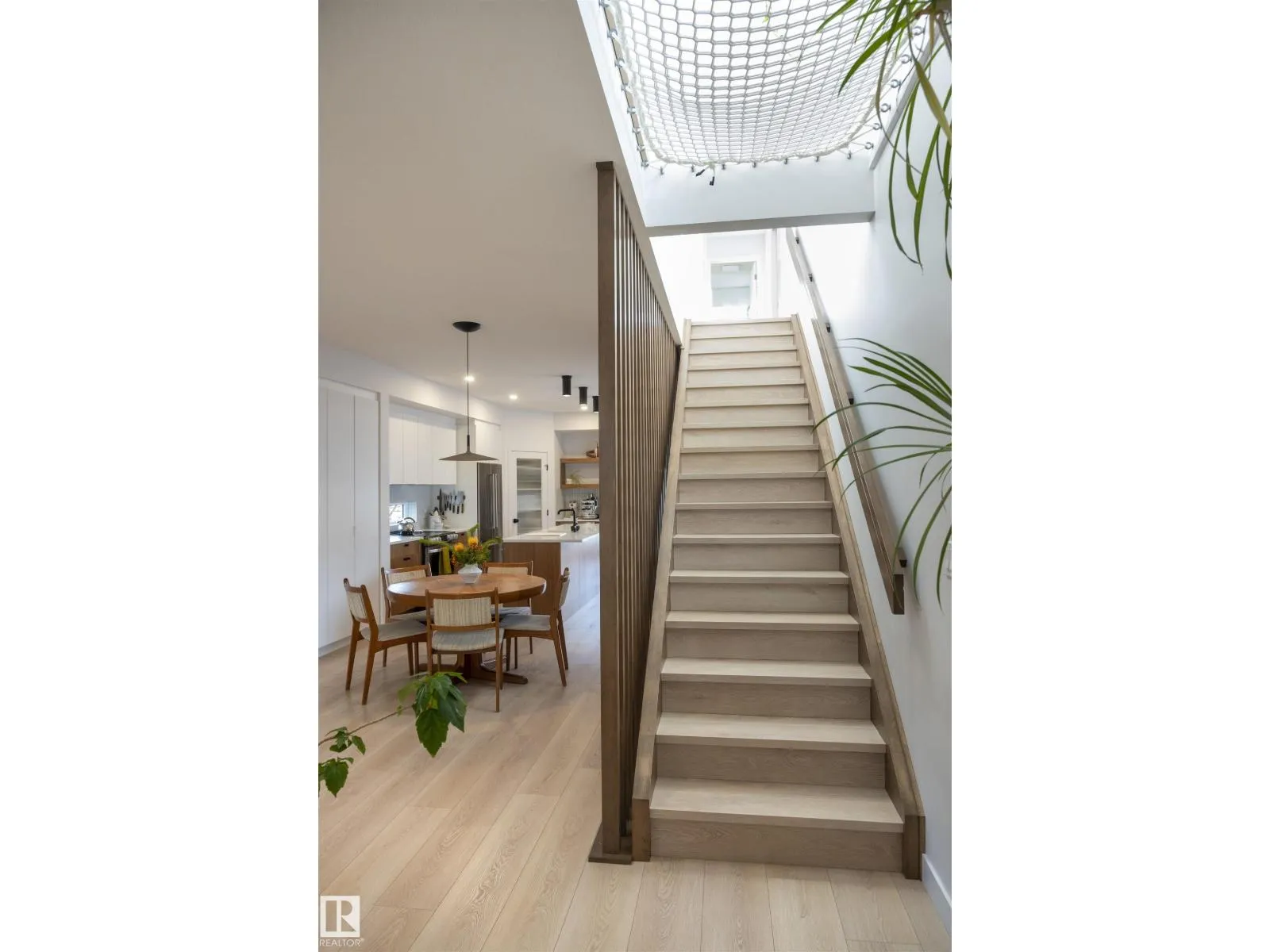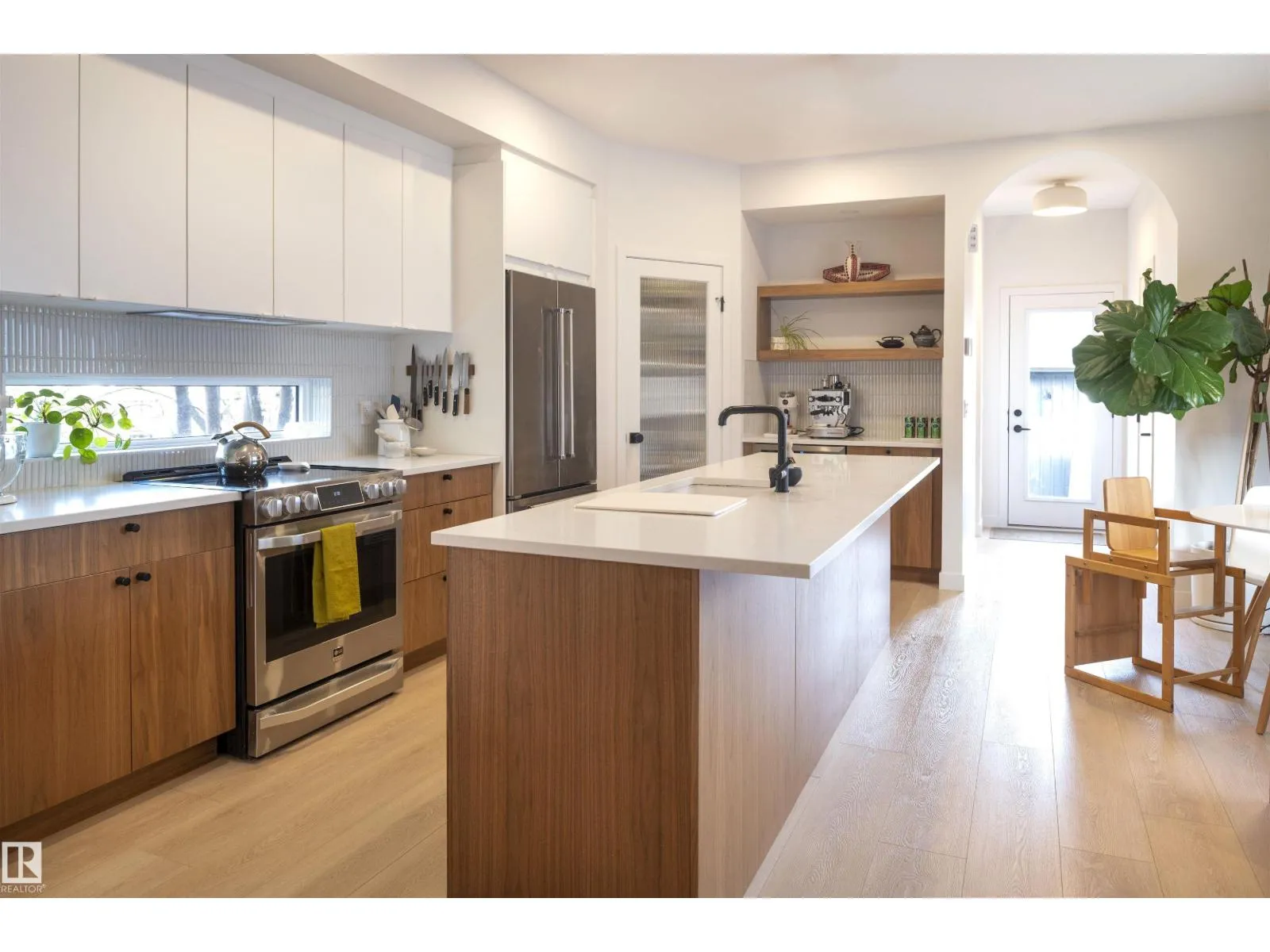 MODERN SCANDINAVIAN SANCTUARY steps from Ada Blvd in Highlands, Edmonton's most coveted riverside community! This custom-built Vida Nova Homes MASTERPIECE offers 4 bedrooms, 3.5 bathrooms & 1800+ sq ft of light-filled luxury. Walk to river valley trails, Highlands Golf Course, cafés, schools, and only 9 minutes downtown! Stunning open-concept design features white oak LPV flooring, floor-to-ceiling ladder bookcase, designer wood divider & extended walk-through pantry. Chef's kitchen has premium S/S appliances, wine fridge, QUARTZ countertops & seamless storage. Upstairs, there are 3 bedrooms including spa-like primary with a MASSIVE WIC & 5pc ensuite, PLAYFUL LOFT NET, UPSTAIRS LAUNDRY & 4pc bath. Basement: high-end epoxy flooring, 4th bed/office & abundant storage. Double detached garage with INNER BAY DOOR. Move-in ready with premium finishes, natural light & timeless Scandi elegance. Investment-grade infill in Edmonton's fastest-growing luxury market! TOO MANY UPGRADES TO LIST! COME SEE FOR YOURSELF! (id:27476)
