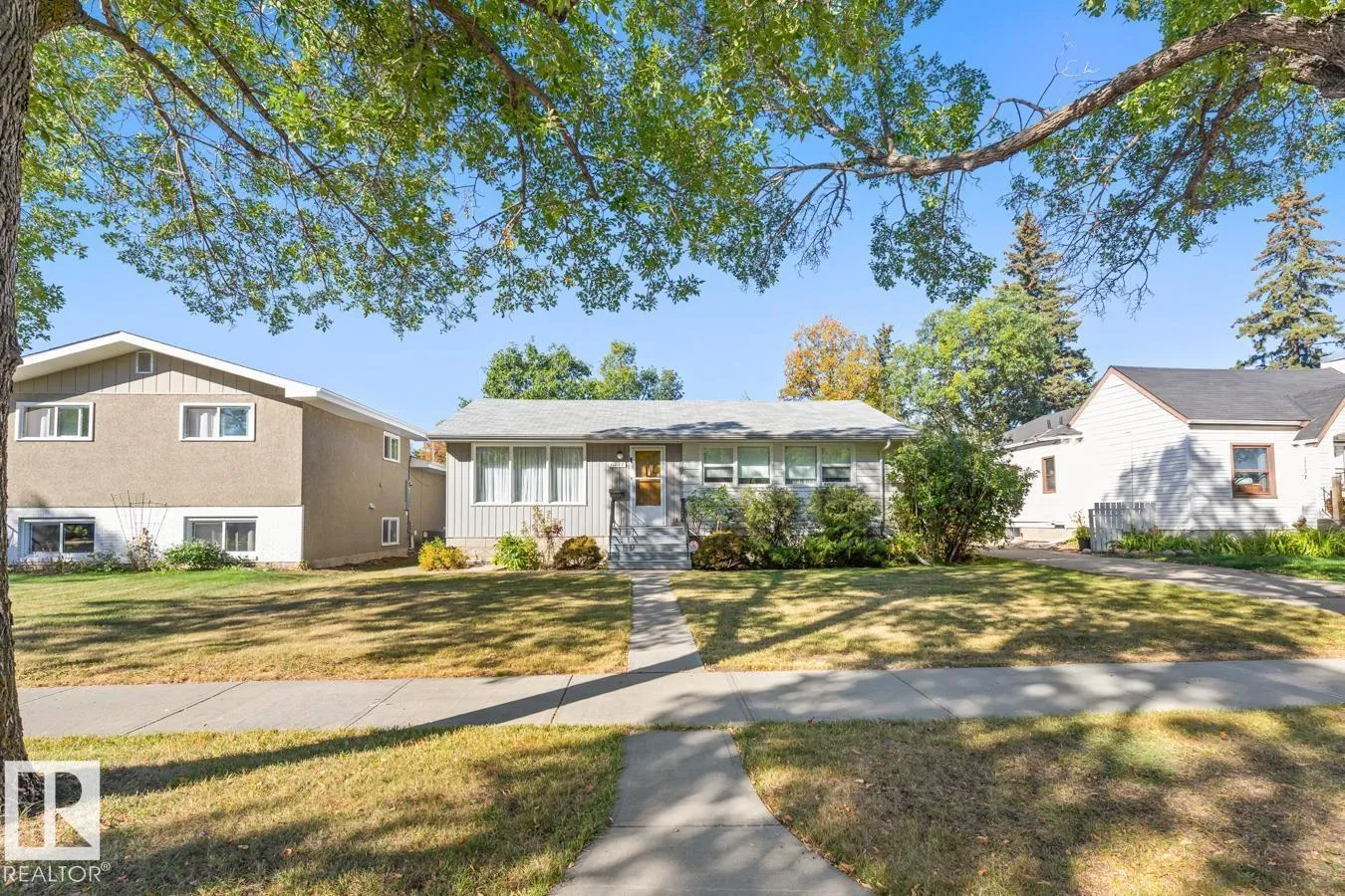 Charming nostalgia roomy Bungalow in Beautiful Westmount. Check out this 1554 sq ft home features living room with laminate flooring and large windows and a pass through to the kitchen. Eat in kitchen with lots of wood cabinets and plenty of counter space. Enjoy this entertaining family room off the kitchen with a open wood burning fireplace and floor to ceiling windows overlooking the west facing back yard. Three bedrooms on the main floor with a full bathroom & a mud room and 2 pce bathroom off the back door. Fully finished basement featuring a recreation room with a bar area, 2 bedrooms, & 3 pce bathroom, combined sewing and laundry room, two storage areas. Fully fenced back yard with rv parking and a double garage. Walkable to Westmount shopping center, schools, public transportation, swimming pool, Imax theatre, Coronation Park and 124 st shops, markets & restaurants. Ten minutes to downtown & ice district. (id:27476)