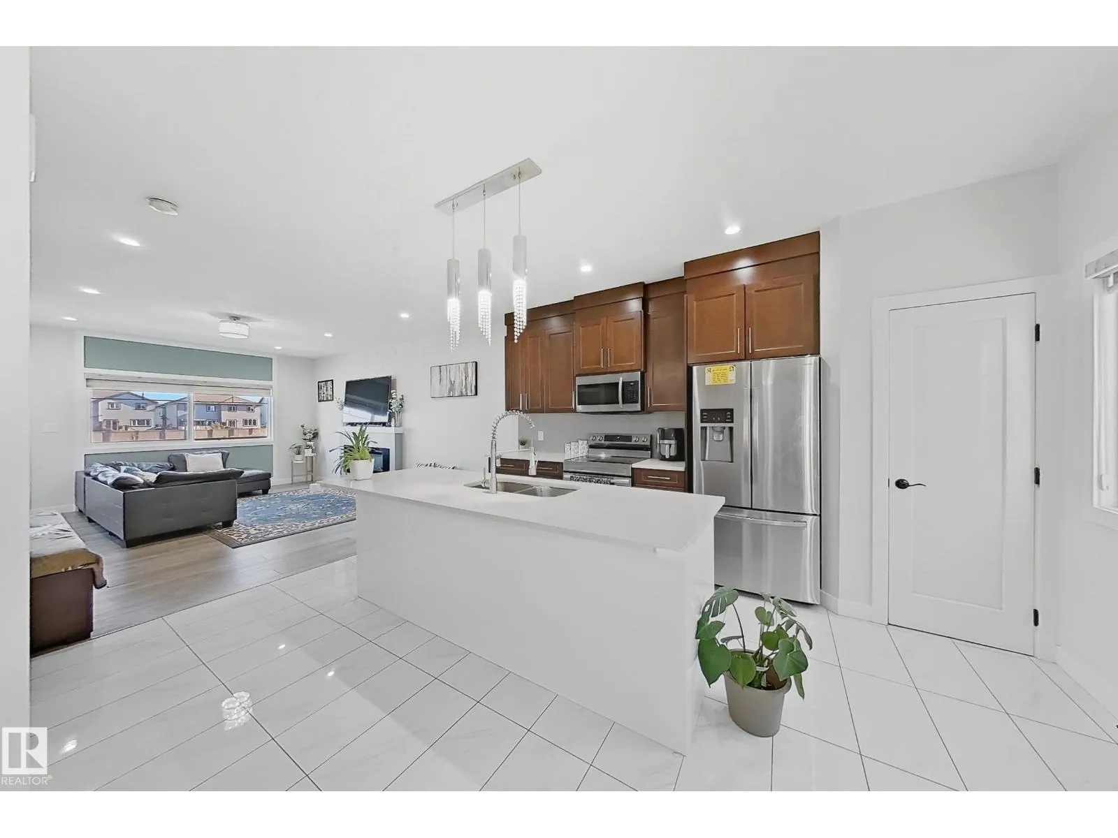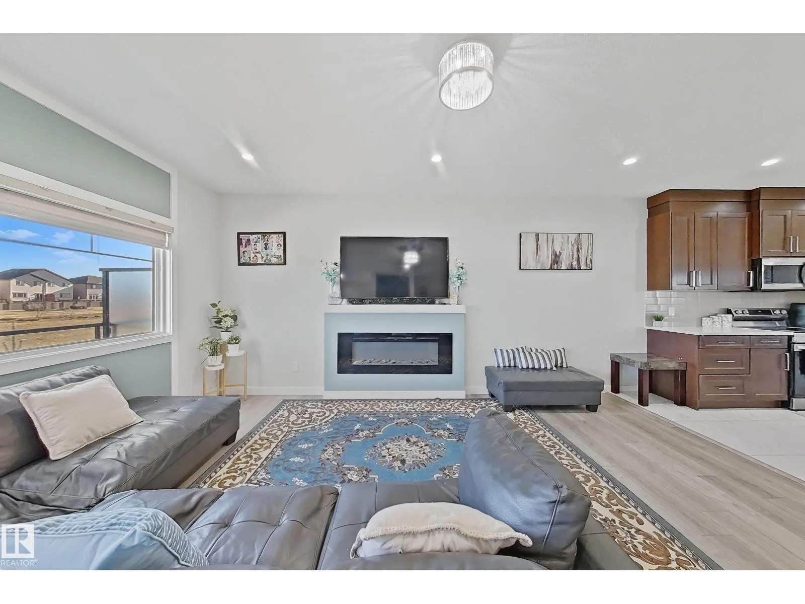 Location! Location! Welcome to this beautiful, modern, facing a peaceful GREEN SPACE and spacious move-in-ready townhouse in highly sought-after Laurel. This home offers 3 bedrooms, 2.5 baths, a finished basement with tile flooring, and a flex space perfect for an office or storage. Enjoy upgrades such as quartz countertops, a large kitchen island, pot lights, electric fireplace, vinyl & tile flooring, 9 ft ceilings, and a double attached garage. The open-concept layout provides comfort and style, while upstairs youâll find convenient laundry near all bedrooms. The basement adds extra space and ample storage. Located in a fully developed community with nearby amenities including parks, playgrounds, schools, Rec Centre, walking trails, transit, and easy access to Anthony Henday. Bus stop is just steps from your door. Move-in ready and perfect for families or professionalsâdonât miss out on this stunning home! (id:27476)