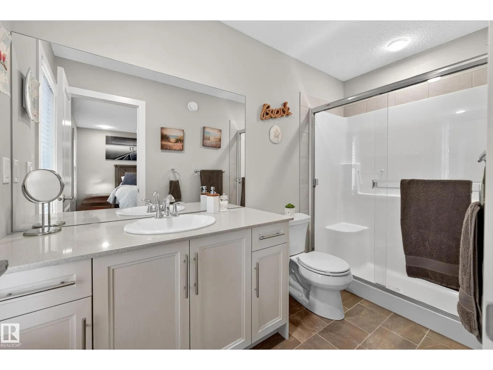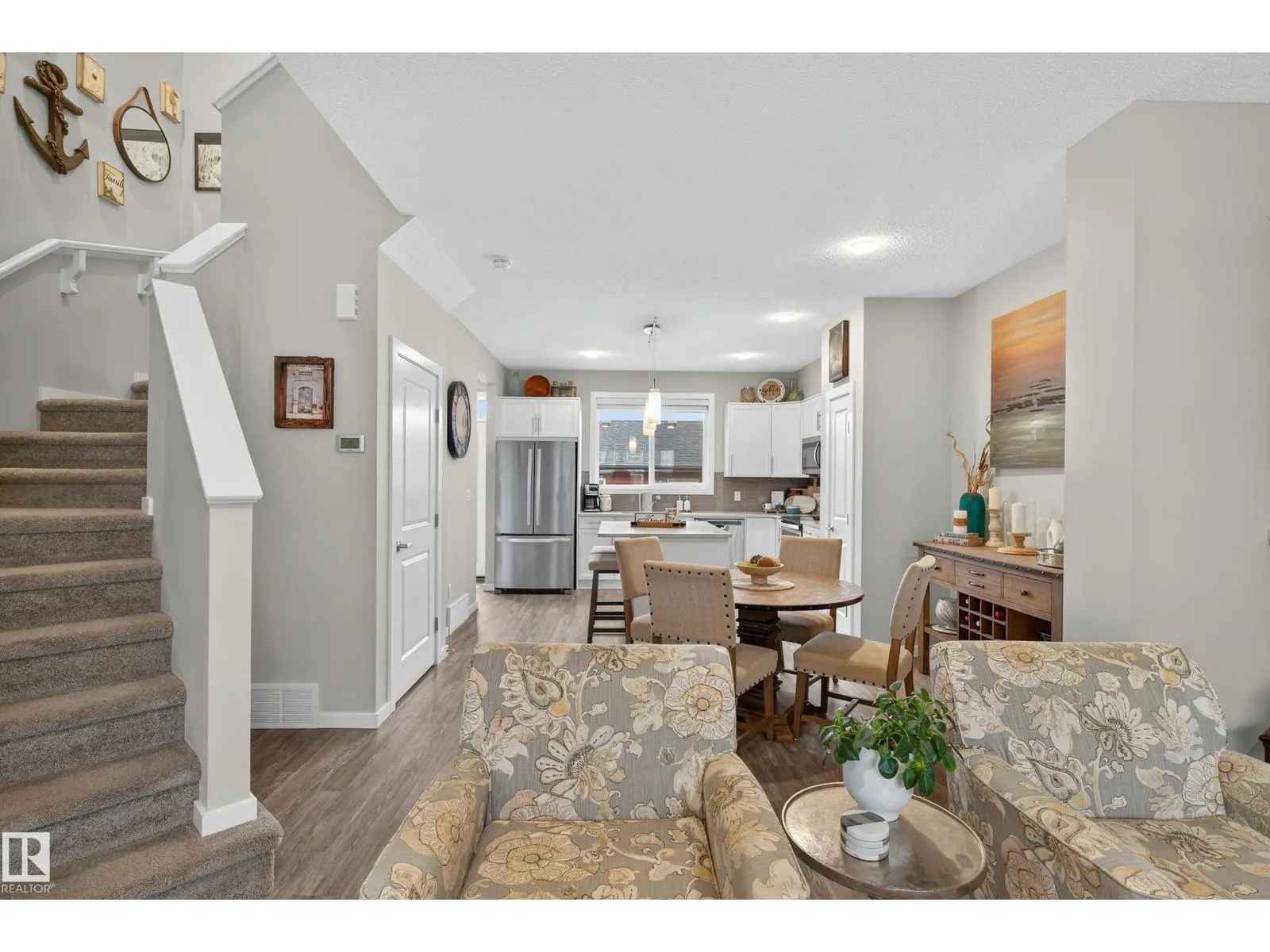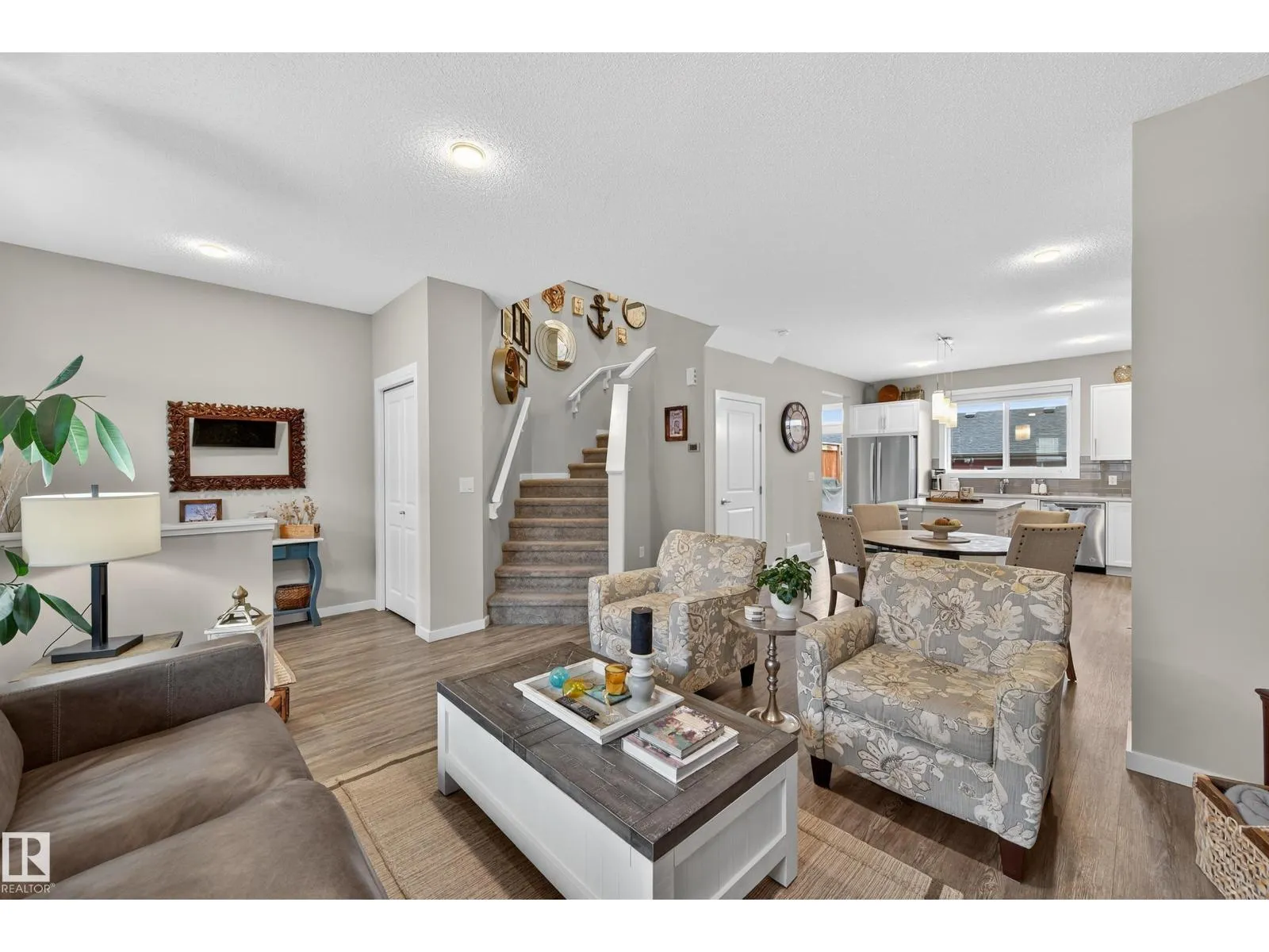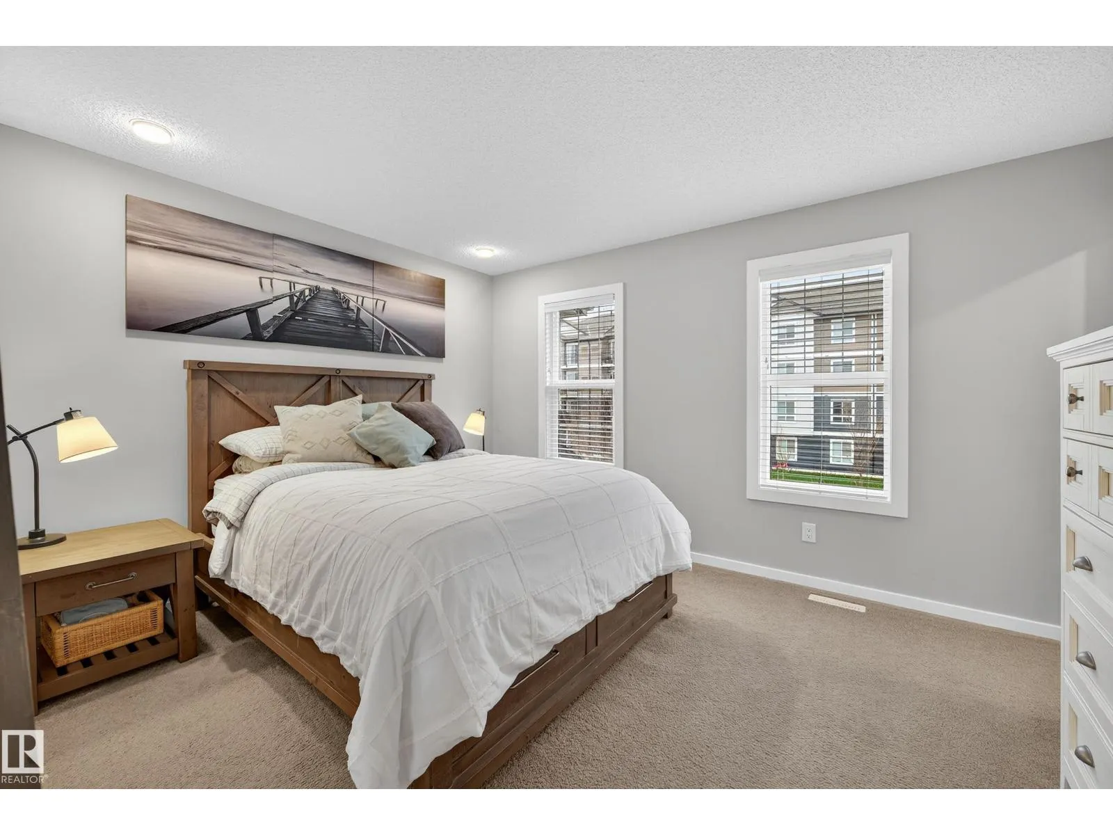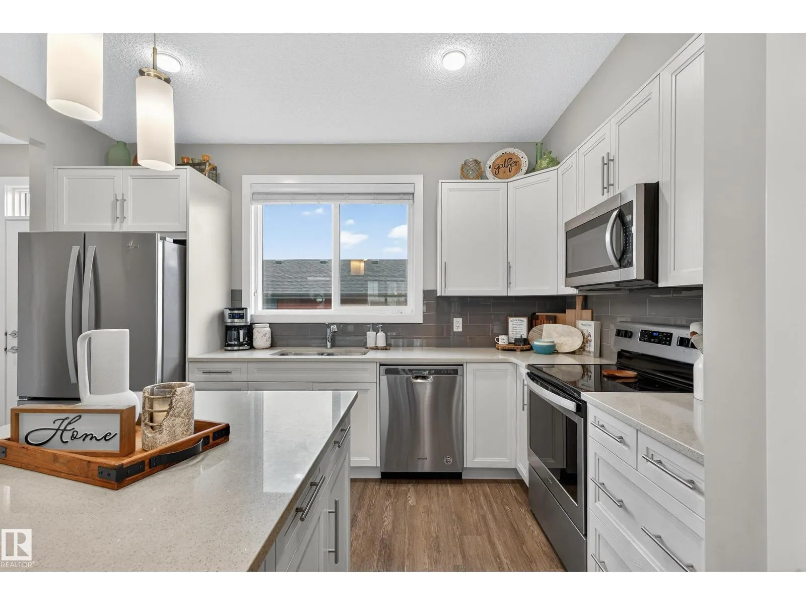 SPACIOUS HOME, NO CONDO FEES & MOVE-IN READY! Welcome to Rosenthal! A vibrant community filled with colourful homes, play zones, spray-park, mini BMX track, multi-use trails, schools, shopping, quick access to West Edmonton Mall & Anthony Henday for your commuting requirements. Charming curb appeal, built by Homes By Avi, features quaint front porch & great deck out back w/privacy fence, BBQ gas line & low-maintenance landscaping in fully fenced yard. Welcoming foyer transitions to bright & open space GREAT ROOM anchored with electric F/P, vinyl plank flooring, upgraded lighting & neutral pallet aimed to please. Dreamy kitchen showcases centre island, granite countertops, pantry, tile backsplash, abundance of soft-close cabinetry, upscale SS appliances, oversized window over sink for amazing back yard views & 2pc powder room off back mud room. Upper-level boasts 2 spacious jr. rooms, laundry closet, 4pc bath & cozy owner's retreat complete w/private 3pc ensuite & WIC. Superior quality home! MUST SEE! (id:27476)