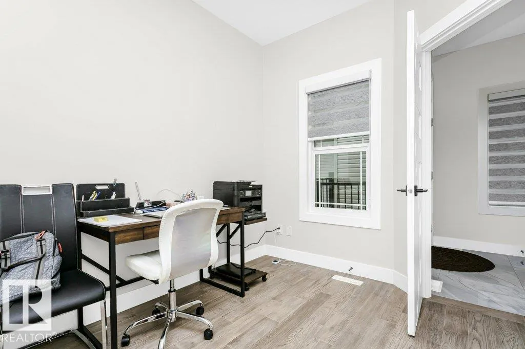 PRICE REDUCED... PRIME LOCATION!!!! Welcome home to the sought after community of Trumpeter! Look no further! This exceptional 4-bedroom property plus office built in 2022, features over 2300 sq ft , with walkout unfinished basement waiting for you to design it the way you like , backing onto pond and green space. with the desirable open-to-below design and large windows create a bright and modern feel like home. fully fenced, landscaped yard making for an Excellent Extension of Living space! Additional highlights includes 1 Electric Fireplaces, main floor Office, W/I Closet , full laundry room at the upper level, close to West Edmonton Mall and easy access to Yellowhead trail, Anthony Henday Drive and Whitemud Rd (id:27476)