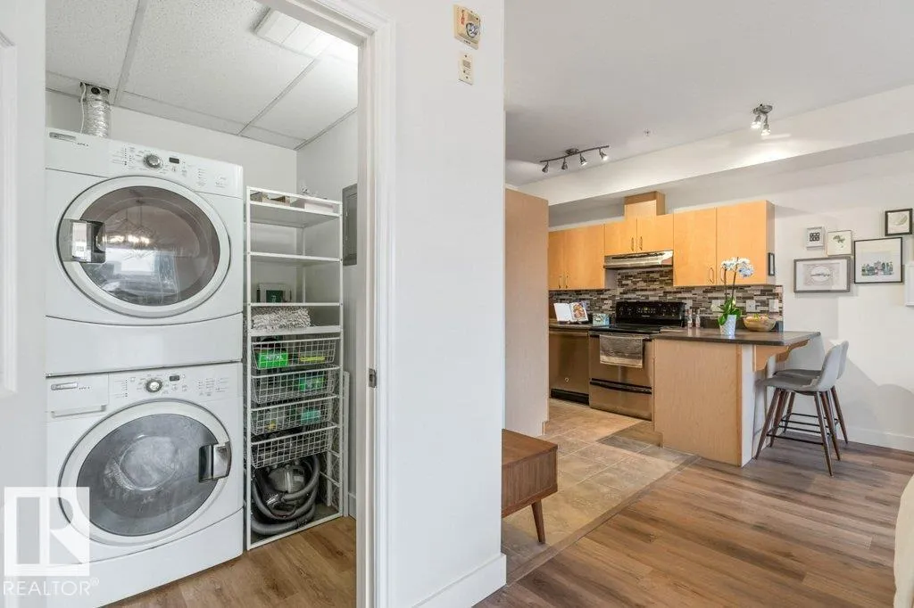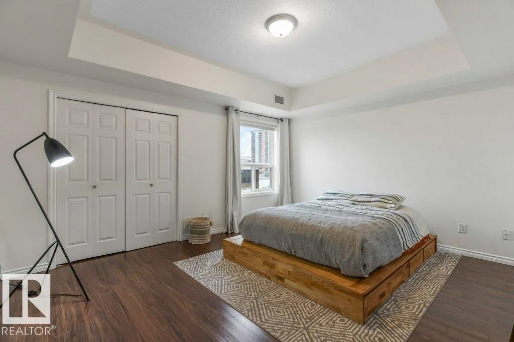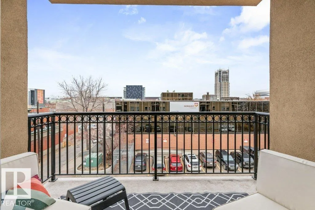 Discover this stylish two-bedroom condo in the heart of downtown Edmontonâjust blocks from Rogers Place! Featuring elegant laminate flooring, a cozy corner fireplace, and a spacious balcony, this home offers comfort and modern style. The functional kitchen provides ample cabinetry and an inviting eating bar, while the large primary bedroom and versatile second bedroom are perfect for guests, a home office, or students. Enjoy in-suite laundry and titled underground parking. With Airbnbs permitted, itâs also a smart investment for short-term rentals during local events or long-term tenants attending nearby Grant MacEwan University. Close to the Ice and Brewery Districts, shopping, dining, and the LRTâthis condo defines downtown living at its best. (id:27476)