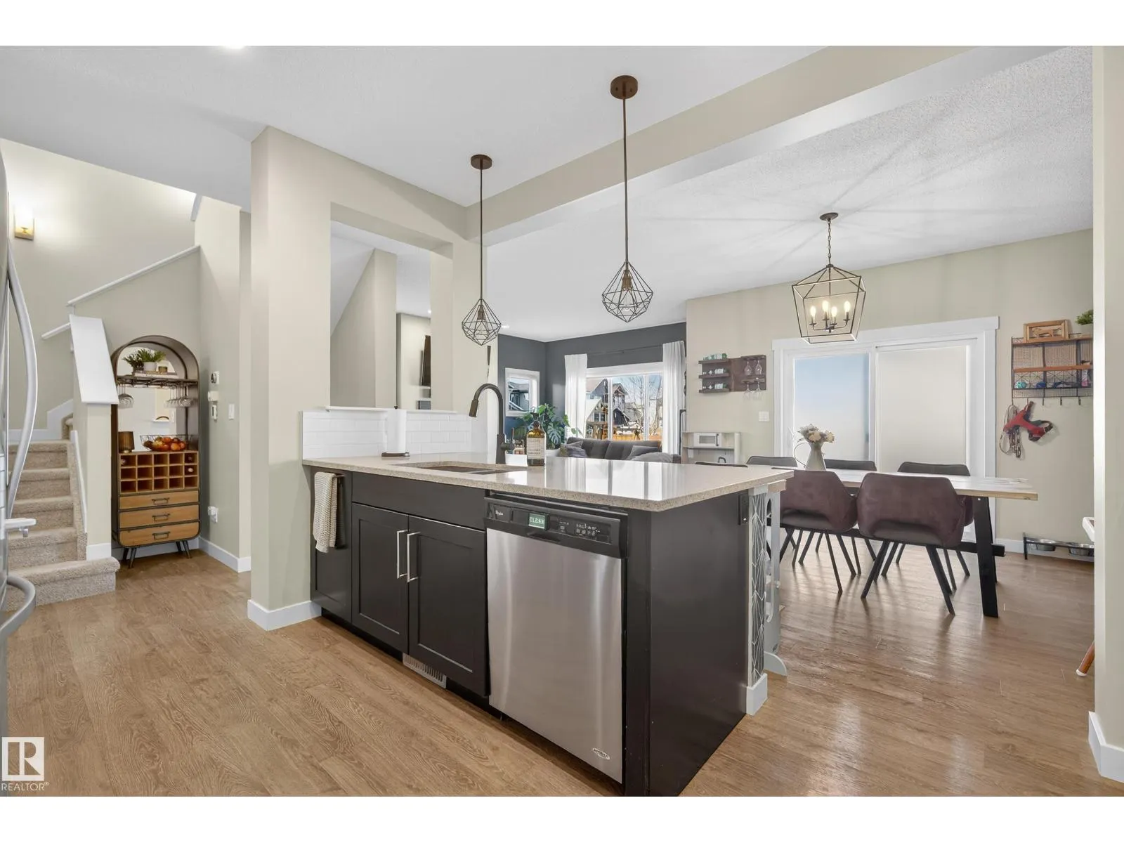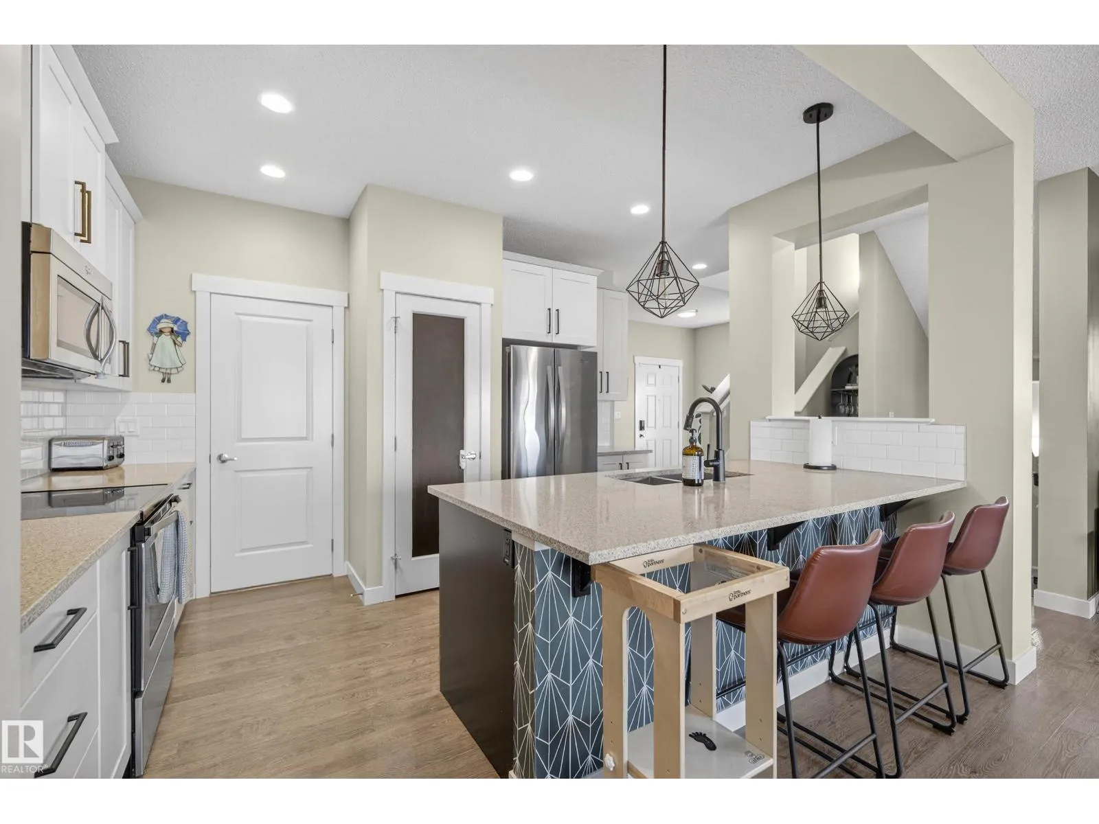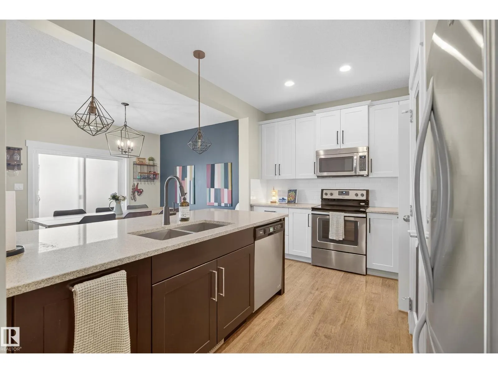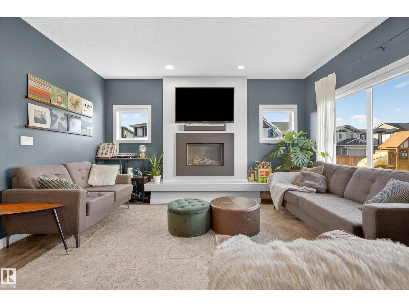 This fully finished two-storey home offers nearly 3000sq ft of trendy living space in a prime location, steps from the pond, scenic trails, picnic areas, and a small park. The main floor features an open-concept design with a spacious kitchen, living room, and dining area. The kitchen boasts abundant cabinetry, quartz countertops, and stainless steel appliances, with a convenient walk-through mudroom connecting directly to the 23x21 oversized, double attached, insulated garage. The living room includes a gas fireplace, while the dining area opens onto a deck overlooking the large, fully fenced yard and tranquil pond views. Upstairs, the colossal primary suite is a true retreat, featuring double walk-in his-and-hers closets and a luxurious 4-piece ensuite. Two additional bedrooms, 4-piece bath, bonus room with large window, upper-level laundry room adds comfort and convenience for the whole family. Basement level is fully finished and has 4th bedroom with W/I closet, 4 pce bath and family/recreation room. (id:27476)