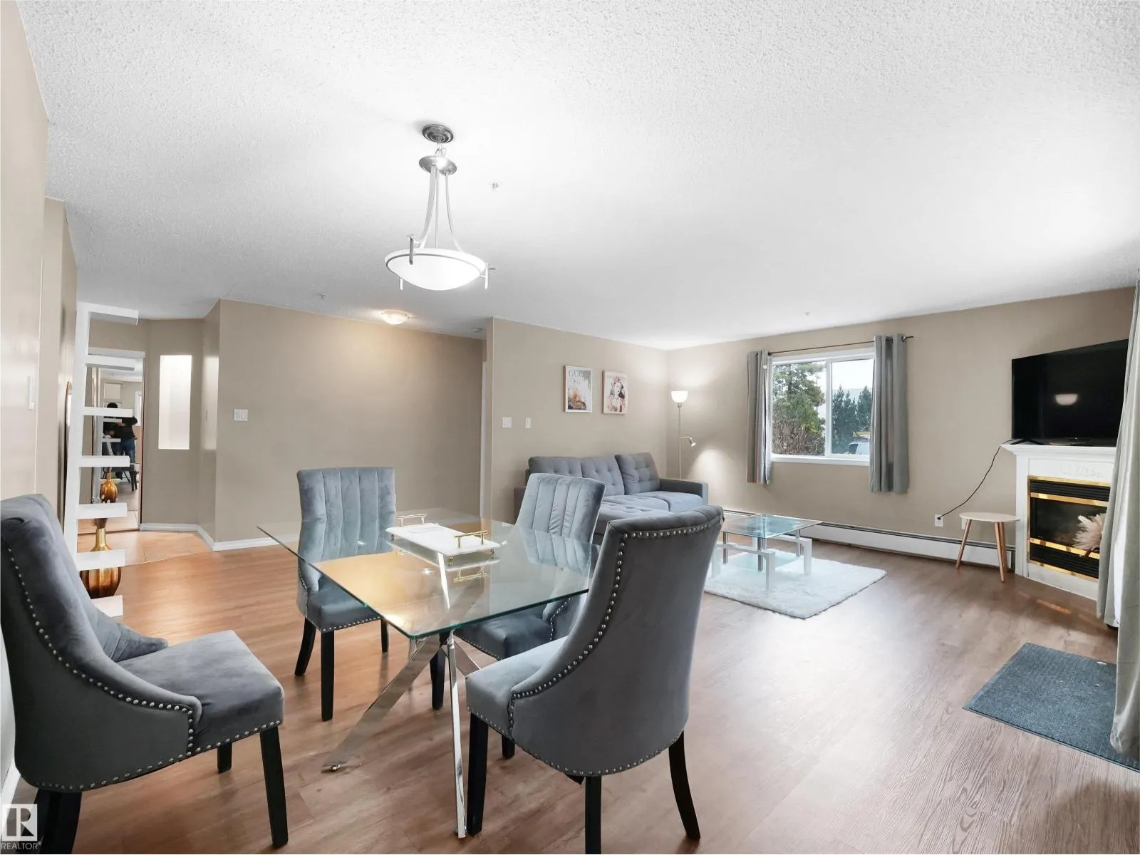 Welcome to this well-maintained 2-bed, 2-bath main floor condo offering 1125 sq ft of comfortable living in the desirable Rideau Park community. The bright living room features a cozy corner fireplace, a large window, and access to a private patio â perfect for relaxing or hosting. The kitchen is equipped with stainless-steel appliances including a double-door refrigerator, ample cabinetry, and its own window for added natural light, complemented by an adjacent dining area. The spacious primary bedroom includes a walk-in closet and 3-piece ensuite, while the second bedroom is conveniently located near the 4-piece bath. Enjoy the ease of in-suite laundry and the added benefit of secure underground parking (tandem) with storage. Building amenities include a fitness room and social room. Close to Southgate Mall, public transit (including LRT), schools, parks, restaurants, and quick access to Whitemud Drive â this location offers the perfect balance of comfort and convenience. (id:27476)