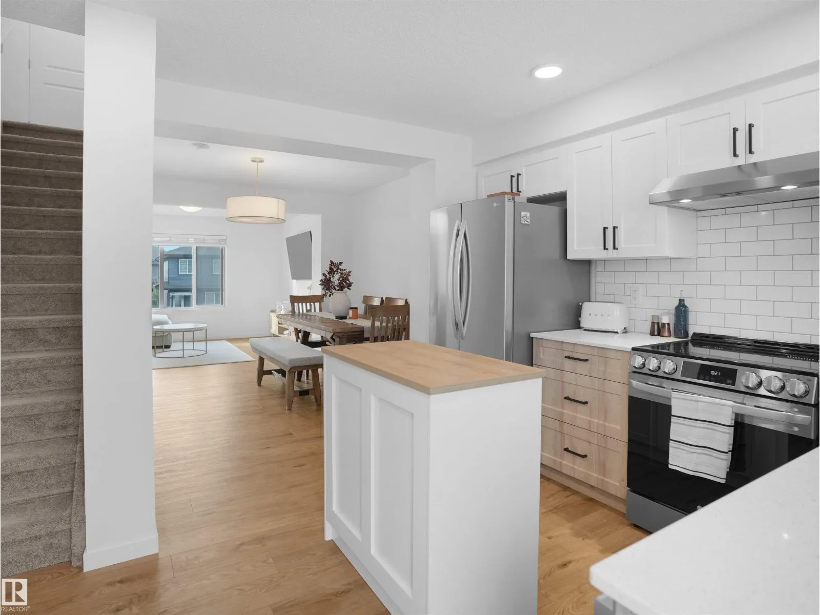 NO CONDO FEES! Welcome to this beautiful END UNIT townhome in the desirable community of Rosenthal. The open-concept main floor offers a brightliving and dining area, perfect for everyday living or entertaining, while the timeless two tone kitchen opens to a private balconyâgreat for morning coffee orevening relaxation. Upstairs, youâll find two spacious bedrooms, each with its own full bathroom, including a primary suite with ensuite. The entry level addsextra versatility with a bonus room complete with closet, ideal as a third bedroom, office, or flex space, plus a convenient half bath. Enjoy the oversizedsingle attached garage, a charming front yard for your garden or flower bed, and an excellent location close to Costco, shopping, schools, parks, and allamenities. This move-in ready Rosenthal gem is the perfect starter home or downsizing optionâdonât miss your chance to make it yours! (id:27476)