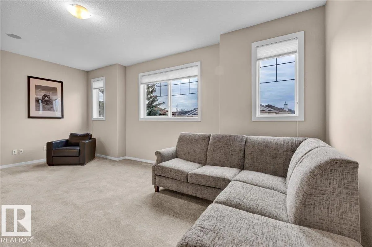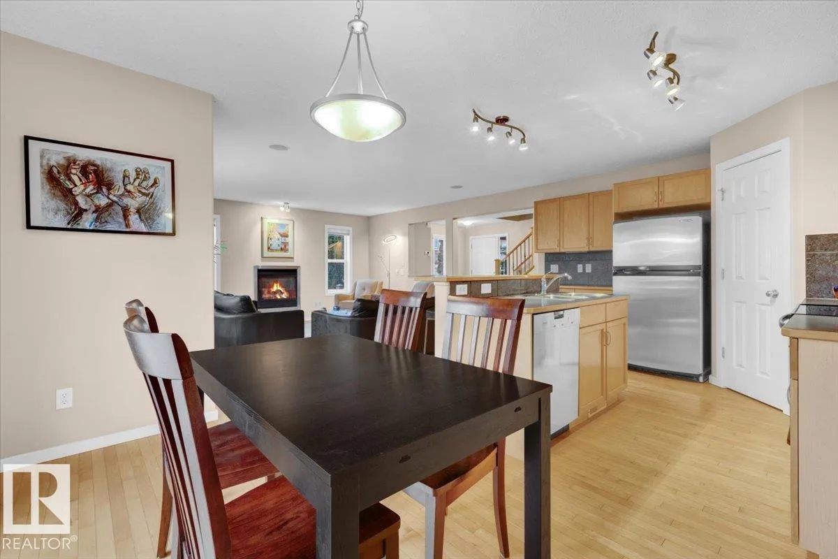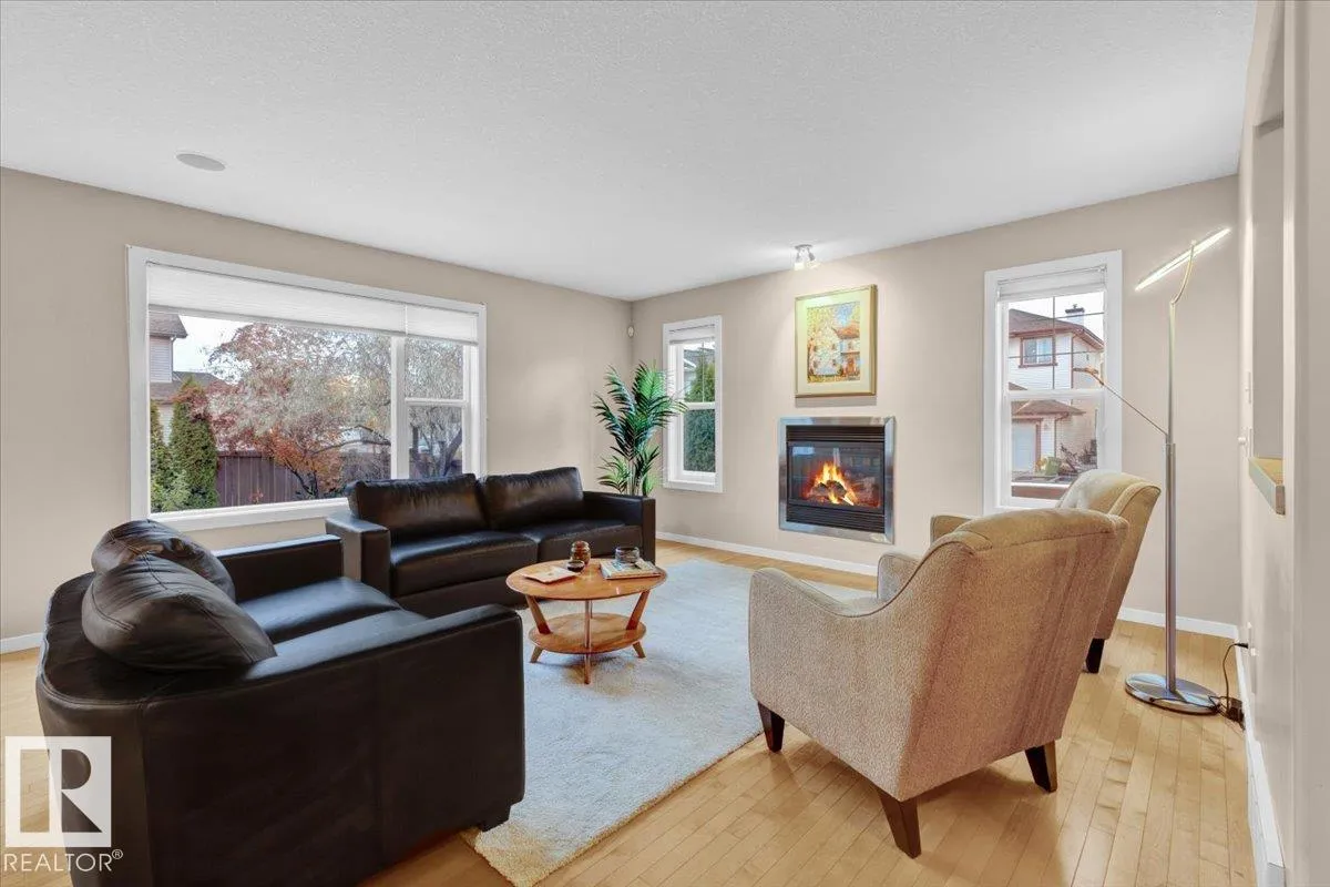 Immaculate, original owner 2 ST home in quiet Hodgson location with parks and ravine pathways. AVI Homes built, spacious great room plan with gas fireplace, maple hardwood on main floor and upgraded carpet on upper floor 2022. Kitchen island with bar counter, SS appliances, pantry and open dining area with garden doors to large private deck, BBQ gas connect. Main floor laundry and two piece bathroom. 3 bedrooms plus family room on upper floor, two full baths including primary bedroom ensuite with jetted tub and large shower, walk in closet. Attractive landscaped yard with paver walkway, garden beds. Basement ready for your future developments with 3 piece plumbing R/I. Many recent improvements including A/C, High Efficiency furnace and water heater, roof shingles in 2021. Builder upgrades include extra windows, Hunter Douglas blinds throughout, built-in ceiling speaker system, wider garage insulated + drywalled with gas line for a furnace. Why not start your holiday shopping with this beautiful home! (id:27476)