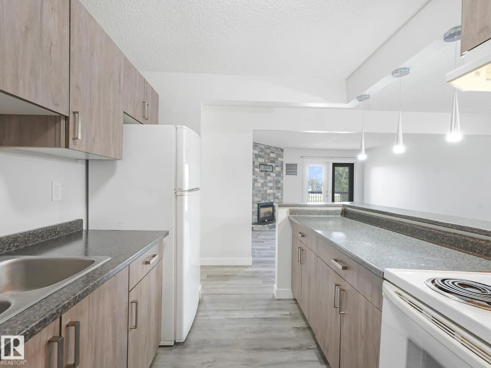 BEST PRICED CONDO IN SOUTHWEST EDMONTON! This spacious and fully renovated top-floor 2-bedroom condo offers 952 sq ft of stylish living in a highly desirable southside location. Priced to sell, this unit stands out as one of the best value opportunities in the area. The bright open-concept design features a modern kitchen with updated cabinetry, sleek countertops, and an eating bar that flows into the dining and living spaces. Upgrades include plank vinyl and ceramic tile flooring, a contemporary floor-to-ceiling stone-faced fireplace, and modern lighting throughout. The renovated 5-piece bath with dual sinks connects to a large primary bedroom with a walk-in closet. Enjoy the convenience of in-suite storage and a massive balcony perfect for outdoor relaxation. Located steps to the LRT, shopping, parks, and restaurants, with easy access to major roads. A must-see for first-time buyers and investors seeking affordability, style, and a PRIME SOUTHWEST EDMONTON location. (id:27476)