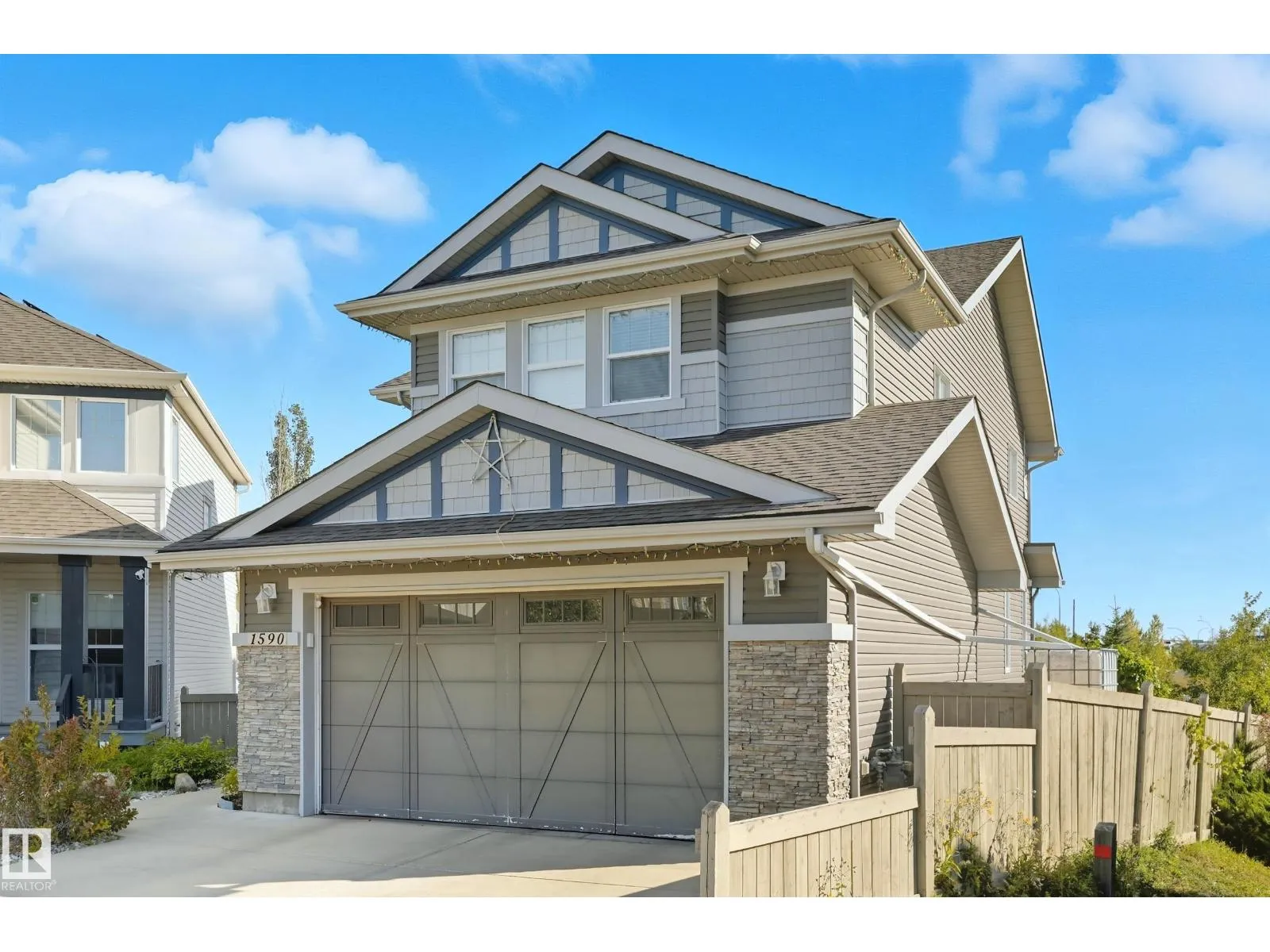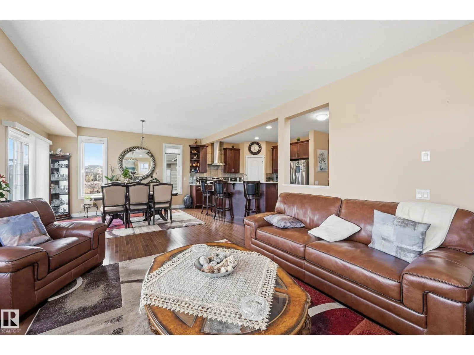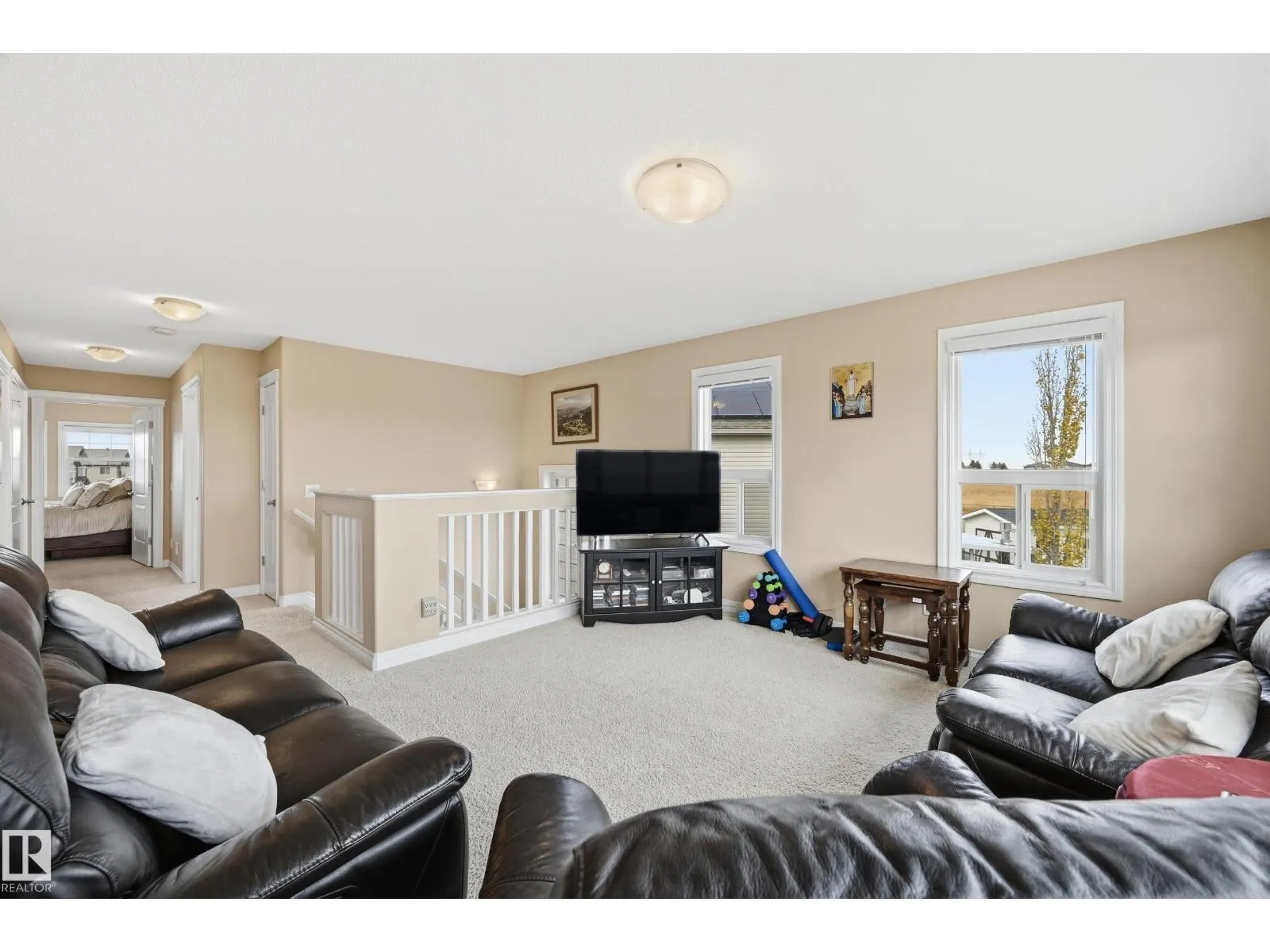 Welcome to this stunning custom-built property offering over 2,700 sqft of beautifully finished living space on a wide lot. From the moment you step inside, the spacious foyer sets the tone for this warm and inviting home. The open-concept main floor seamlessly connects the living room, dining area, and kitchenâflooded with natural light and framed by expansive lake views through thoughtfully added windows. Upstairs, a bright hallway leads to a large bonus room overlooking the pond, two spacious bedrooms, and a luxurious primary suite with a walk-in closet and a serene ensuite. The fully finished basement offers a generous rec room with a wet bar, full bath, and additional bedroom. Outside, enjoy your massive two-tiered deckâperfect for BBQs, gatherings, or simply relaxing with lakeside views. The landscaped yard features irrigation, a retaining wall, and direct access to walking trails. An oversized garage and access to Chapelleâs recreation center complete this perfect package. (id:27476)