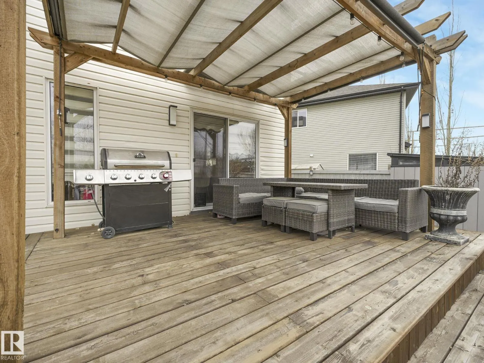 Welcome to The Hamptons! This 1766 sqft, 4 Bed, 3.5 Bath home sits on a massive 614 sqm pie lot & shines with recent updates! Step inside to a welcoming entrance & open main floor. The living room is bright w/ a natural gas fireplace, leading to a breakfast nook & the fully updated kitchen, boasting white cabinets & quartz countertops. A walk-in pantry, updated 2pc powder room & mudroom w/ heated garage access are on this level. Rear balcony doors lead to your private oasis: a built deck, stunning pergola, & an incredibly wide, south-facing backyard. Head upstairs to the getaway 'bonus room'âan ideal second living area. The upper level also has an updated full main bath & 3 spacious bedrooms. The primary suite is a true retreat, w/ a 5pc ensuite bath, separate shower & relaxing jacuzzi tub. The fully finished basement adds even more space, w/ a huge family room, the 4th bedroom, & another full bath! This home blends a great floor plan, a huge lot, & critical updates. Don't miss this exceptional value! (id:27476)