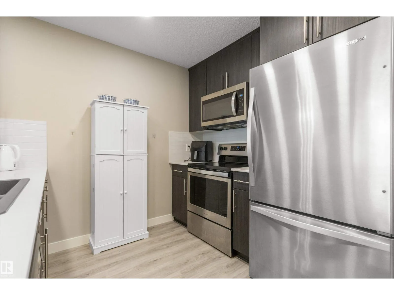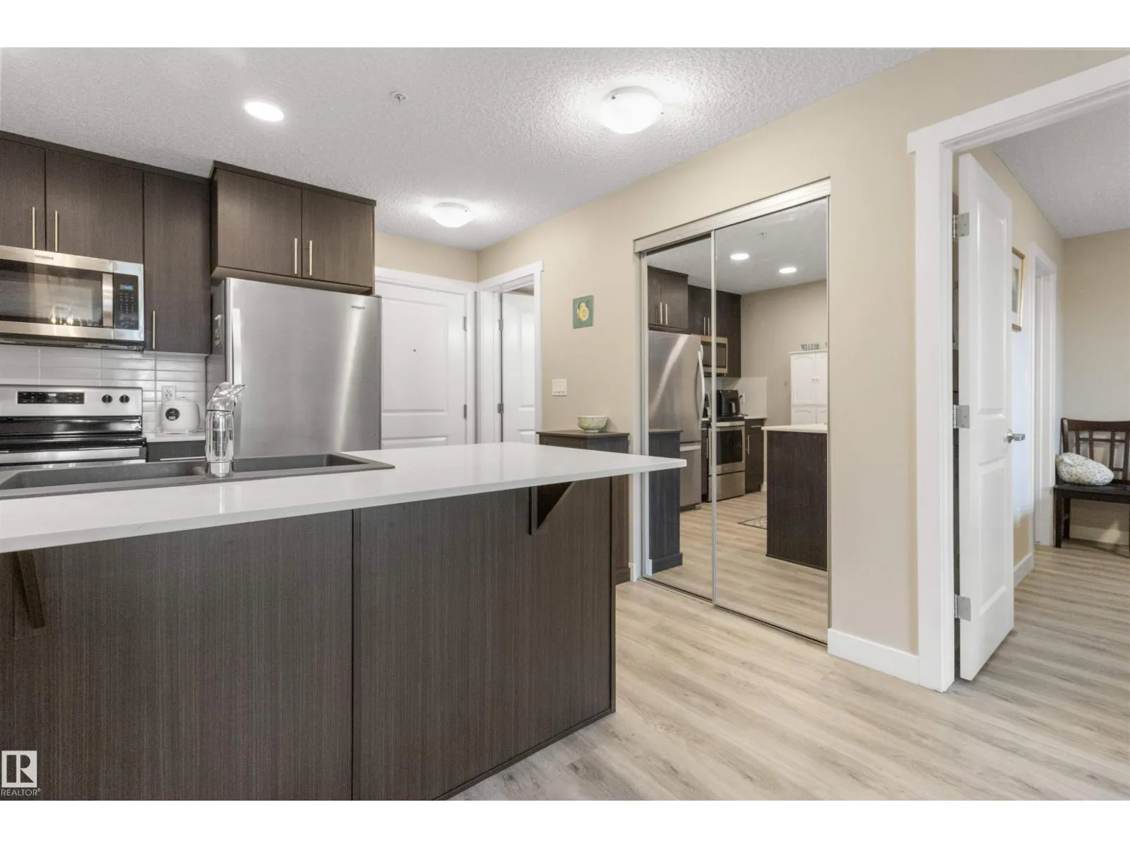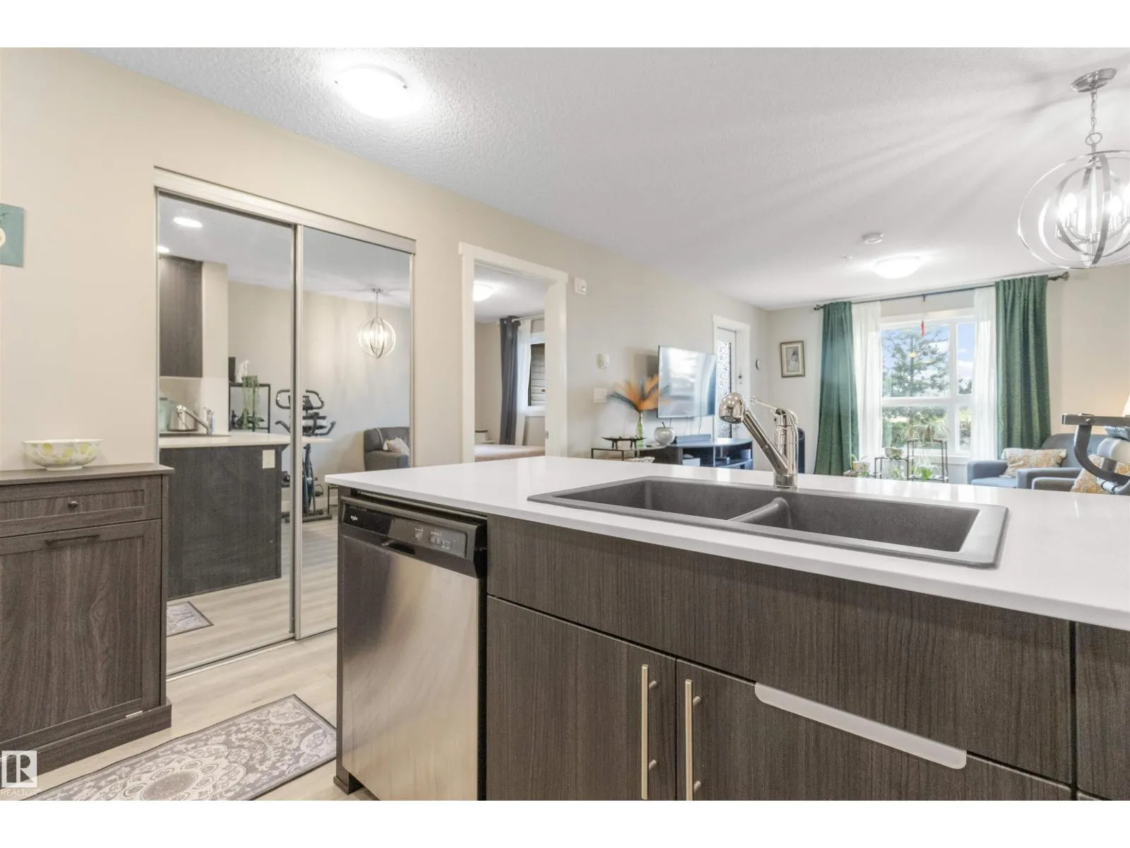 Immaculate main floor unit with private south-facing balcony overlooking quiet green area. Peninsula kitchen features quartz countertops with extended eating bar, ceramic backsplash, stainless steel appliances and granite sink. Large living room with oversized windows and garden door to sunny patio. Spacious bedroom with large walk-in closet. Luxury vinyl plank flooring and upgraded fixtures. In-suite laundry. Underground heated parking and private storage unit. Fantastic amenities including social rooftop patio, community vegetable garden and fenced dog park. Close to all services including public transportation, shopping, dining and entertainment. Private and secure unit with safety locks on windows and doors as well as 24 hour monitored security. Don't miss out! (id:27476)