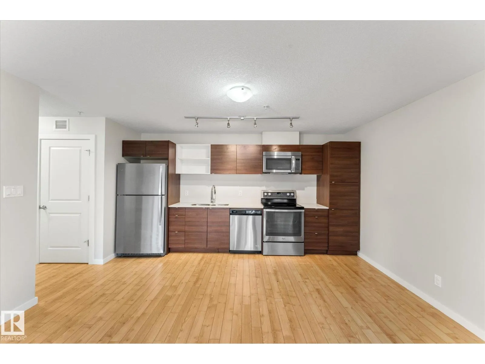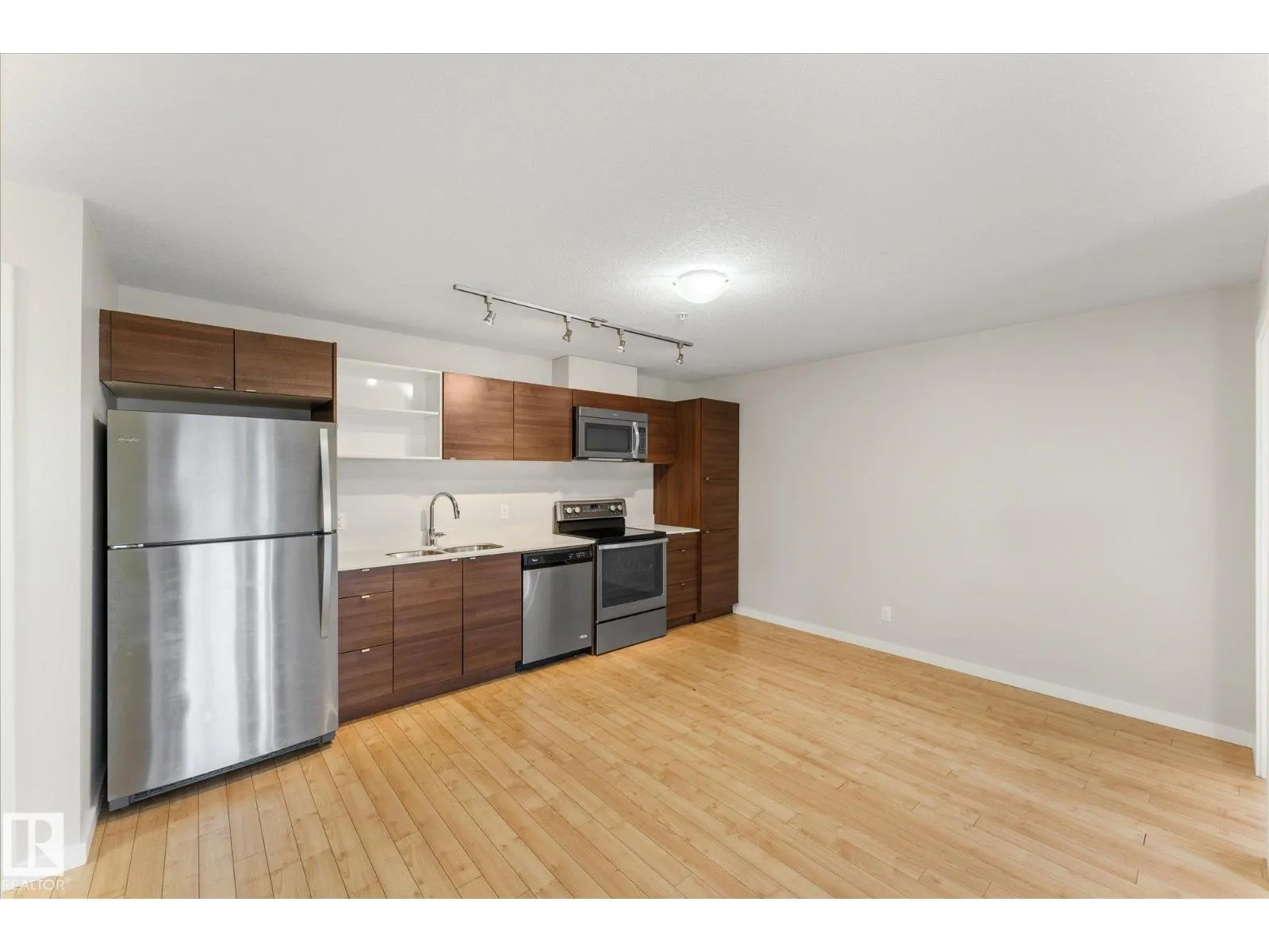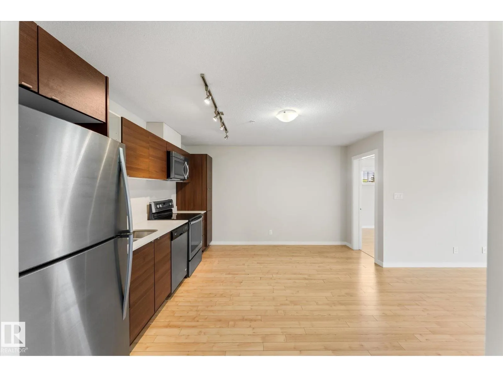 Welcome to Radiance in North Edmontonâs desirable Eaux Claires community! This 2-bed, 2-bath END UNIT features modern cabinetry, quartz countertops, stainless steel appliances, fresh paint, and laminate flooring throughout with tile in the bathrooms. Enjoy TITLED HEATED UNDERGROUND PARKING (stall #87 near entry) and a private patio with natural gas BBQ hookup. The building offers elevator access and secure key-fob entry. Pets allowed (two max, dogs up to 17â shoulder). Steps from Save-On-Foods, Shoppers, restaurants, and Eaux Claires Transit Centre, with quick access to 97 St, Anthony Henday, Yellowhead, and Downtown. Perfect for owners or investors seeking location, lifestyle, and value! (id:27476)