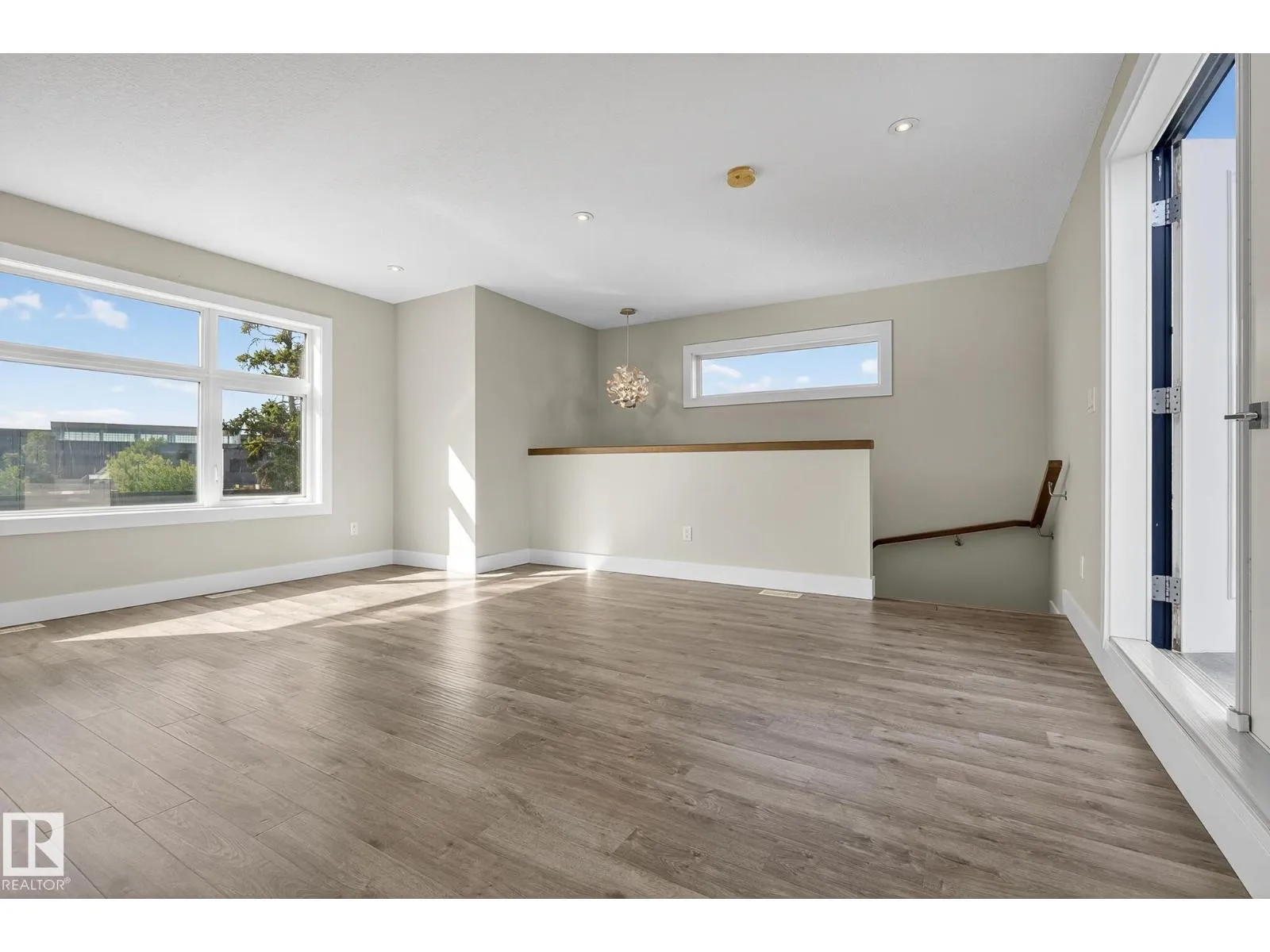 Welcome to Belgravia, one of Edmontonâs most sought-after family-friendly communities. This bright and spacious 2.5-storey home offers over 2,800 sq. ft. of well-designed living space with 4 bedrooms, 3.5 bathrooms, and a double garage. The main floor features engineered hardwood, a welcoming living area with a 6â electric fireplace, a large dining area, and a chefâs kitchen with custom cabinetry, quartz countertops, a 10â waterfall island, and stainless steel appliances. Upstairs, the primary suite boasts a walk-in closet and a 4-piece ensuite, alongside two additional bedrooms and a laundry room, while the third floor offers an open loft with a rooftop patio and great views. The fully finished basement adds a 4th bedroom, rec area, and full bath, and outside youâll find a fenced backyard with a two-tier patio, perfect for summer entertaining. Ideally located near the LRT, University of Alberta, off-leash dog area, River Valley, trails, parks, and shopping, this move-in-ready home truly has it all! (id:27476)