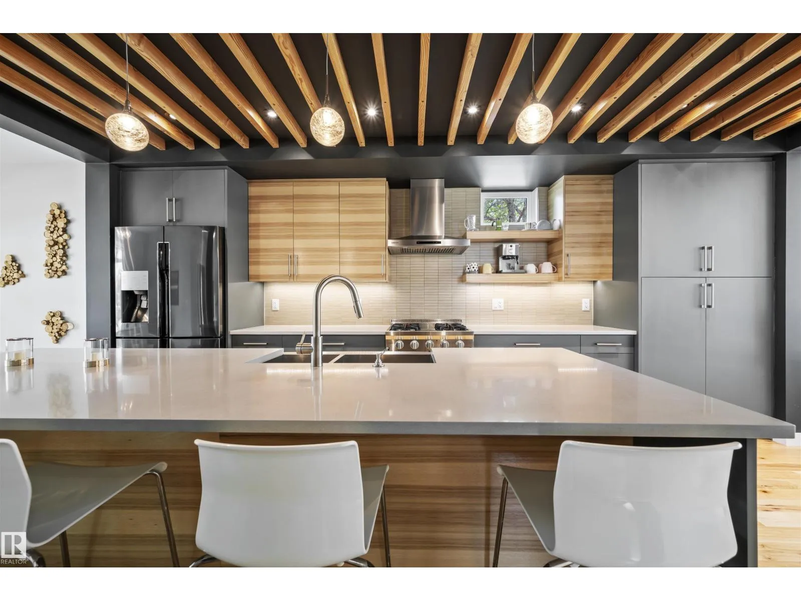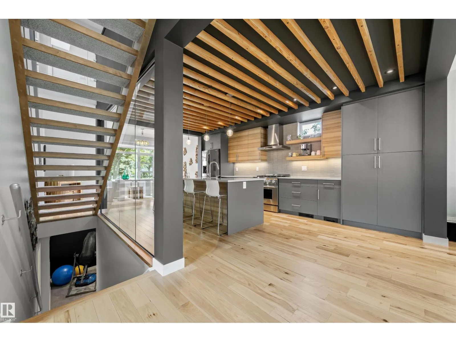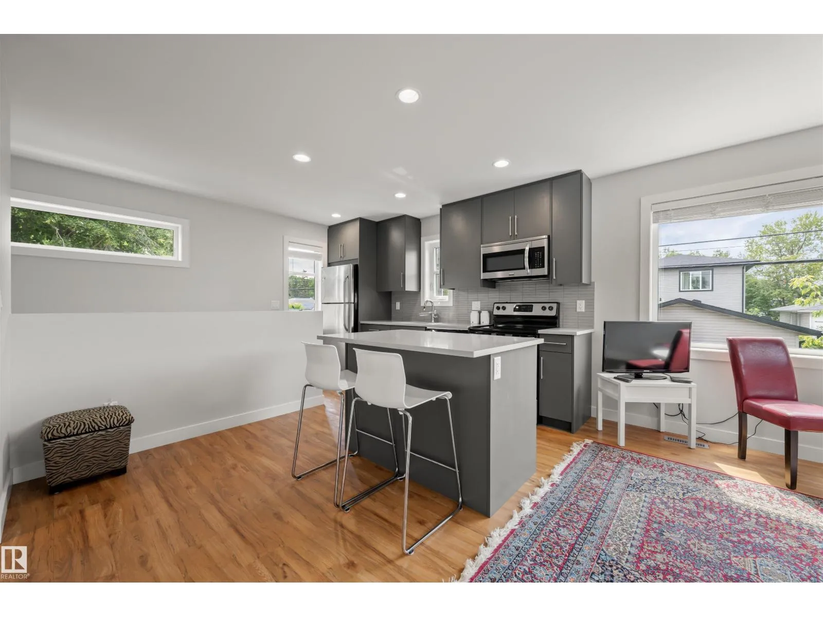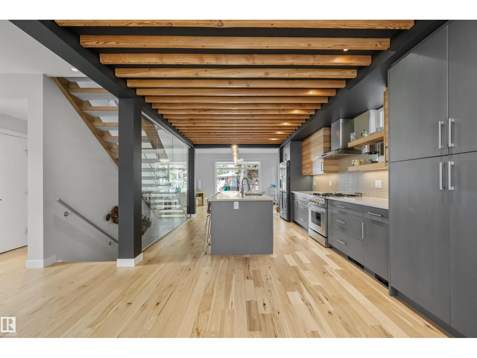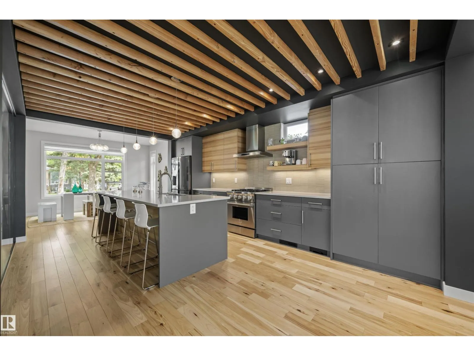 In a world of increased density, this wonderful home has a FULL LENGTH driveway with parking for 5 vehicles! Immaculate sq ft two-storey on a full-size lot with a fully finished basement and a legal one-bedroom garage suiteâideal for extended family or rental income. Thoughtfully designed with classic charm and modern touches, this 4-bedroom home (3 up, 1 down) features hickory flooring, a chefâs kitchen with quartz island, 5-burner gas stove, and high-end appliances. The open-concept main floor includes a spacious dining area and family room that opens to a sunny south-facing yard with an oversized deck. Upstairs offers walk-in closets in every bedroom, a stylish 4-piece ensuite, upstairs laundry, and a second full bath. The basement adds a large rec room and guest bedroom, while the garage suite has a private entrance, full kitchen, laundry, and 5 appliances. Finished landscaping, a large mudroom, custom built-ins, and 200 Amp service to the house complete this one-of-a-kind home! (id:27476)
