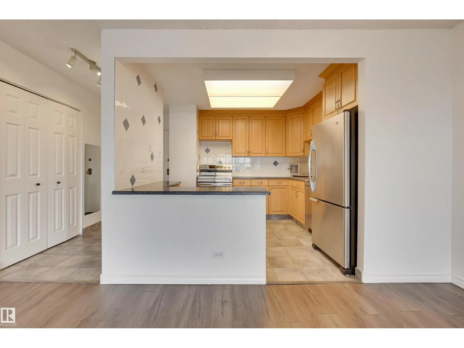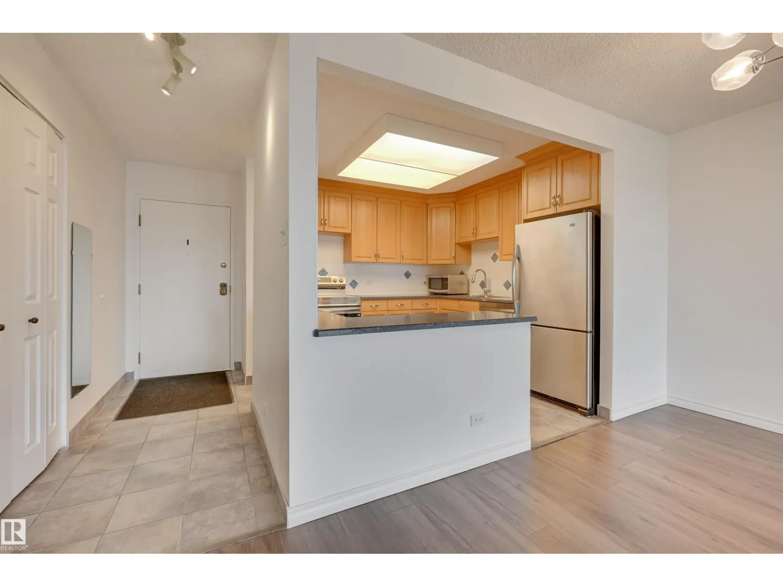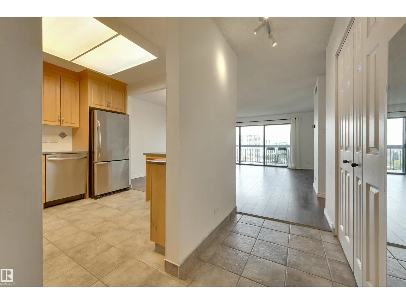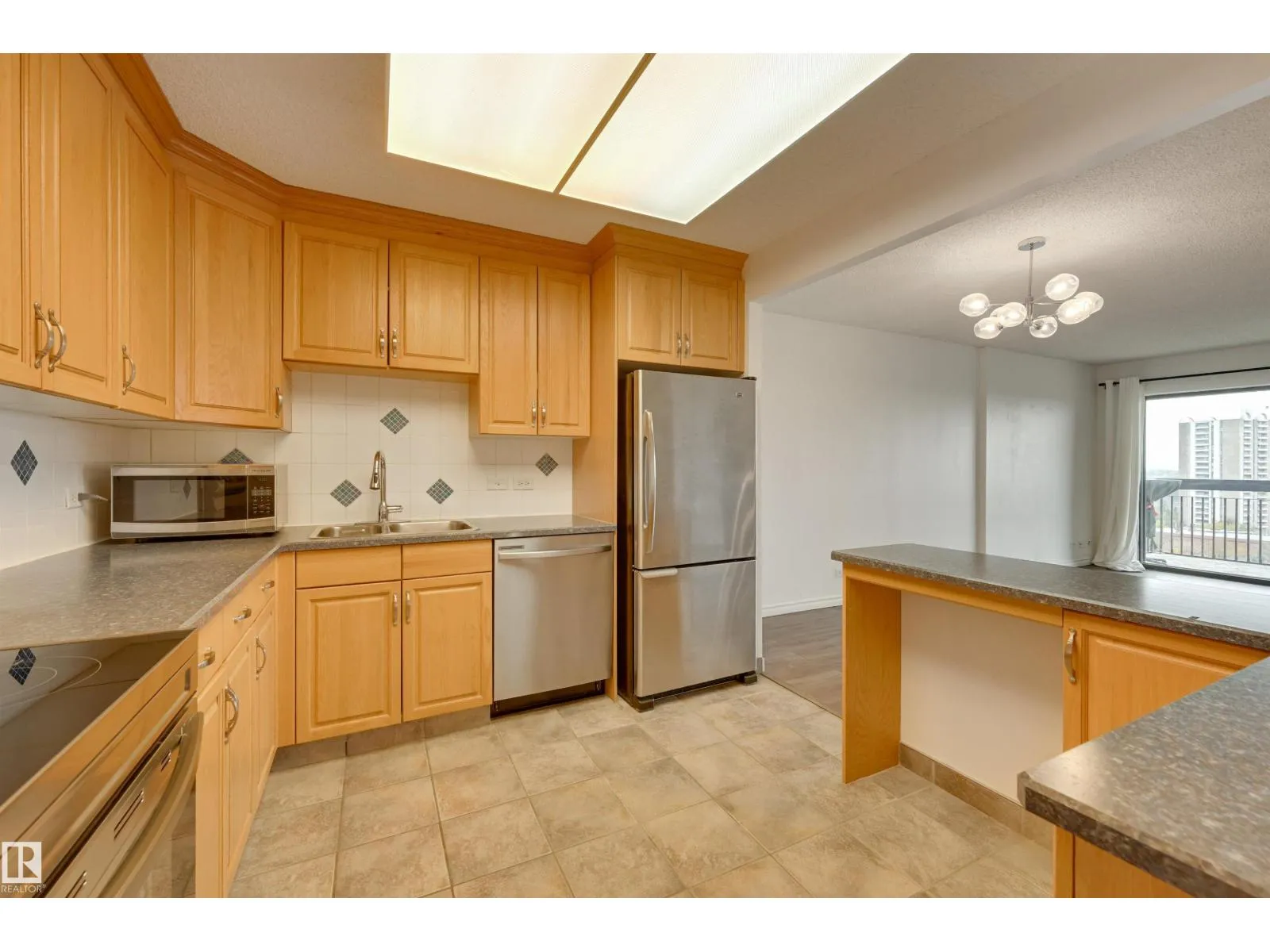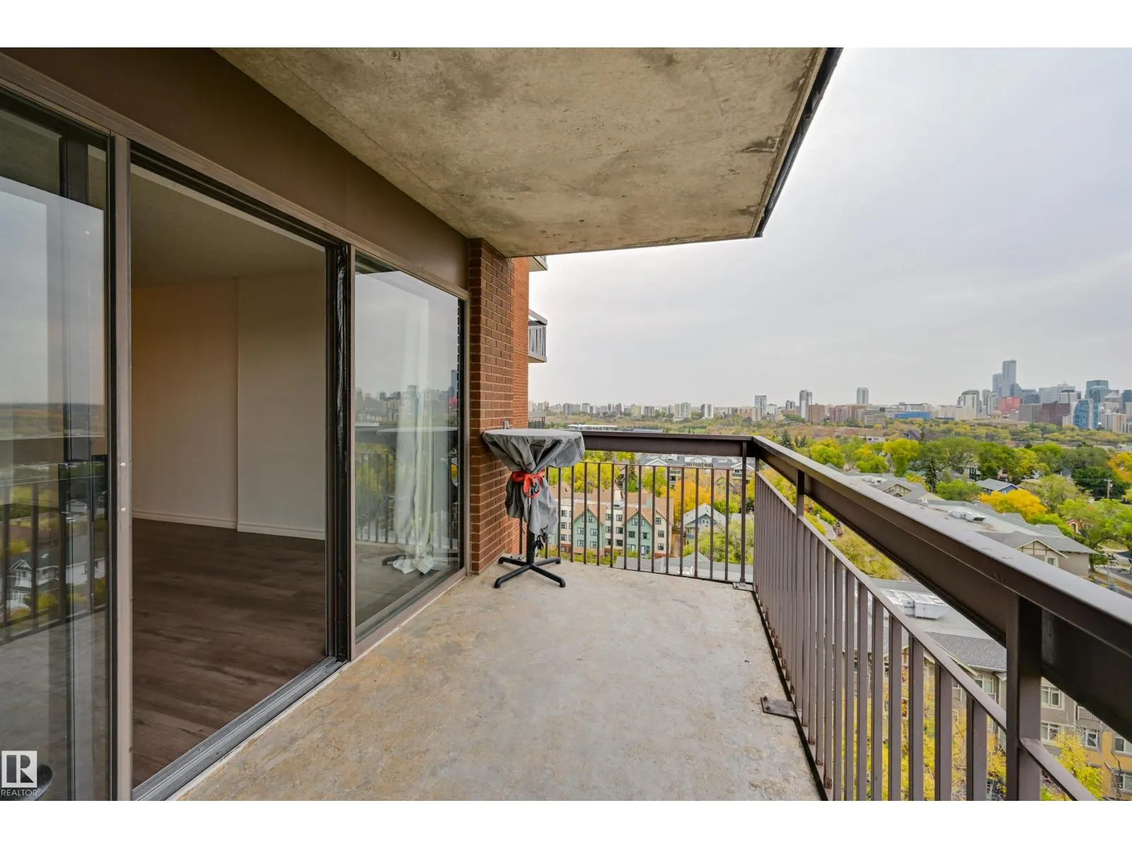DOWNTOWN & RIVER VALLEY VIEWS from this spacious 1 bedroom 868 sq.ft. condo in CLARIDGE HOUSE conveniently located steps to the U of A, close to transportation, restaurants, coffee shops & quick access to Whyte Avenue & Downtown. Open concept layout with the kitchen open to the dining & living room. Oak cabinetry with lots of storage. Vinyl plank flooring in the dining & living room. Step onto the east facing balcony with great views of Downtown & the river valley. Also, there is a storage room on the balcony. 4 piece bathroom next to the primary suite. Included is the stainless steel fridge, stove (Brand New), dishwasher (Brand New), INSUITE WASHER & DRYER, A/C & TITLED UNDERGROUND PARKING #112. The condo fees include all the utilities & the building maintenance, management & caretaker. Party room & visitor parking. (id:27476)