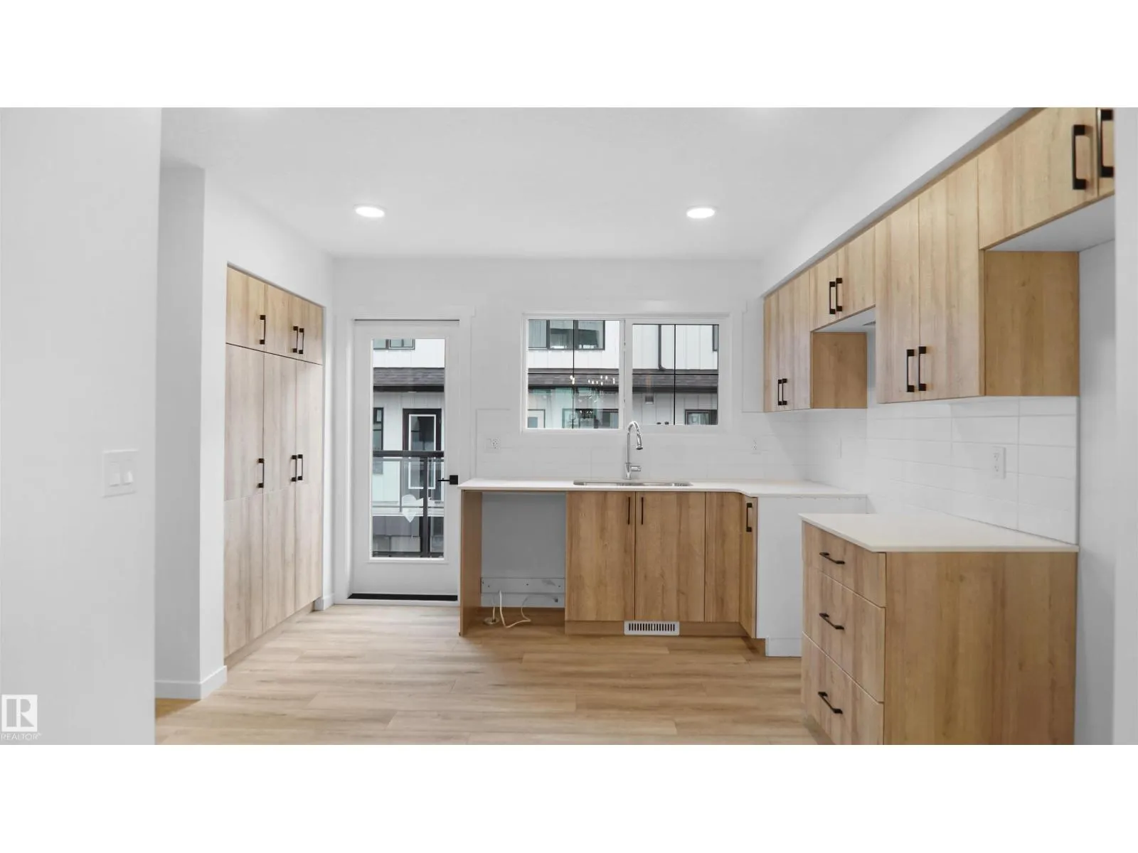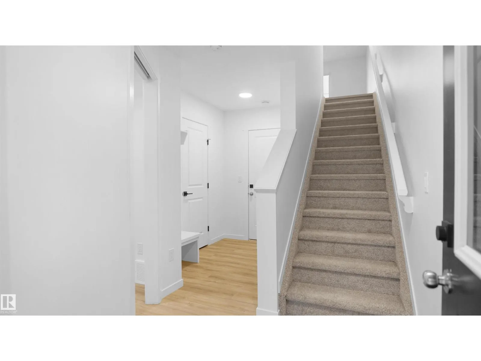 Welcome to this brand new townhouse unit the âAbbeyâ Built by StreetSide Developments and is located in one of Edmonton's newest premier communities of Blatchford. With 1098 square Feet, it comes with front yard landscaping and a single over sized attached garage, this opportunity is perfect for a young family or young couple. Your main floor is complete with upgrade luxury Vinyl Plank flooring throughout the great room and the kitchen. The main entrance/ main floor has a good sized Den that can be also used as a bedroom, it also had a 2 piece bathroom. Highlighted in your new kitchen are upgraded cabinets, upgraded counter tops and a tile back splash. The upper level has 2 bedrooms and 2 full bathrooms. Central living. Sustainable living. Urban living. Community living this is what you will find in Blatchford! This home is now move in ready! (id:27476)