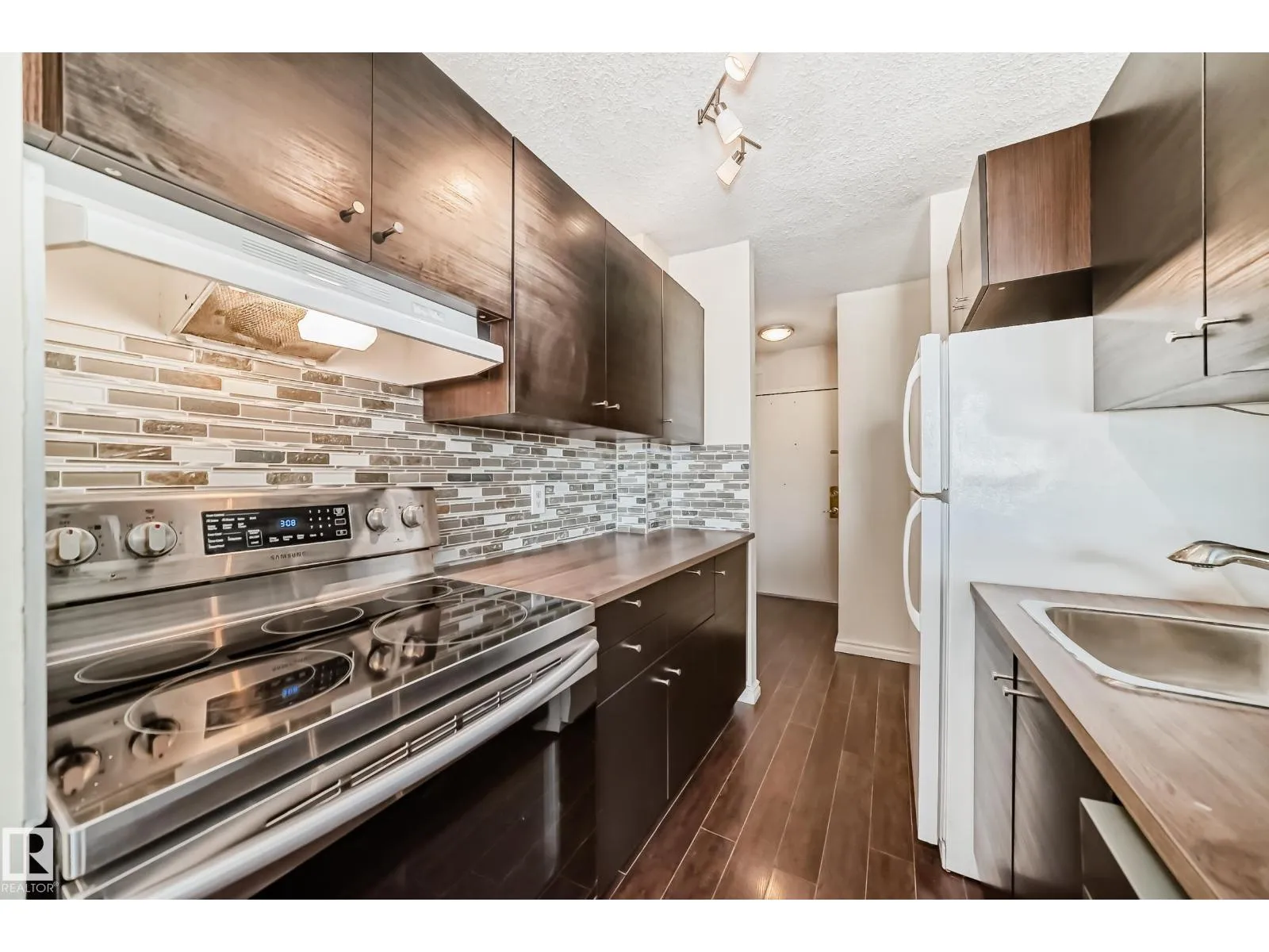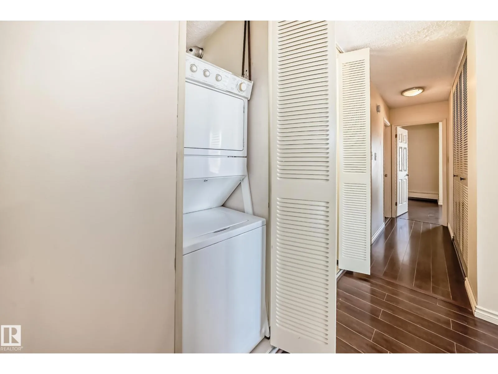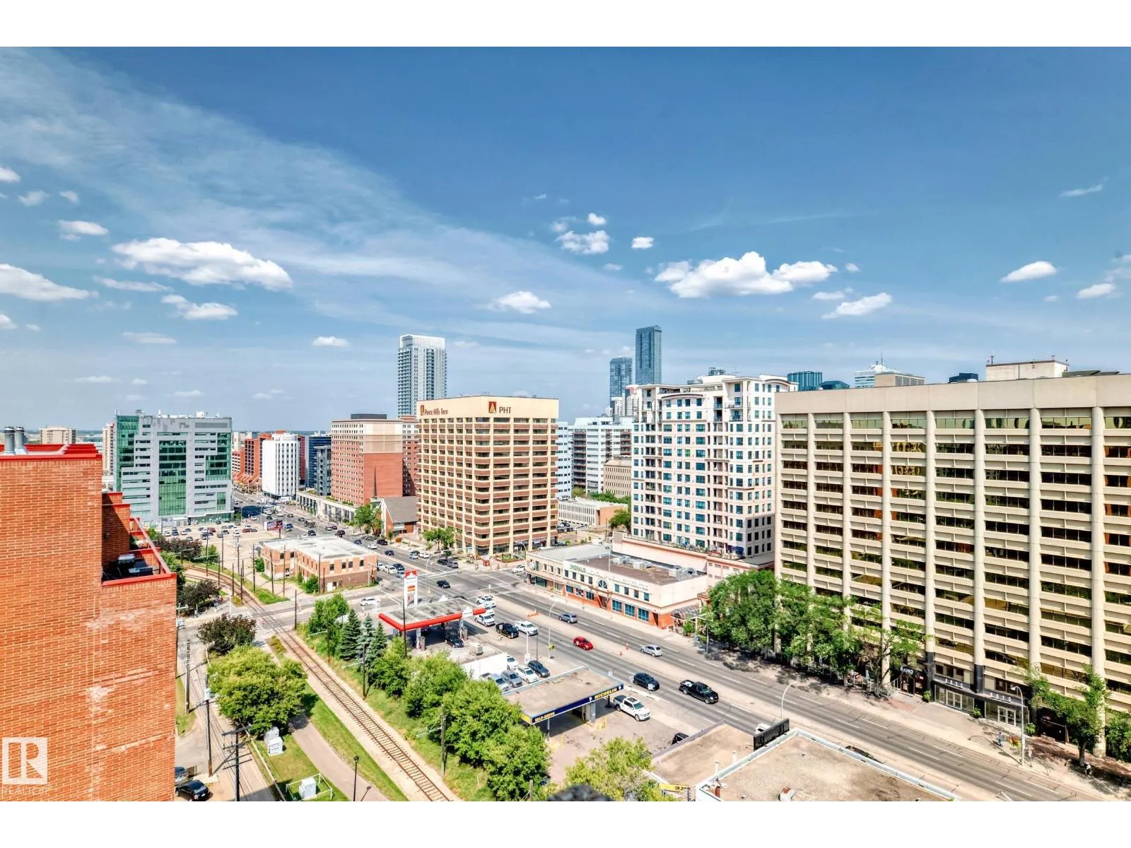 This newly-upgraded 3 bedroom, 2 full bath condo in Westcliff Arms offers fantastic views of the Legislature, city skyline, and Canada Day fireworks. This effectively managed, quiet concrete building only has 4 units per floor. This corner, 16th floor unit boasts beautiful dark flooring, upgraded kitchen cabinets, countertop, backsplash, appliances and paint. Bright and open with nearly 1100 sq ft featuring in-suite laundry, newer oversized patio door and all windows. Lots of storage in the unit, plus two extra storage cages in front of the 99-year leased underground parking, and a titled outdoor parking stall. Condo fees include heat, power, water/sewer and amenities: exercise room, party room, game room and saunas. Government Centre LRT station is right at your door, close to river valley, walking/bike paths, High Level streetcar, excellent restaurants, and much more. Perfect for families, investors, or students. (id:27476)