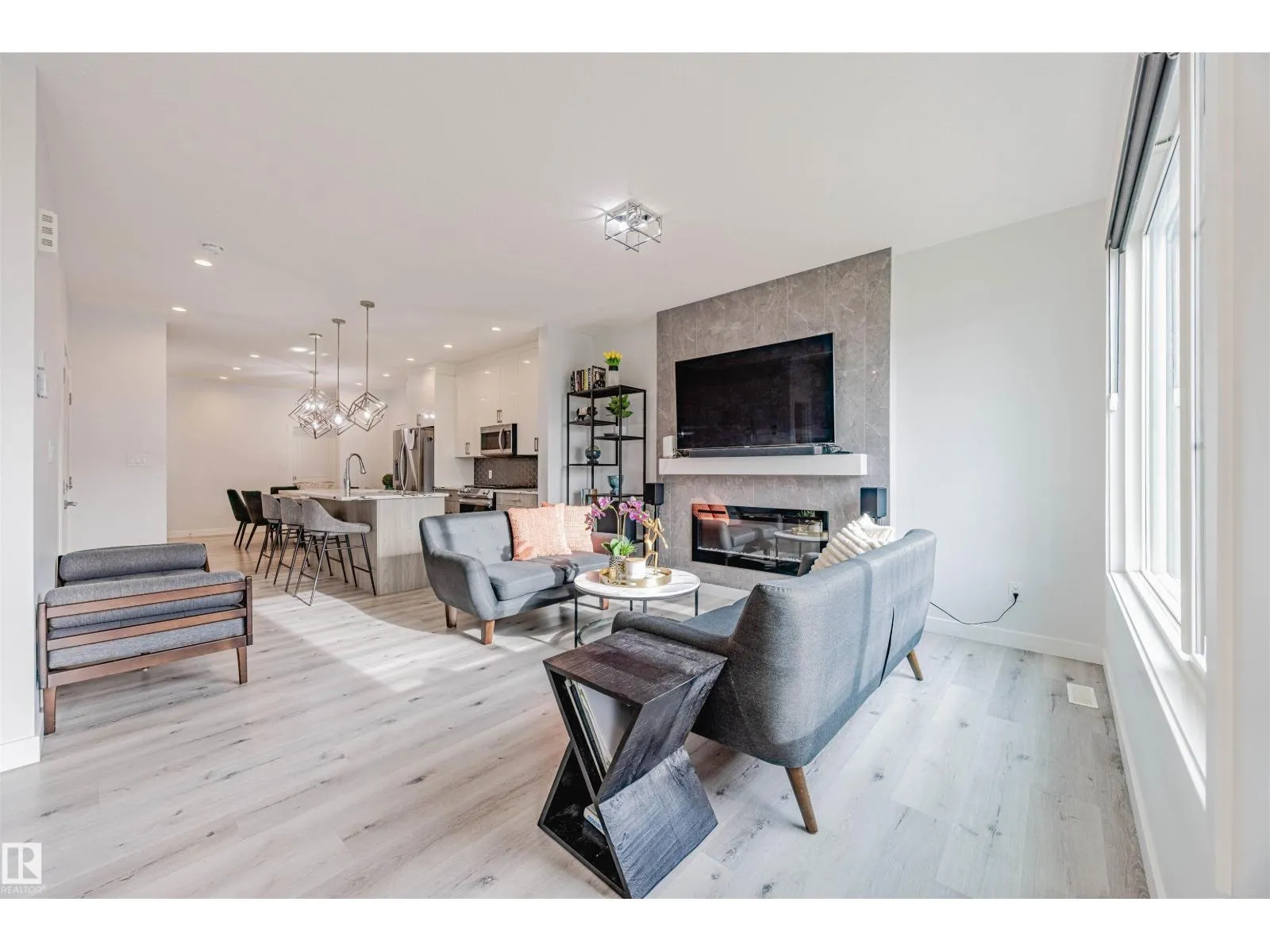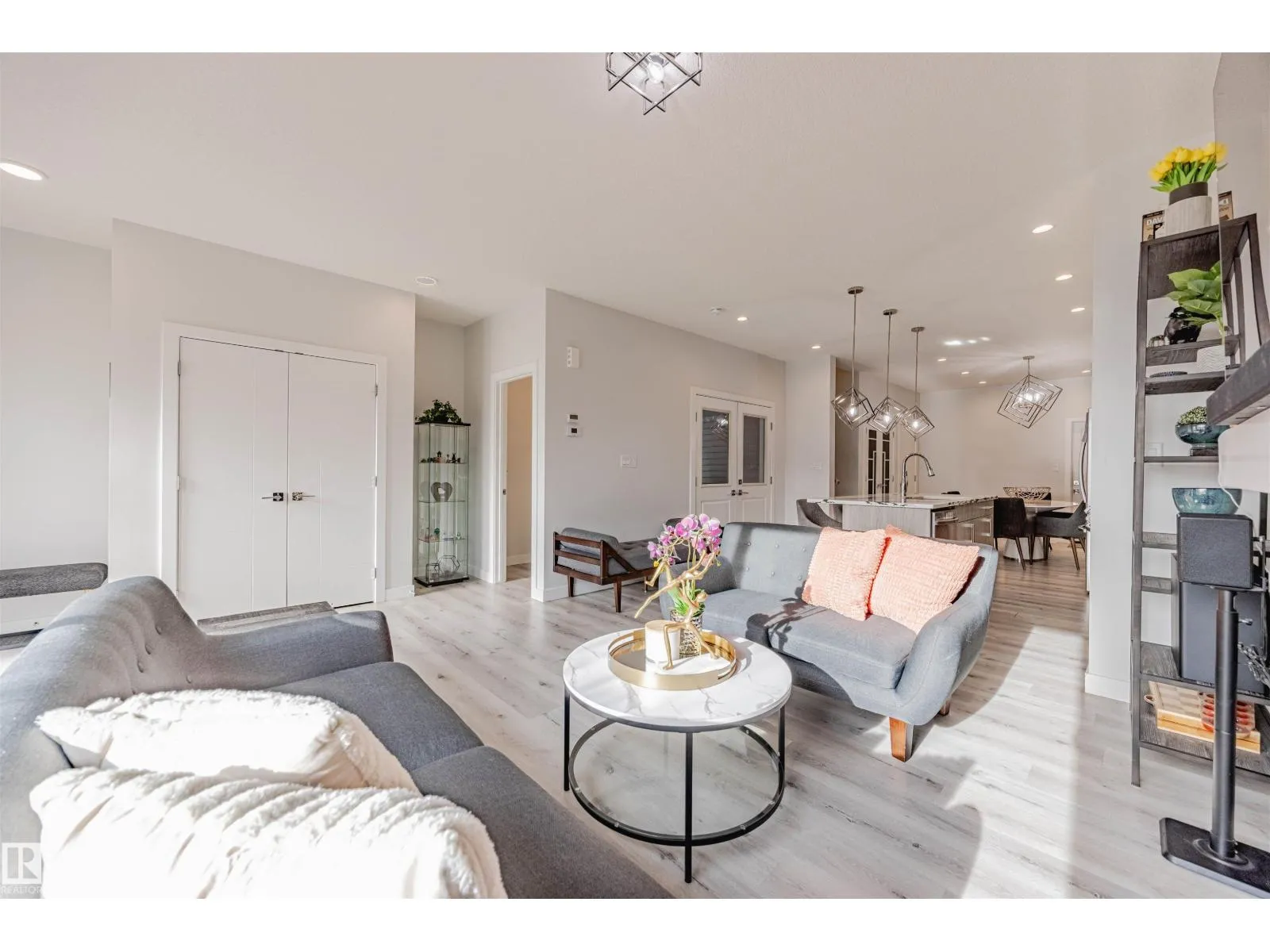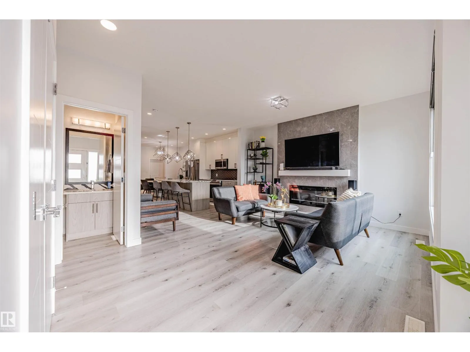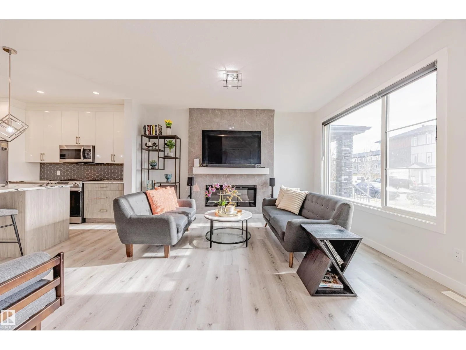 Welcome to this beautiful 2-storey single-family home with a double car garage in the highly sought-after Keswick community. The main floor offers a bright, open layout with a welcoming foyer, spacious living room with an electric fireplace, and stylish vinyl plank flooring throughout. The modern kitchen features white cabinetry, a gas stove, stainless steel appliances, a large island with extra seating, and access to a balcony. The dining area is perfect for family gatherings, and a 2-piece bathroom completes the main level. Upstairs, the primary suite easily fits a king-size bed and includes a walk-in closet, private 4-piece ensuite, and its own balcony. Two additional bedrooms share another full 4-piece bath. The upper level also offers a laundry room with a washer and dryer and a versatile bonus room. The fully finished basement with side entrance includes a family room, bedroom, and 4-piece bath. Close to schools, parks, shopping, and minutes to Edmonton International Airport. (id:27476)