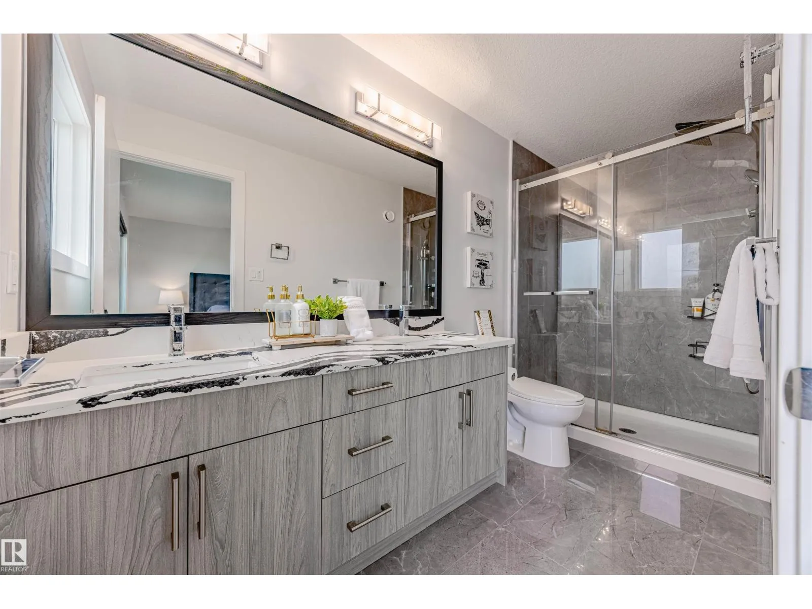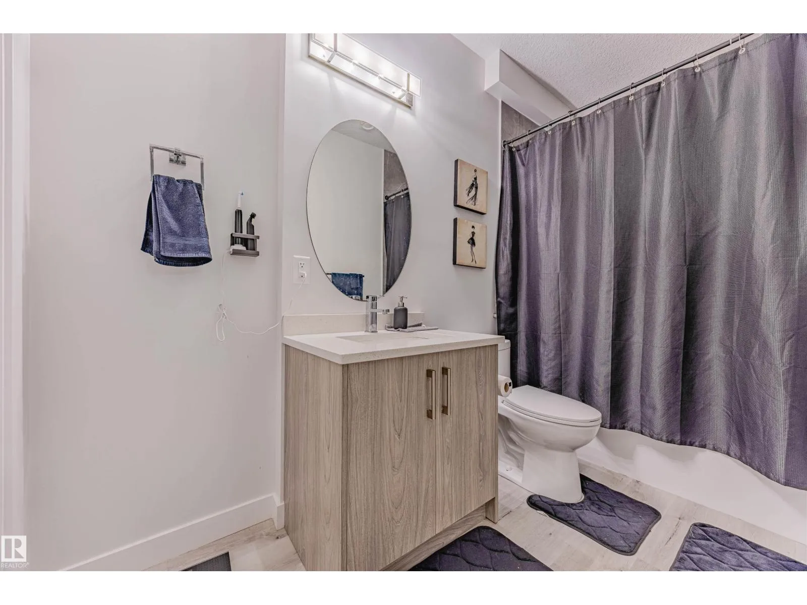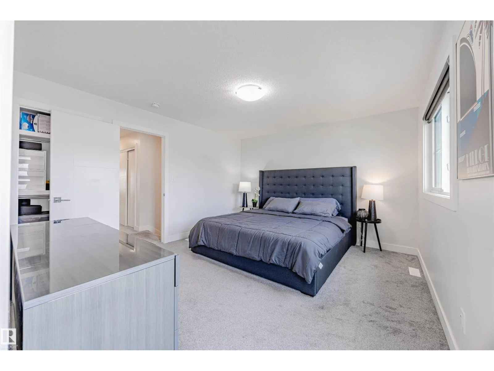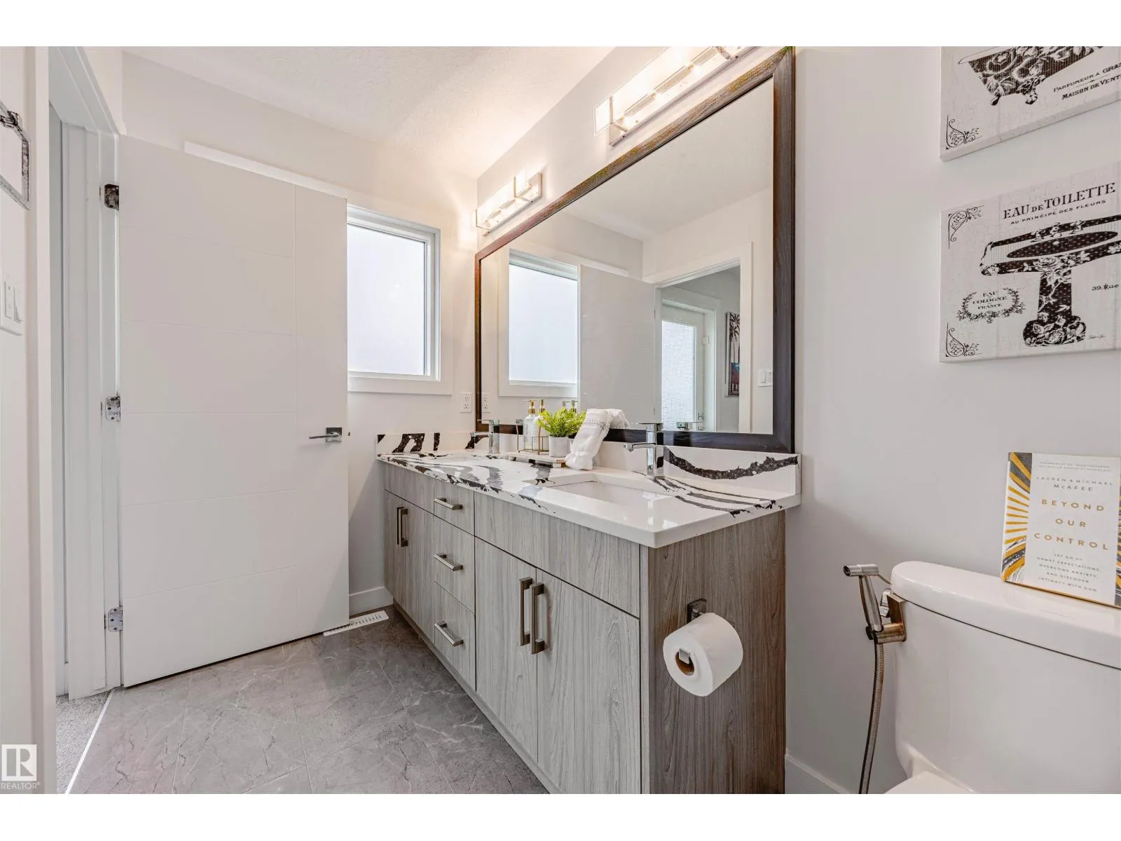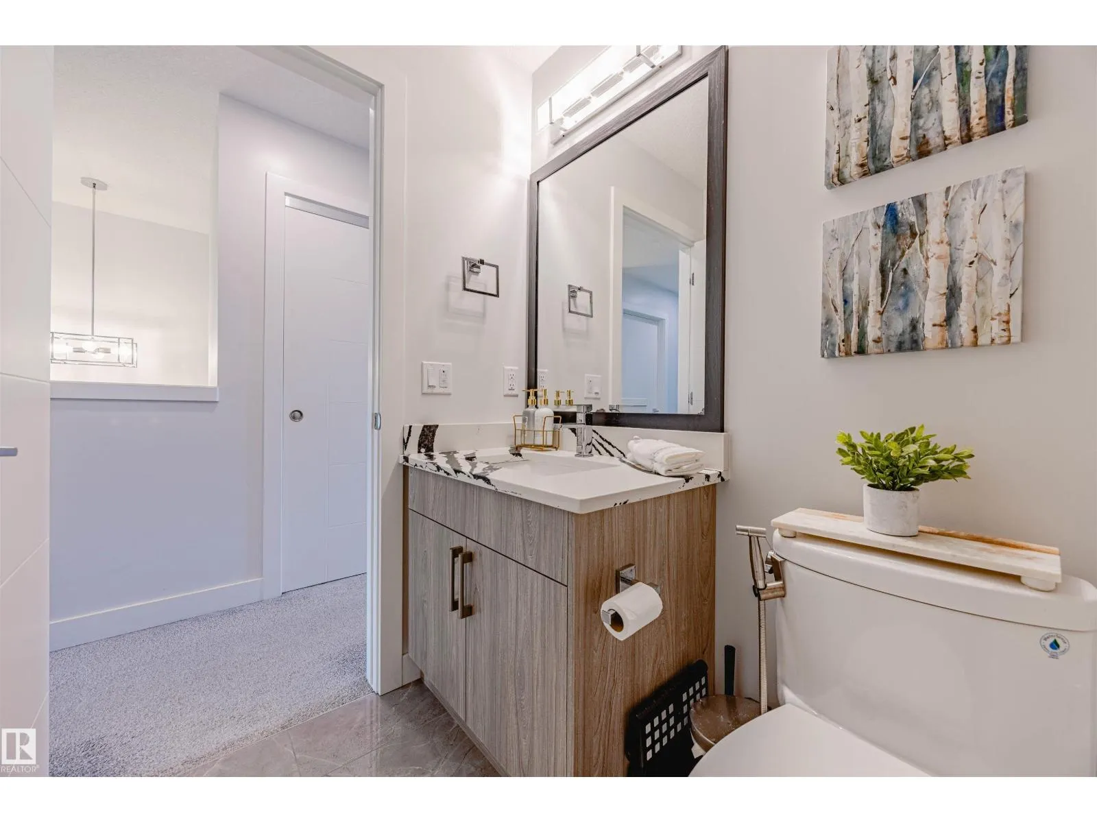 Welcome to this beautiful 2-storey single-family home with a double car garage in the highly sought-after Keswick community. The main floor offers a bright, open layout with a welcoming foyer, spacious living room with an electric fireplace, and stylish vinyl plank flooring throughout. The modern kitchen features white cabinetry, a gas stove, stainless steel appliances, a large island with extra seating, and access to a balcony. The dining area is perfect for family gatherings, and a 2-piece bathroom completes the main level. Upstairs, the primary suite easily fits a king-size bed and includes a walk-in closet, private 4-piece ensuite, and its own balcony. Two additional bedrooms share another full 4-piece bath. The upper level also offers a laundry room with a washer and dryer and a versatile bonus room. The fully finished basement with side entrance includes a family room, bedroom, and 4-piece bath. Close to schools, parks, shopping, and minutes to Edmonton International Airport. (id:27476)