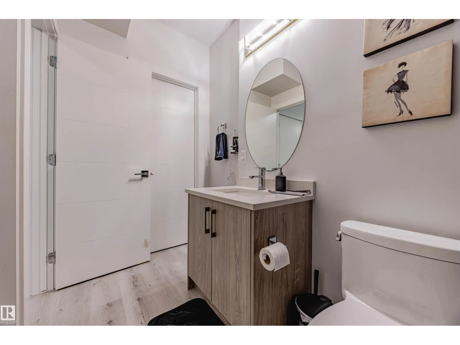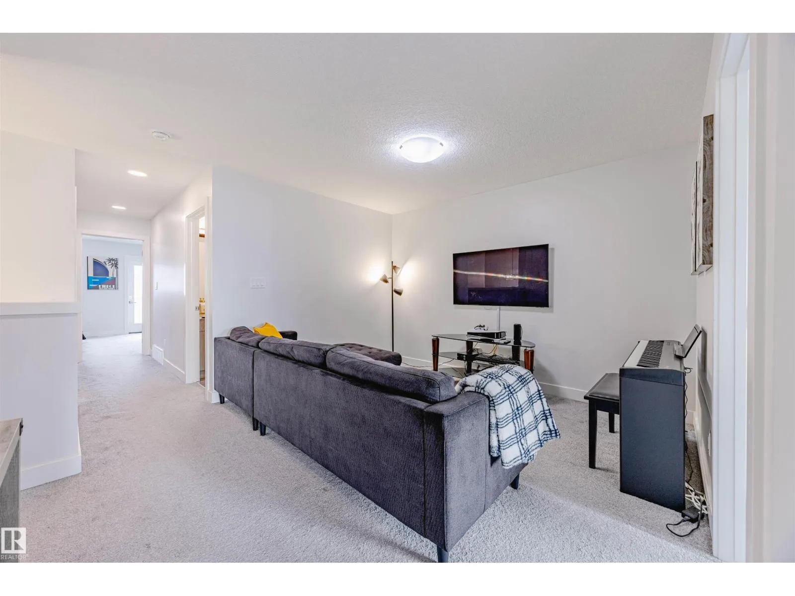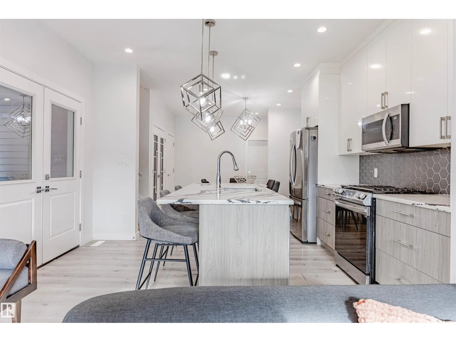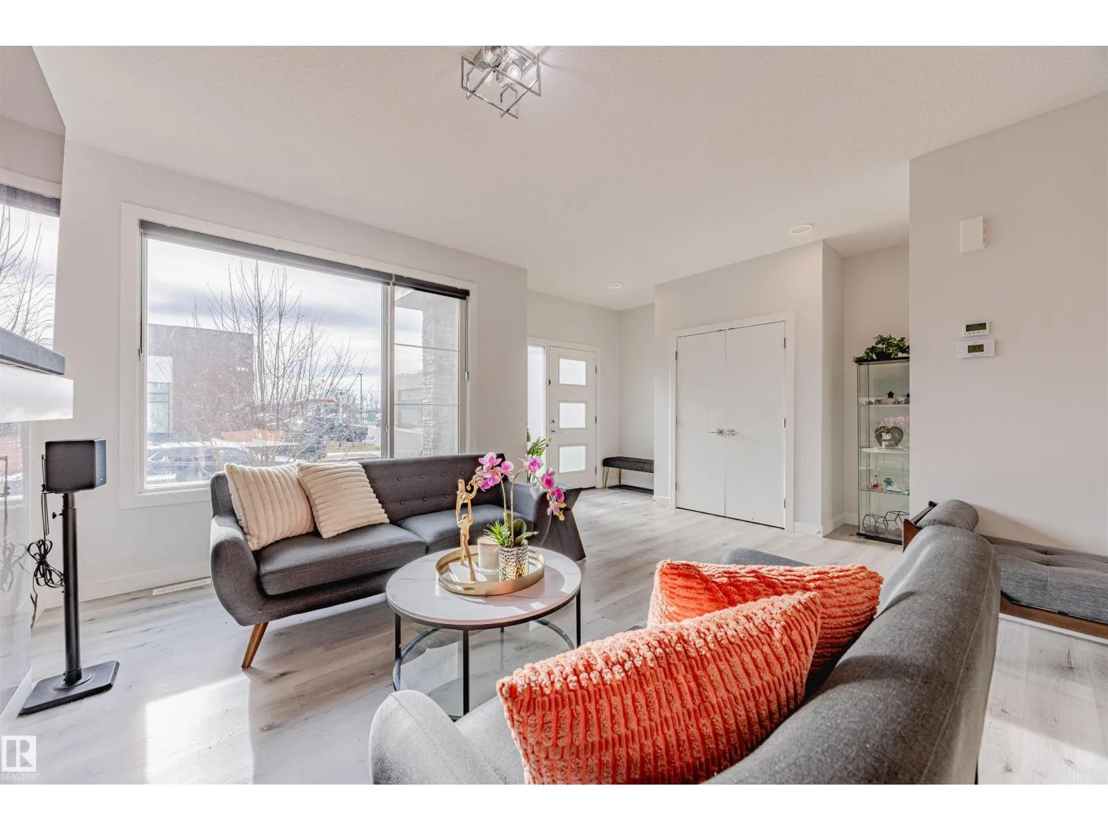 Welcome to this beautiful 2-storey single-family home with a double car garage in the highly sought-after Keswick community. The main floor offers a bright, open layout with a welcoming foyer, spacious living room with an electric fireplace, and stylish vinyl plank flooring throughout. The modern kitchen features white cabinetry, a gas stove, stainless steel appliances, a large island with extra seating, and access to a balcony. The dining area is perfect for family gatherings, and a 2-piece bathroom completes the main level. Upstairs, the primary suite easily fits a king-size bed and includes a walk-in closet, private 4-piece ensuite, and its own balcony. Two additional bedrooms share another full 4-piece bath. The upper level also offers a laundry room with a washer and dryer and a versatile bonus room. The fully finished basement with side entrance includes a family room, bedroom, and 4-piece bath. Close to schools, parks, shopping, and minutes to Edmonton International Airport. (id:27476)