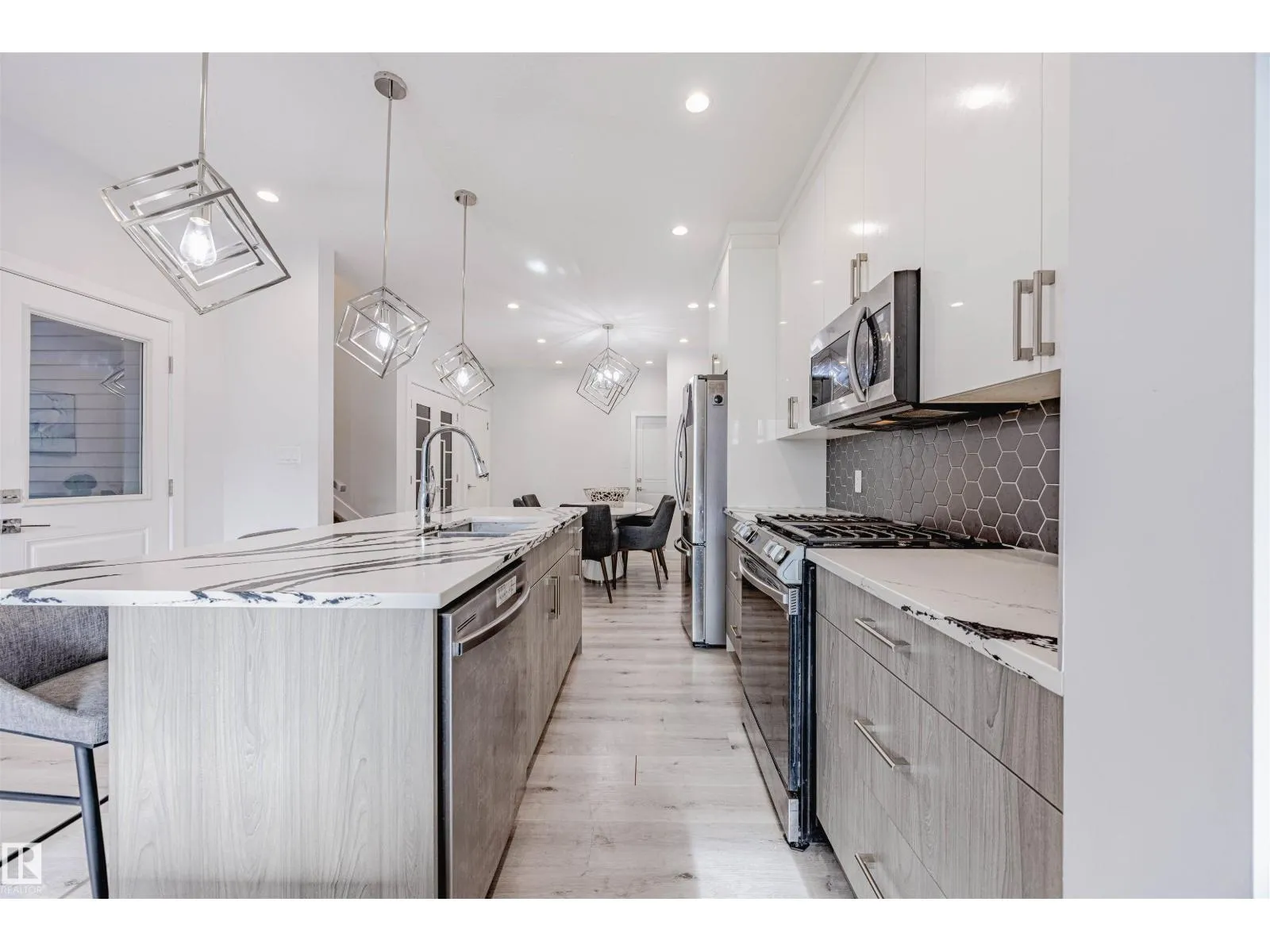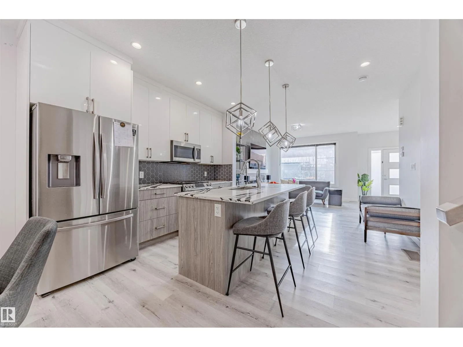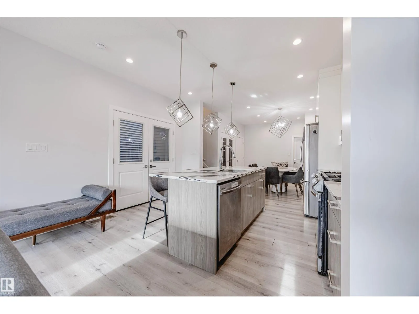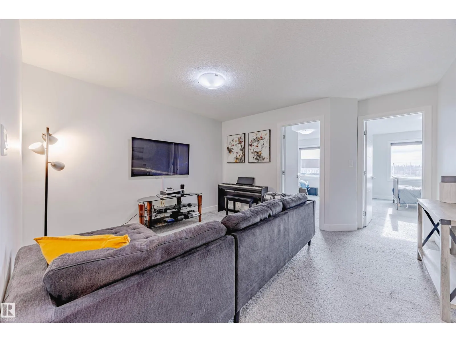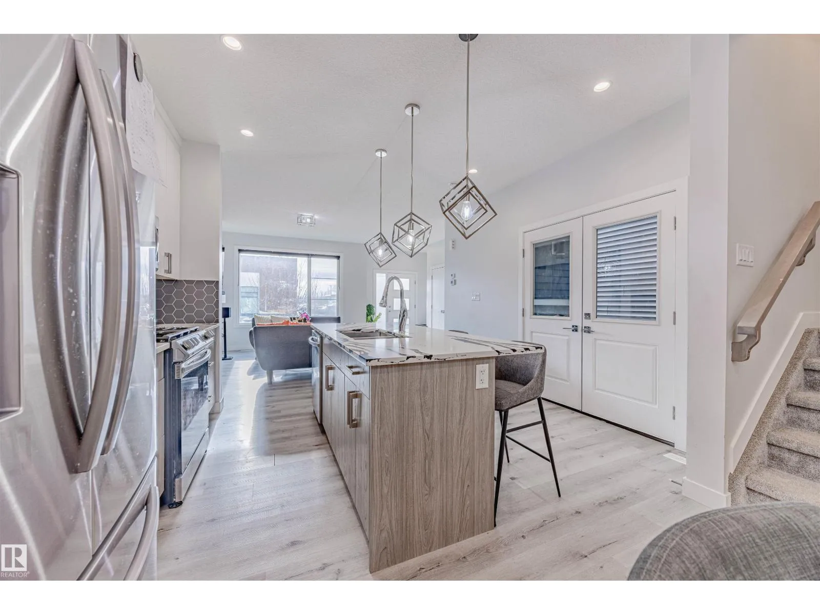 Welcome to this beautiful 2-storey single-family home with a double car garage in the highly sought-after Keswick community. The main floor offers a bright, open layout with a welcoming foyer, spacious living room with an electric fireplace, and stylish vinyl plank flooring throughout. The modern kitchen features white cabinetry, a gas stove, stainless steel appliances, a large island with extra seating, and access to a balcony. The dining area is perfect for family gatherings, and a 2-piece bathroom completes the main level. Upstairs, the primary suite easily fits a king-size bed and includes a walk-in closet, private 4-piece ensuite, and its own balcony. Two additional bedrooms share another full 4-piece bath. The upper level also offers a laundry room with a washer and dryer and a versatile bonus room. The fully finished basement with side entrance includes a family room, bedroom, and 4-piece bath. Close to schools, parks, shopping, and minutes to Edmonton International Airport. (id:27476)