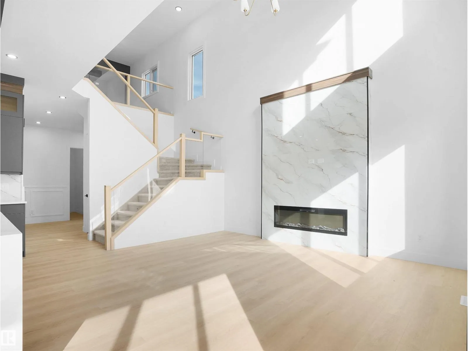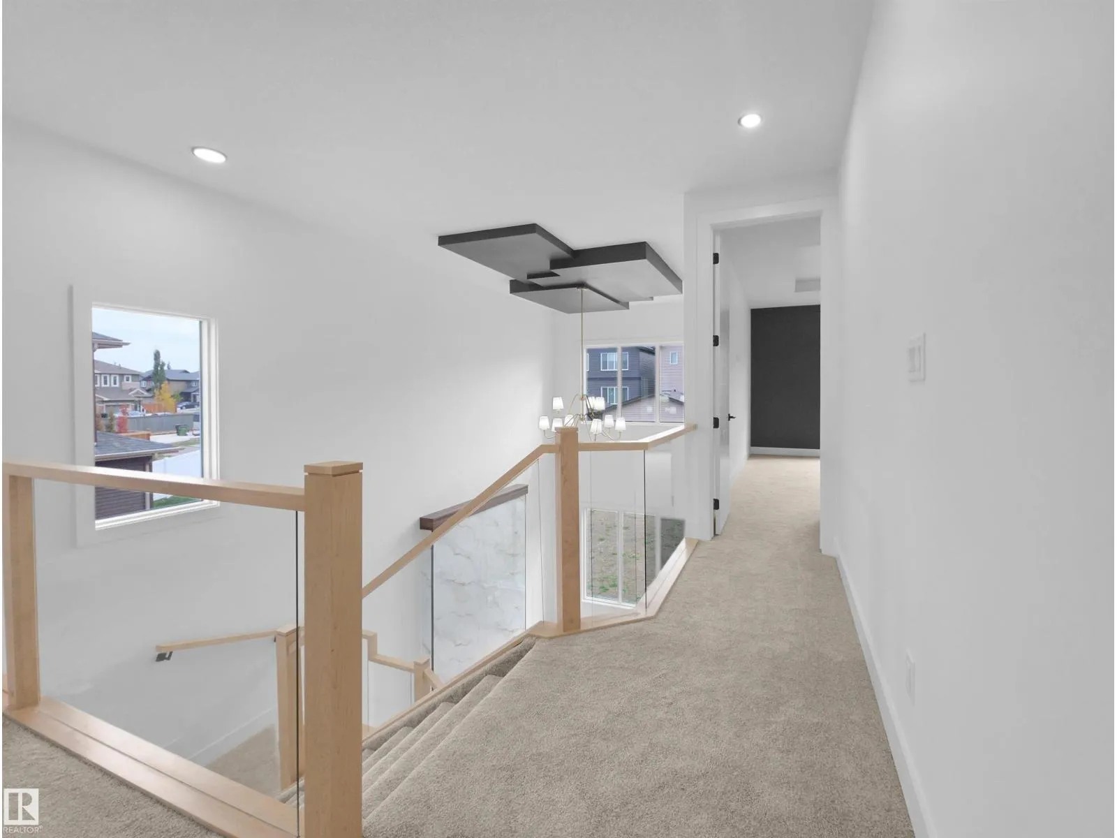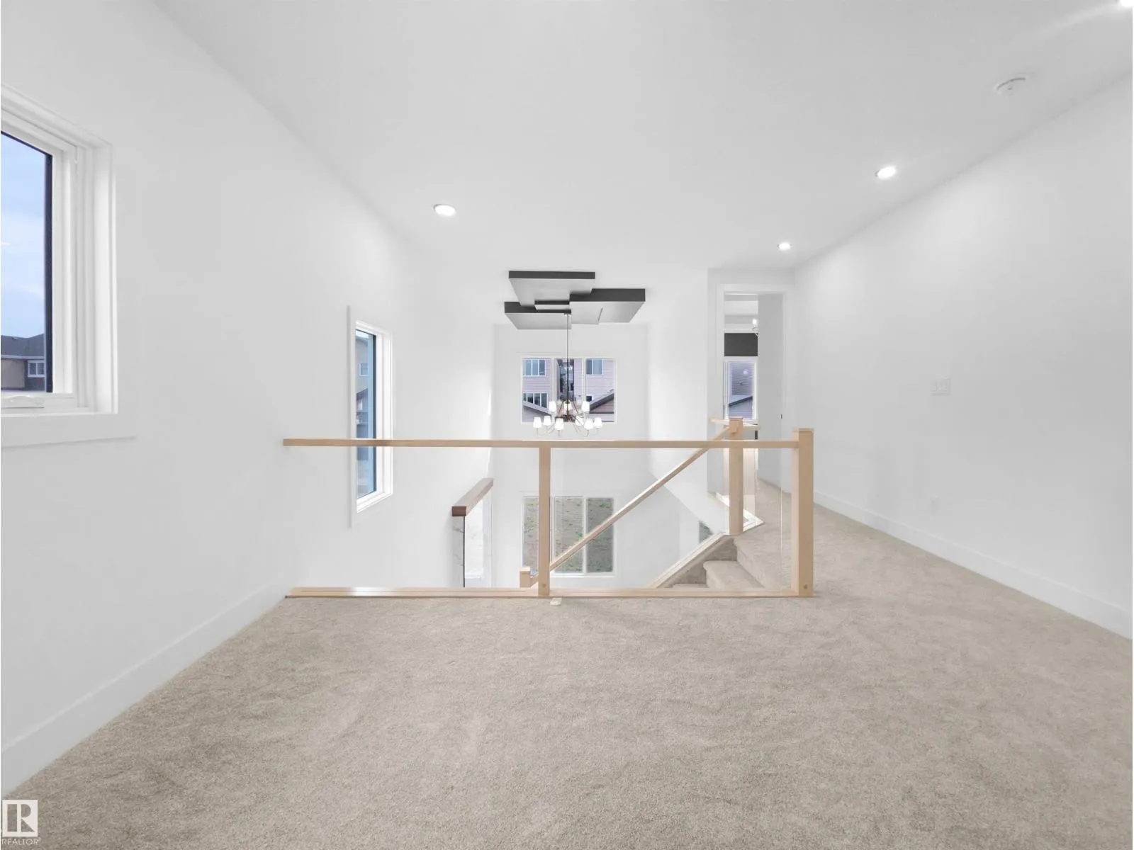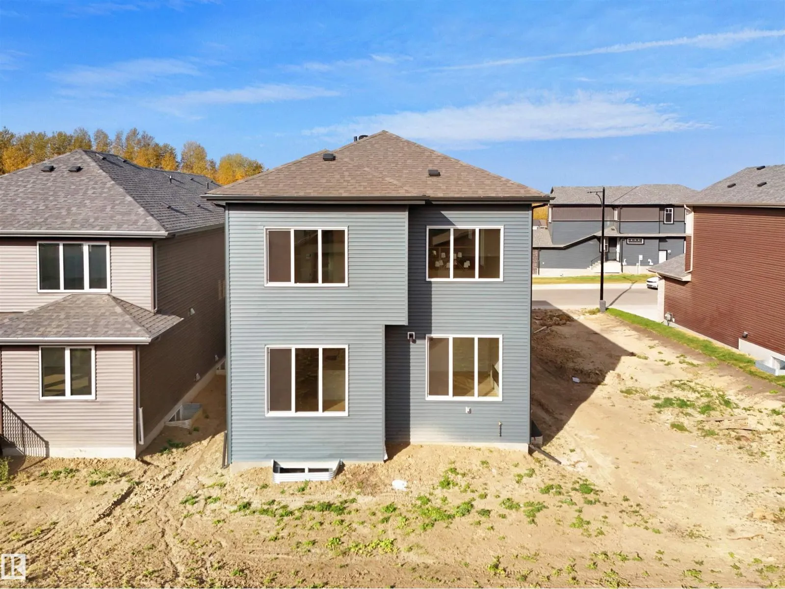Welcome to this elegant 2680 Sq ft. 5 rooms, 4-bath custom home, in Hawks Ridge, a community surrounded by scenic walking trails, ponds & preserved natural beauty and its nestled beside Big Lake & Lois Hole Provincial Park. The main level features a DEN with full 3-pc bath, a dramatic open-to-above living room, a spice kitchen, a chef-inspired extended kitchen with spacious dining area, 10â ceilings throughout and a mudroom with access to the double attached garage. Upstairs offers 4 bedrooms, 3 full bathrooms, a bonus room, and laundry room with Quartz Counter and cabinetry. Thoughtfully upgraded with BUILT-IN APPLIANCES, BLINDS, MDF SHELVING, 8â DOORS, upgraded light fixtures including chandelier, feature walls, black hardware, QUARTZ COUNTERTOPS WITH WATERFALL KITCHEN ISLAND and more. A side entrance to the basement provides excellent future suite potential. (id:27476)