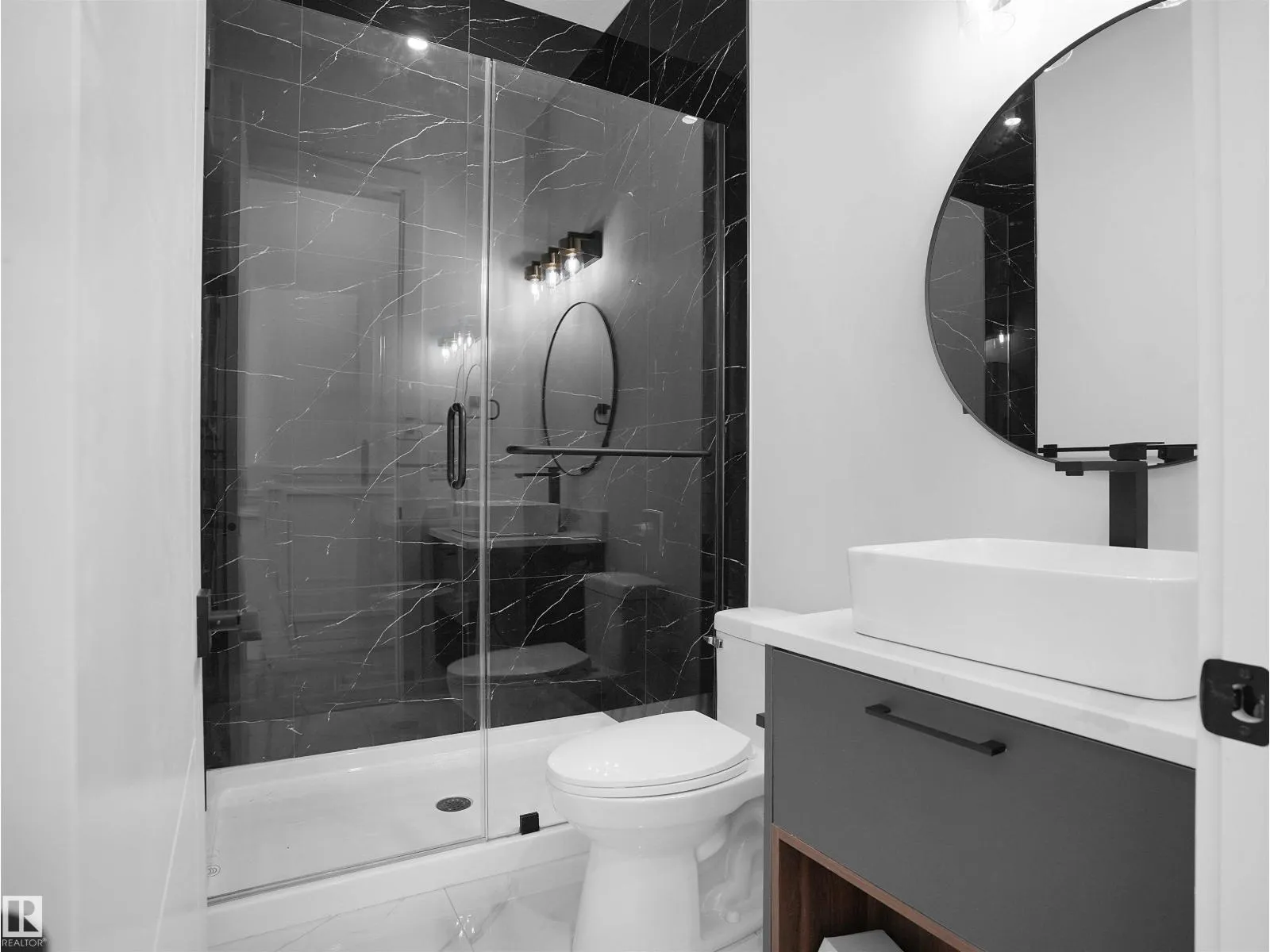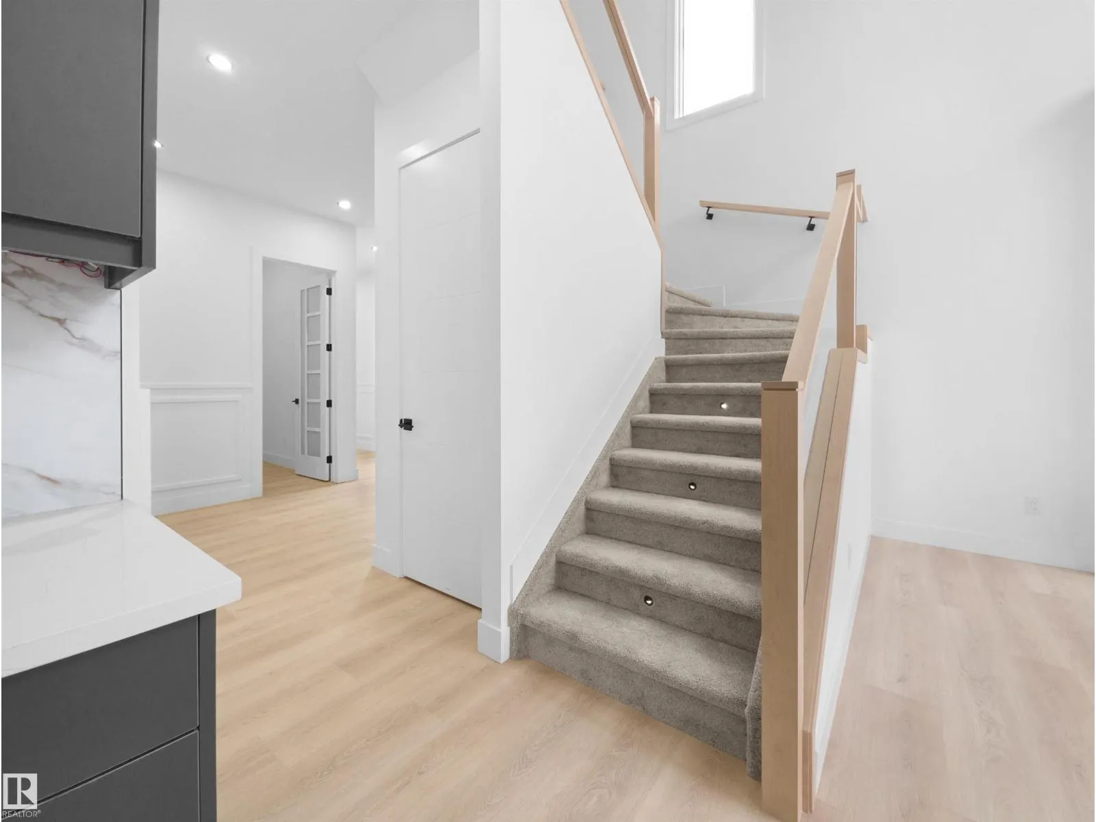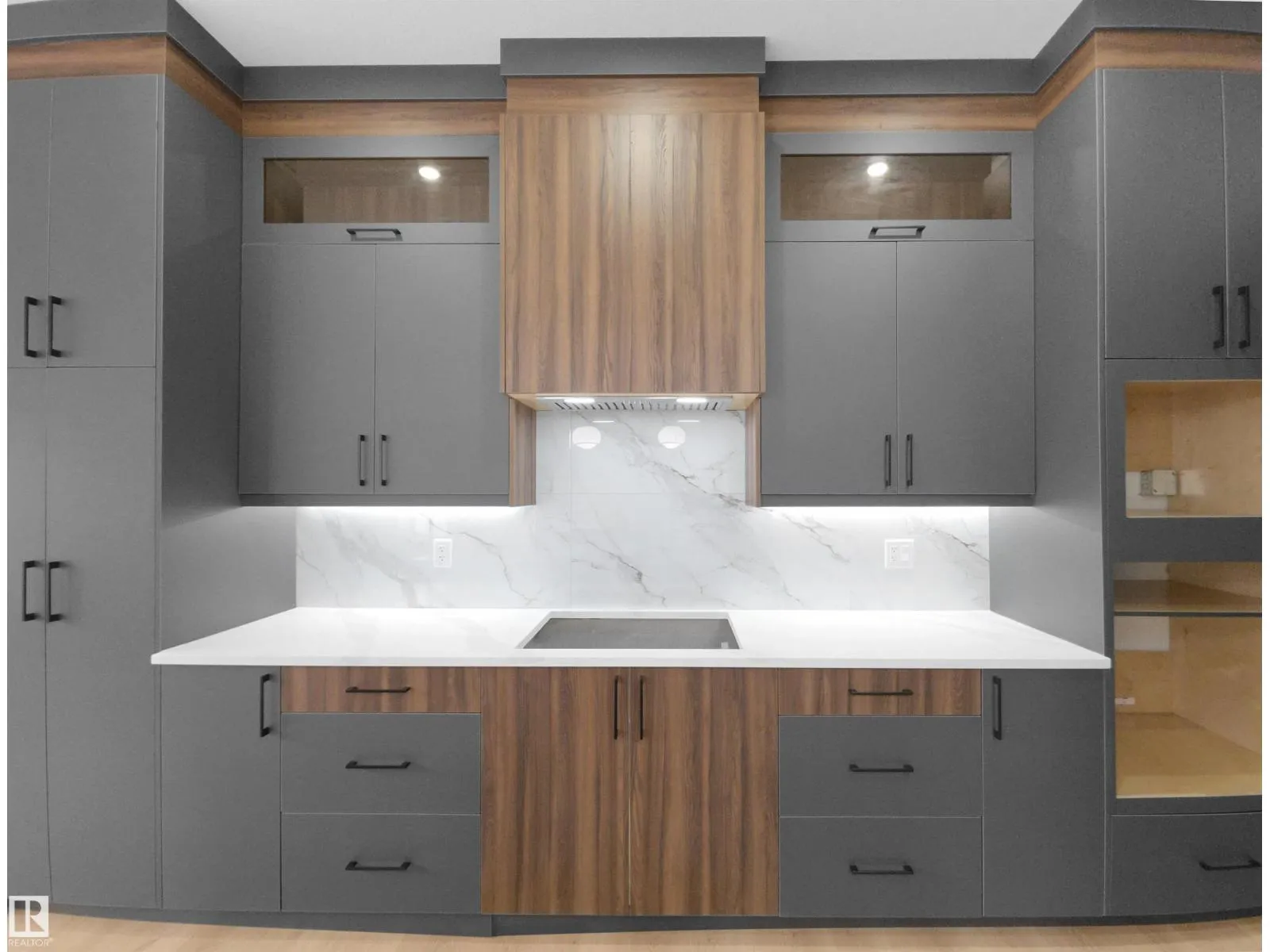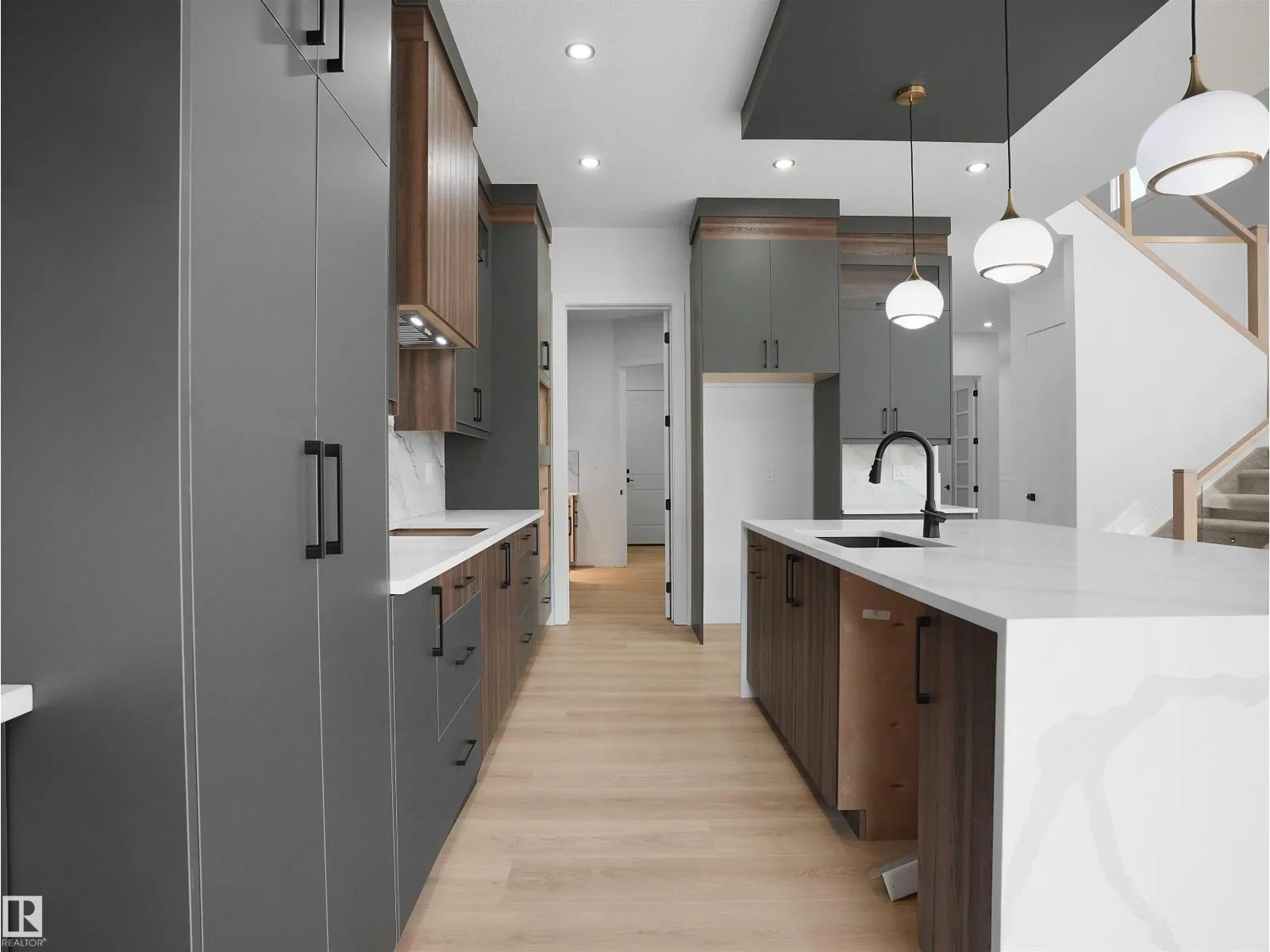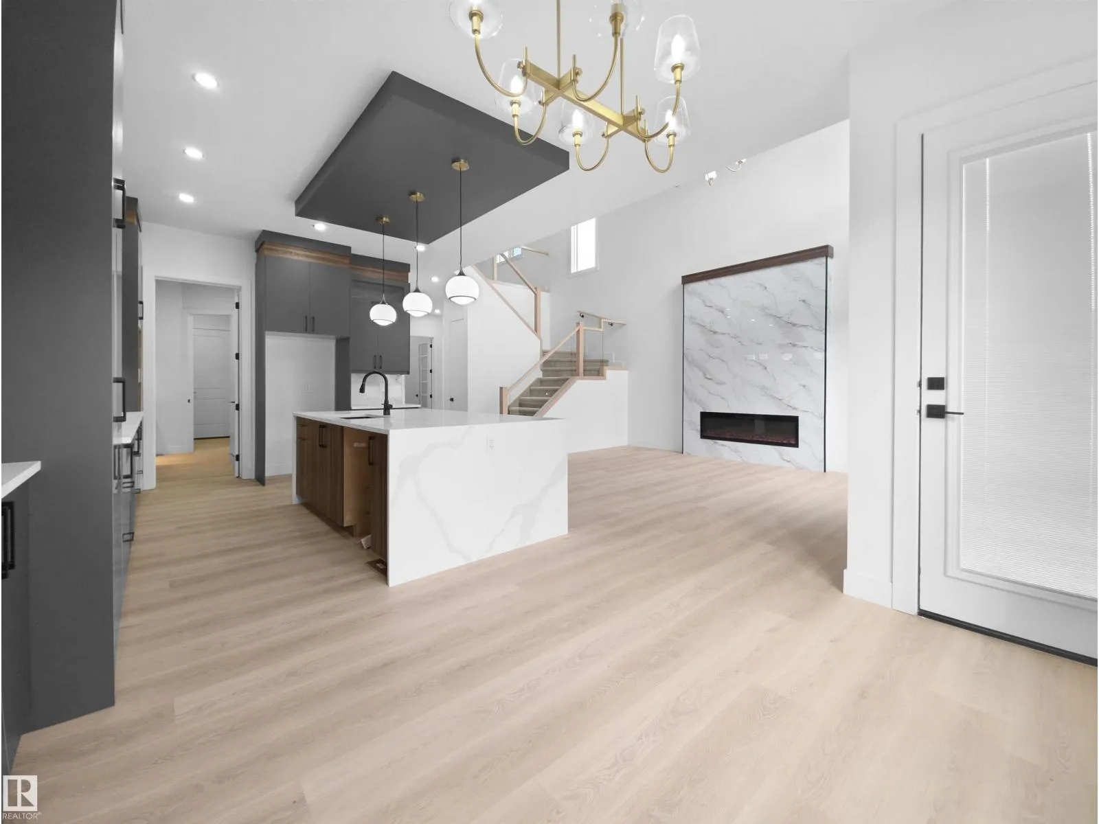 Welcome to this elegant 2680 Sq ft. 5 rooms, 4-bath custom home, in Hawks Ridge, a community surrounded by scenic walking trails, ponds & preserved natural beauty and its nestled beside Big Lake & Lois Hole Provincial Park. The main level features a DEN with full 3-pc bath, a dramatic open-to-above living room, a spice kitchen, a chef-inspired extended kitchen with spacious dining area, 10â ceilings throughout and a mudroom with access to the double attached garage. Upstairs offers 4 bedrooms, 3 full bathrooms, a bonus room, and laundry room with Quartz Counter and cabinetry. Thoughtfully upgraded with BUILT-IN APPLIANCES, BLINDS, MDF SHELVING, 8â DOORS, upgraded light fixtures including chandelier, feature walls, black hardware, QUARTZ COUNTERTOPS WITH WATERFALL KITCHEN ISLAND and more. A side entrance to the basement provides excellent future suite potential. (id:27476)