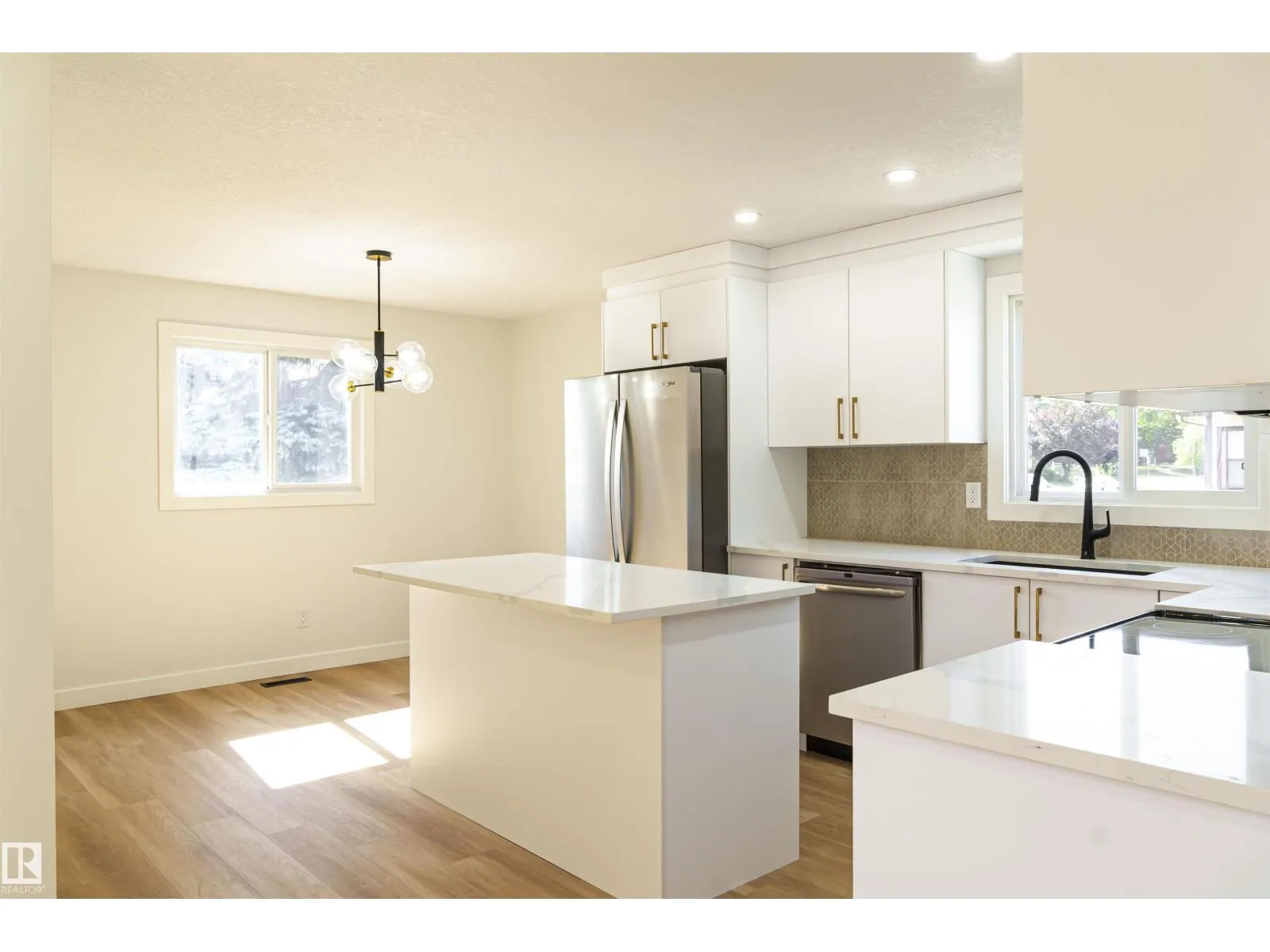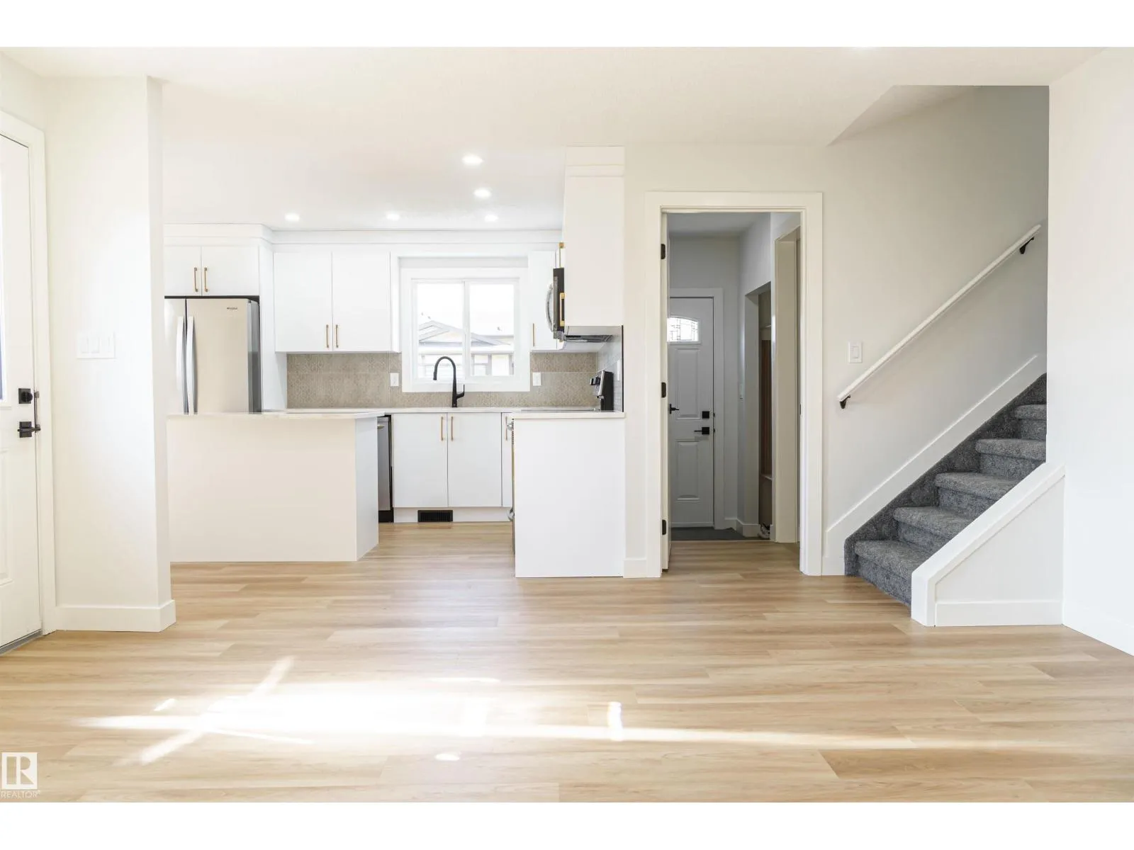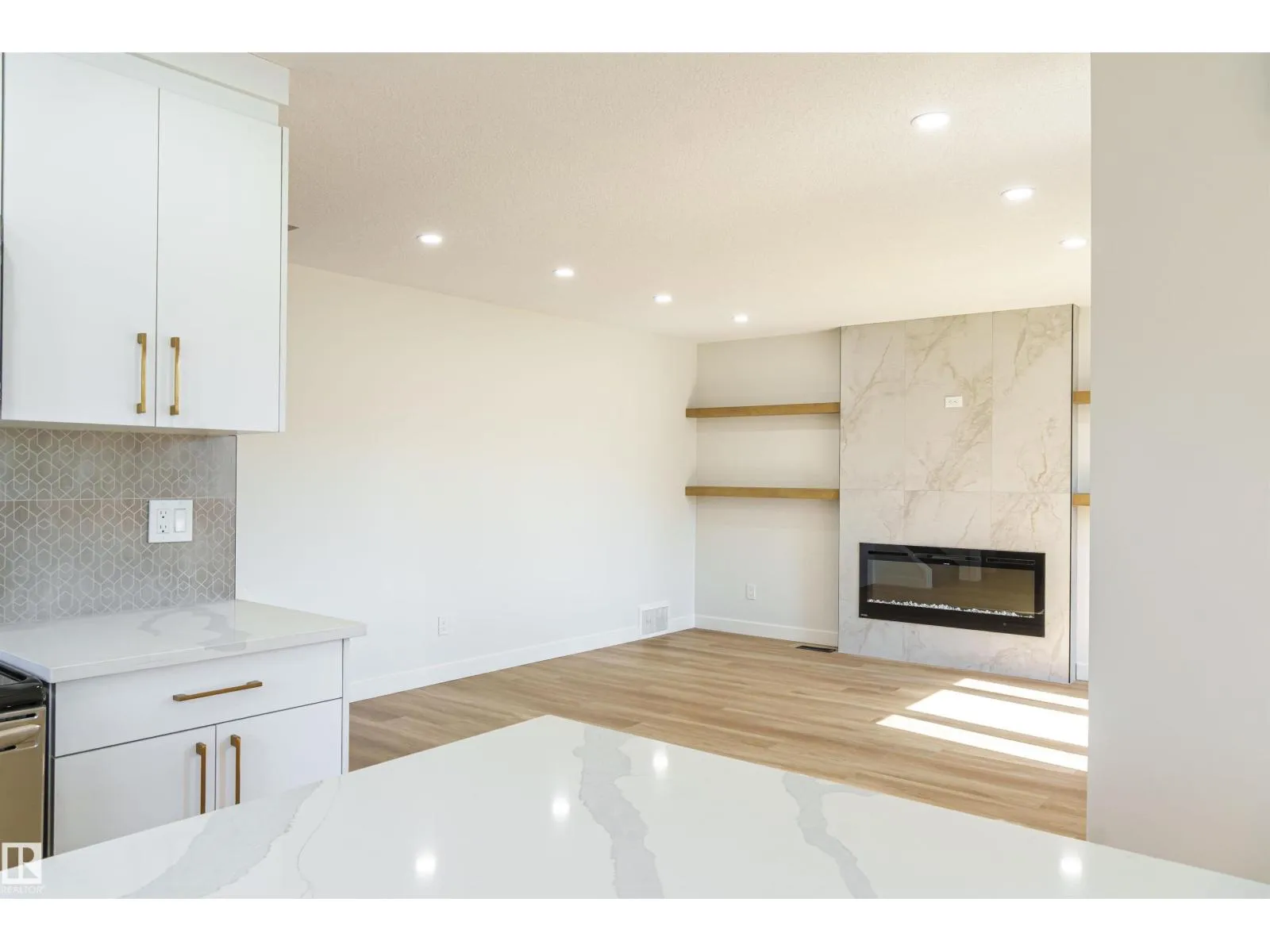Fully renovated 4-level split corner unit in the Mature neighbourhood of Kiniski Gardens! This 5-bed, 2.5-bath home offers over 1,900 sq ft of modern living space. Upgrades include shingles (2024), newer vinyl windows (last 5 yrs), high-efficiency furnace (2025), and hot water tank (2025). The chefâs kitchen features quartz countertops, custom cabinetry, and stainless steel appliances. Bright main floor with tiled electric fireplace, premium vinyl plank flooring, and plush carpet throughout. Upstairs includes 3 bedroomsâprimary with 2-pc ensuiteâand a fully renovated 4-pc bath. The finished basement with a Separate Entrance offers 2 more bedrooms, another 4-pc bath, and a spacious rec room with plumbing and electrical rough-ins. Pot lights throughout, brand-new doors, casings, Zebra Shades, and hardware. Oversized double garage with plenty of room for storage and projects (id:27476)