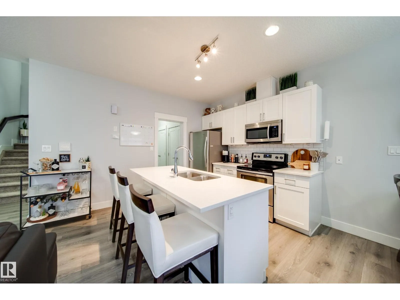 This meticulously maintained home in a PRIME SW location greets you w/soaring 9â ceilings & a BRIGHT open layout perfect for modern living. The great rm flows into a stylish kitchen w/QUARTZ counters, S.S appliances, ample cabinetry & WALK-IN pantry. A mudroom, extra storage & stylish 2pc bath complete the main floor. Upstairs, the grand OPEN-TO-ABOVE stairway leads to a spacious 2nd level w/3 generous bedrms, a full 4pc bath, & a convenient walk-in laundry rm. The impressive primary retreat features a walk-in closet & elegant 4pc ensuite w/quartz counters & tile flooring. An unfinished bsmnt awaits your personal touch & provides endless potential for future development - gym, rec rm or play space! Enjoy a SE-facing rear deck, OVERSIZED double attached garage, AC, plus low maintenance living w/landscaping & snow removal INCLUDED for year round comfort. LOW condo fees & unbeatable access to Windermere/Keswick amenities, top schools, ponds, trails, parks & Henday. Fully move-in ready, this is a must see! (id:27476)