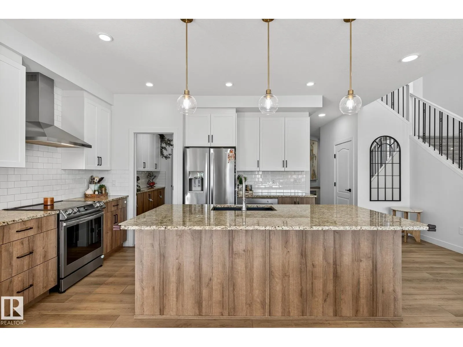 STUNNING EXECUTIVE WALKOUT! Perfectly positioned in prestigious Klarvatten, this spectacular 2-storey with a LEGAL SUITE exudes modern elegance & exceptional craftsmanship. Designed for luxury living, it features rich flooring, A/C, duel furnace, designer lighting & a stunning custom floor plan with architectural details. The chefâs kitchen is a dreamâpremium 2-tone cabinetry, quartz counters, butlerâs pantry, island, breakfast bar, & top-of-the-line appliances. The open dining area leads to a massive deck with scenic walking trails, while the great room impresses with large windows & a sleek linear fireplace. A versatile office/bedroom, elegant bath, & custom mudroom complete the main level. Upstairs offers a stylish bonus room, laundry, & 3 bedrooms including a serene primary suite & spa-inspired ensuite. The bright, luxury legal suite below features a modern white kitchen, quartz counters, w/out patio to a SOUTH backyard. HEATED o/s garage, huge driveway & pristine landscapingâTRULY A TURN KEY HOME! (id:27476)