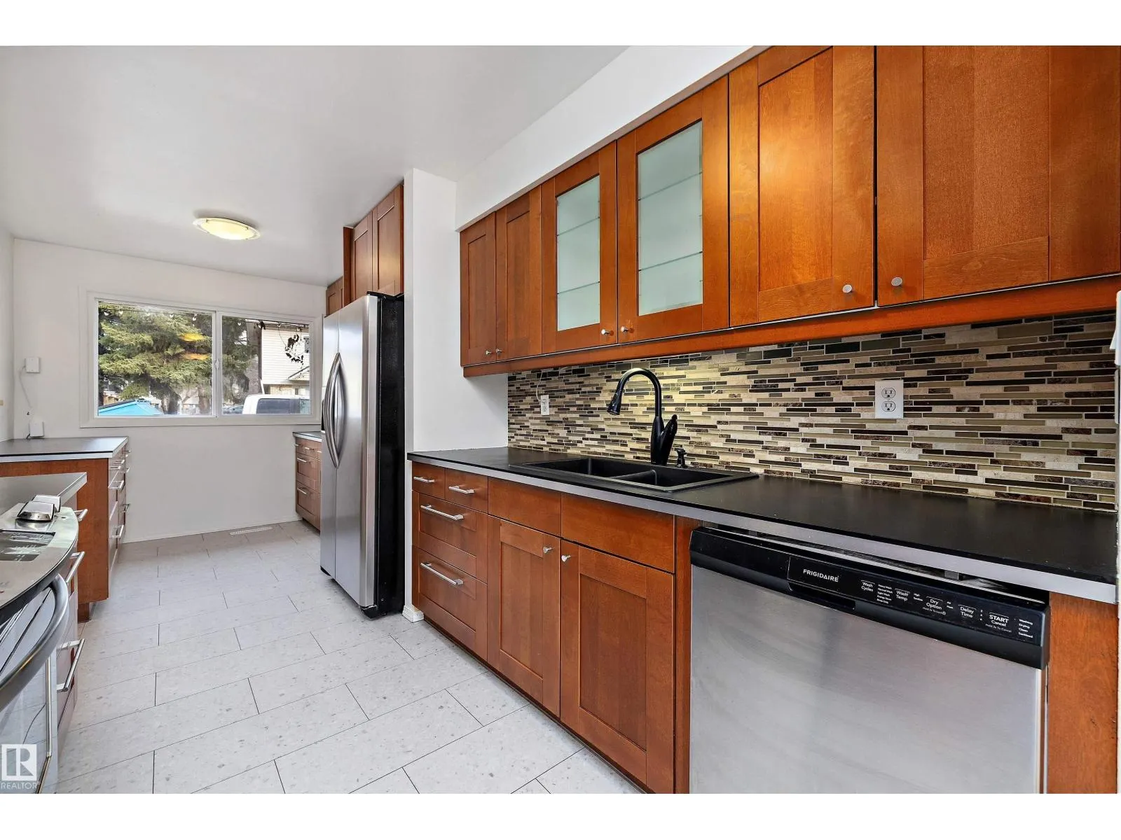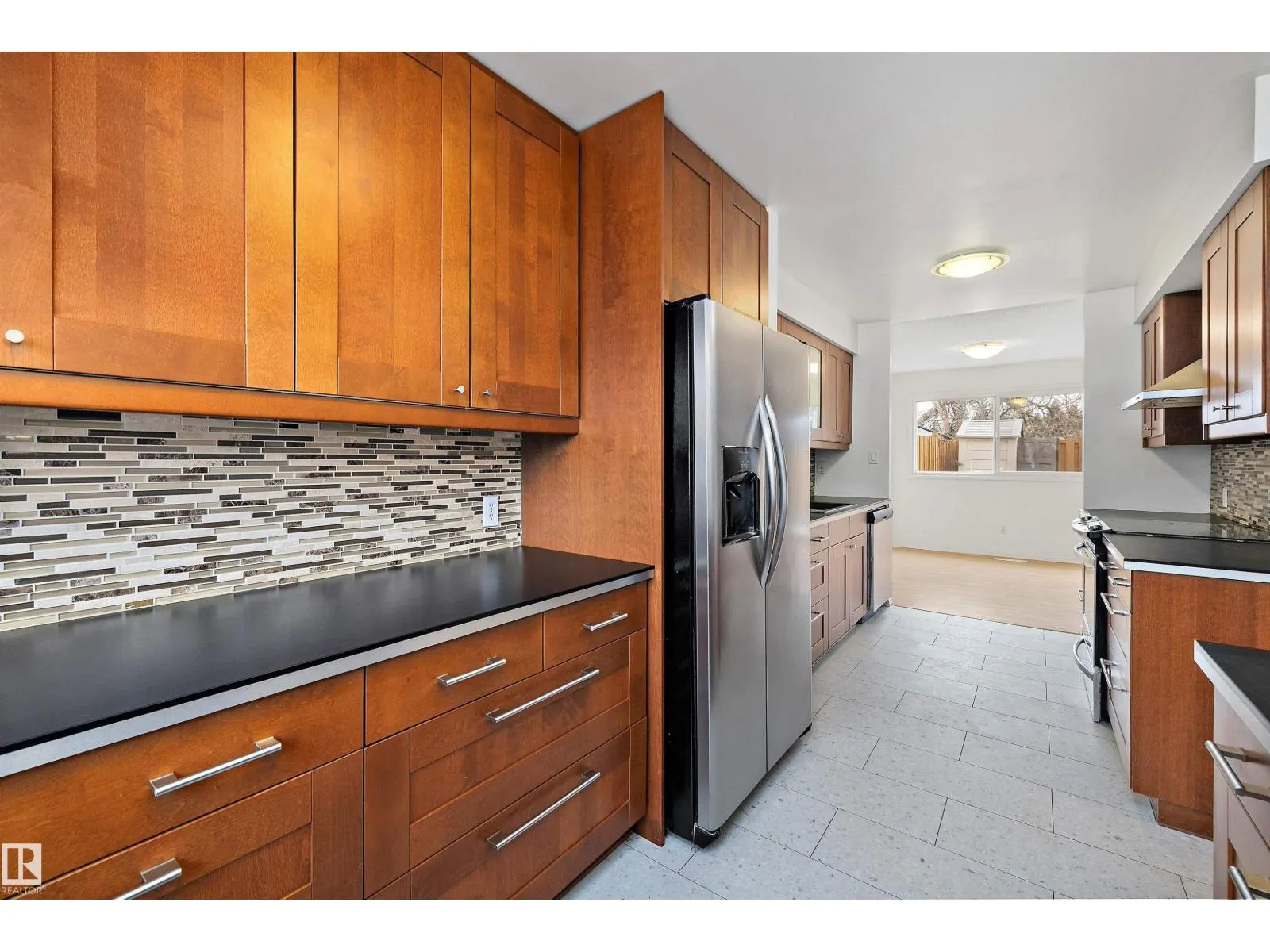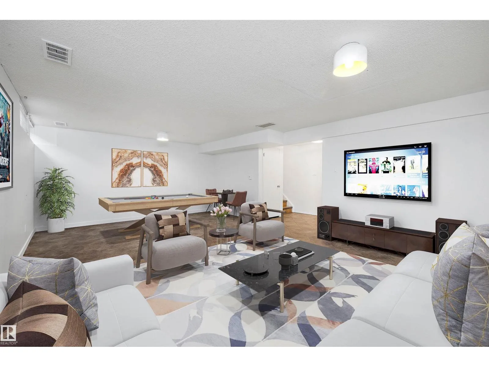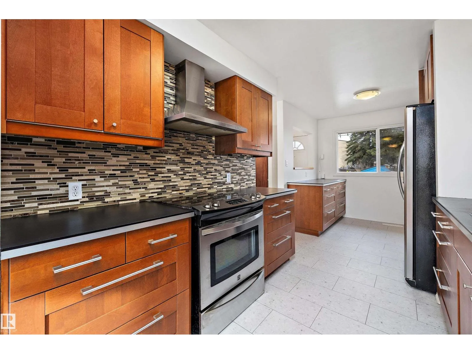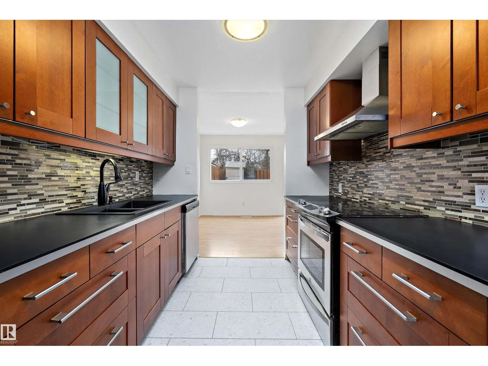 Spacious and updated 3 bedroom townhouse in amazing location near some of the best schools in Edmonton. BACKS GREEN SPACE AND TREES with large fully fenced yard with brand new concrete patio. Stunning RENOVATED KITCHEN with tons of cabinets and counter space, new tile flooring and s/s appliances. FRESHLY PAINTED with new light fixtures and features beautiful built-in closets in all of the big bedrooms and front entrance. Huge living and dining room which overlooks the backyard with no neighbors behind. 3 bedrooms upstairs, 2 of which have views of nature along with a renovated 5 piece bath. FINISHED BASEMENT includes a massive rec room with tile flooring and 2 windows (could separate and make 2 more bedrooms). Tons of basement storage as well. Almost 2000 sq ft of livable space! New front landscaping and has one triple tandem parking stall. Incredible southside location steps to the Whitemud Creek, Snow Valley, trails, Westbrook and Vernon Barford, and a short drive to the U of A and Southgate Mall/LRT (id:27476)