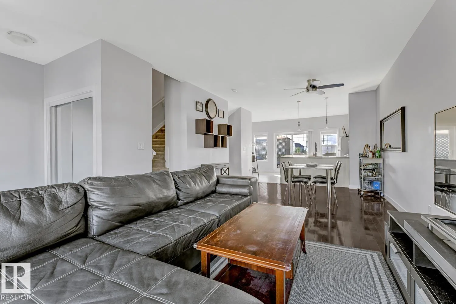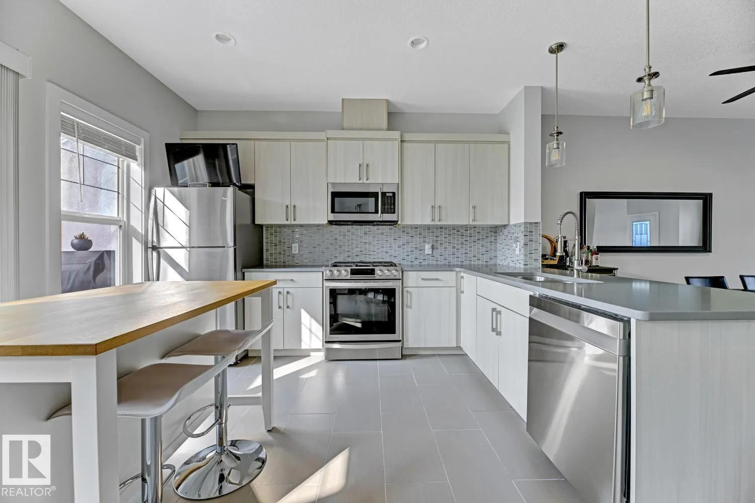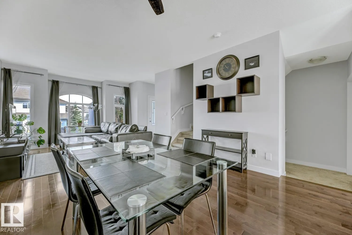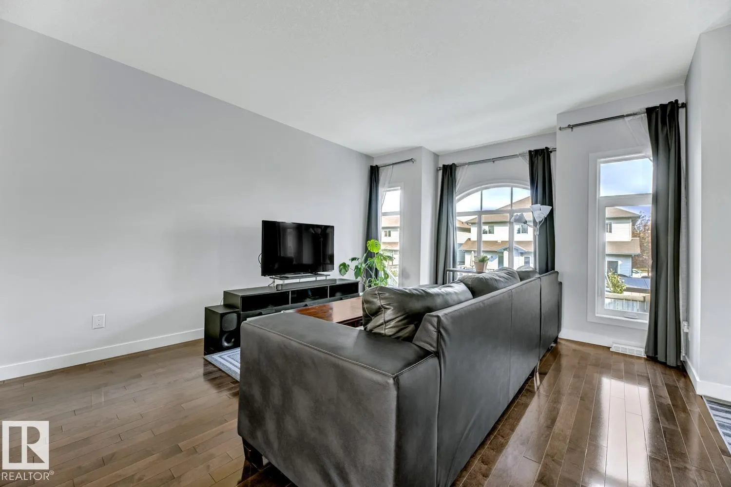 Welcome to Regency at Windermere, located in one of Edmontonâs most prestigious neighbourhoods. This stunning 4-bedroom, 3.5-bath townhouse features hardwood and tile flooring, quartz countertops, and stainless steel appliances. The open-concept main level offers a bright kitchen, dining, and living area with large windows and a balcony, plus a convenient 2 pc bath. Upstairs, youâll find 2 spacious bedrooms, a 4 pc bath, laundry, and a primary suite with a walk-in closet and a 4 pc ensuite. The fully finished basement adds a recreation room and 3 pc bath, perfect for hosting friends and family. Enjoy the comfort of a double attached garage and thoughtful design throughout this elegant home. (id:27476)