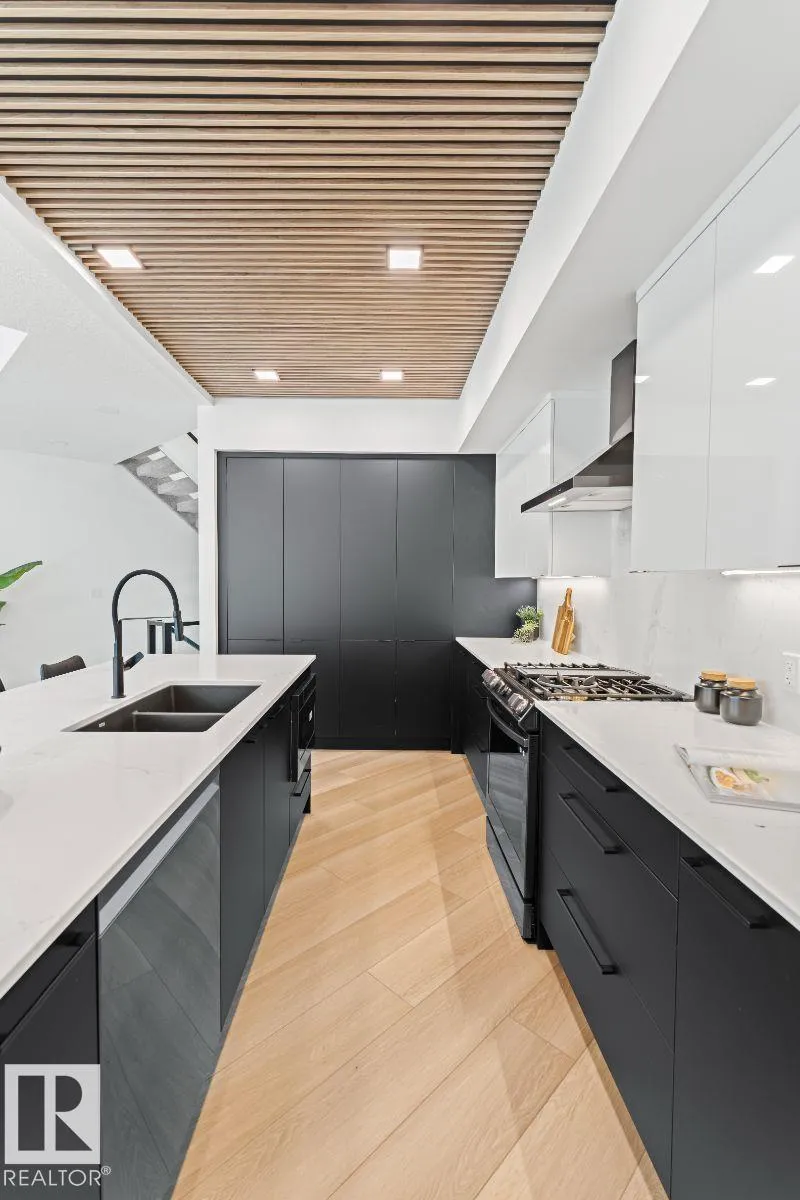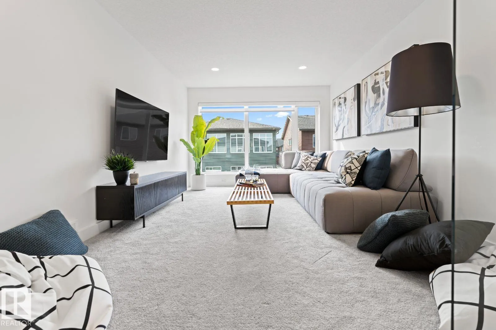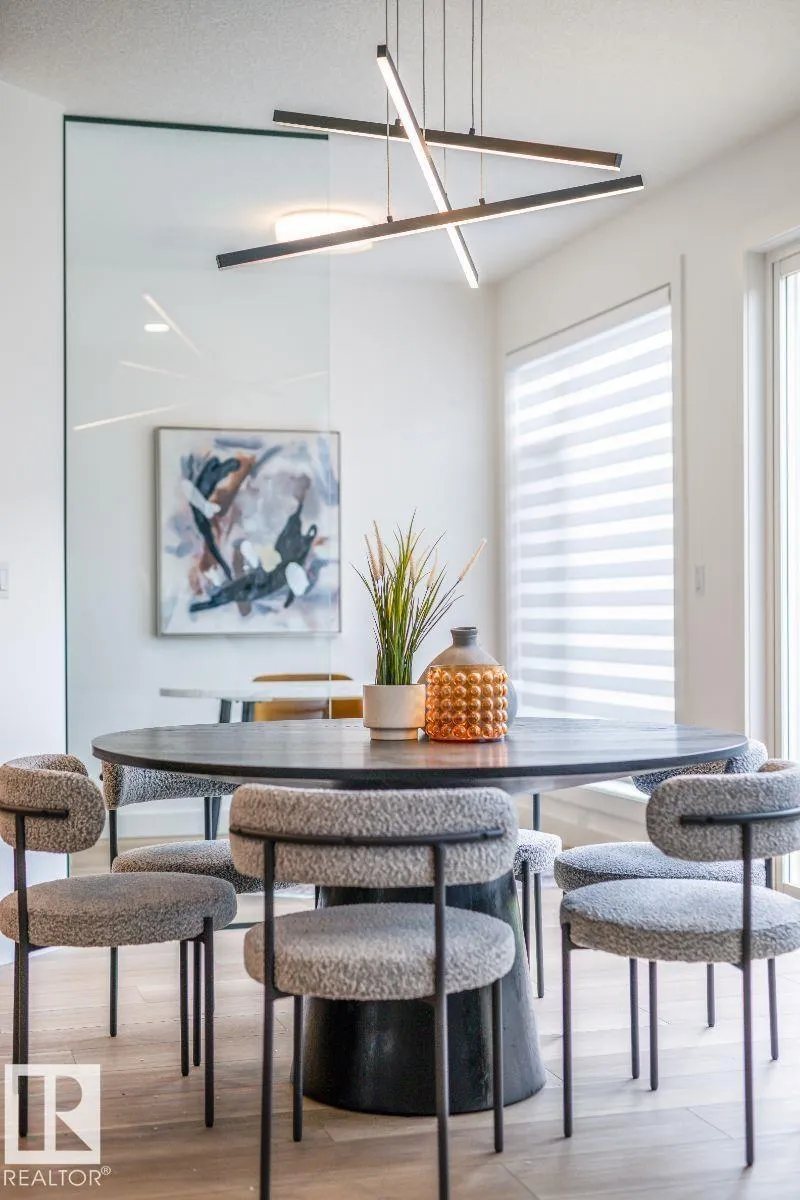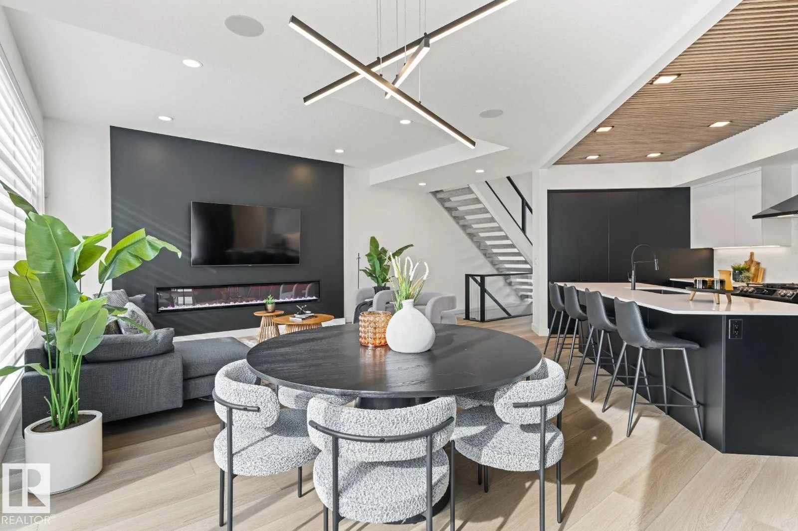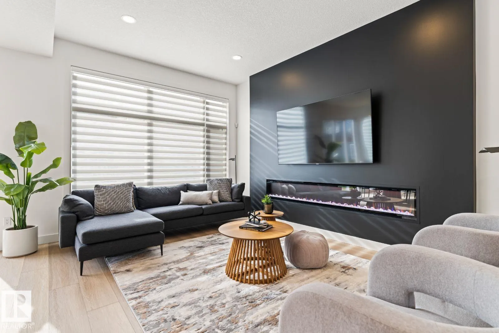 Award winning builder, Kanvi Homes, presents The Ethos32 showhome! This innovative streetscape design is unparalleled to those in the surrounding neighbourhood. The bright, oversized windows throughout floods the home in natural light in every space. The unique angle kitchen design is a standout focal in this home; framed in sleek black matte cabinetry, incredible black stainless appliances and a striking wood slat feature on the ceiling. Featuring 3 bedrooms, 2.5 baths, a main floor den and fully equipped with 100â Napoleon fireplace, washer/dryer, central air, window treatments and a professionally landscaped yard and fencing. Visit the Listing Brokerage (and/or listing REALTOR®) website to obtain additional information. (id:27476)