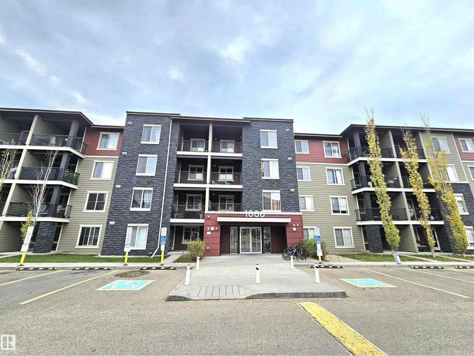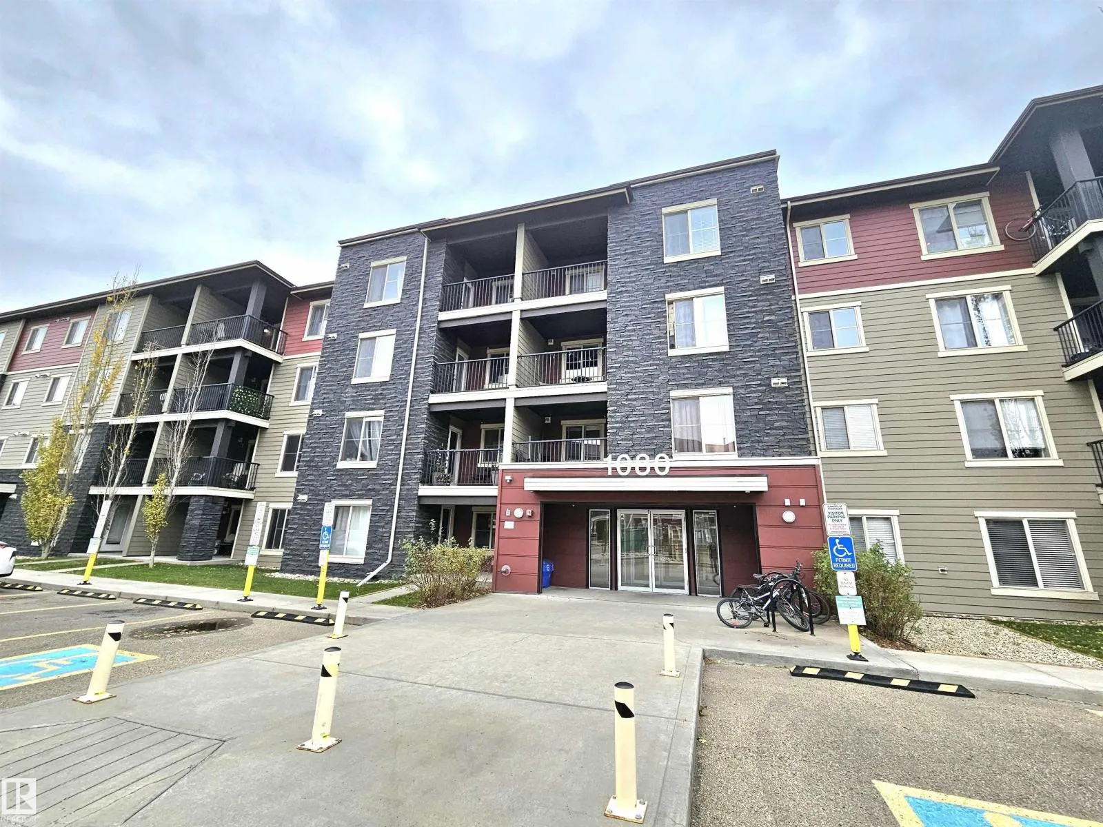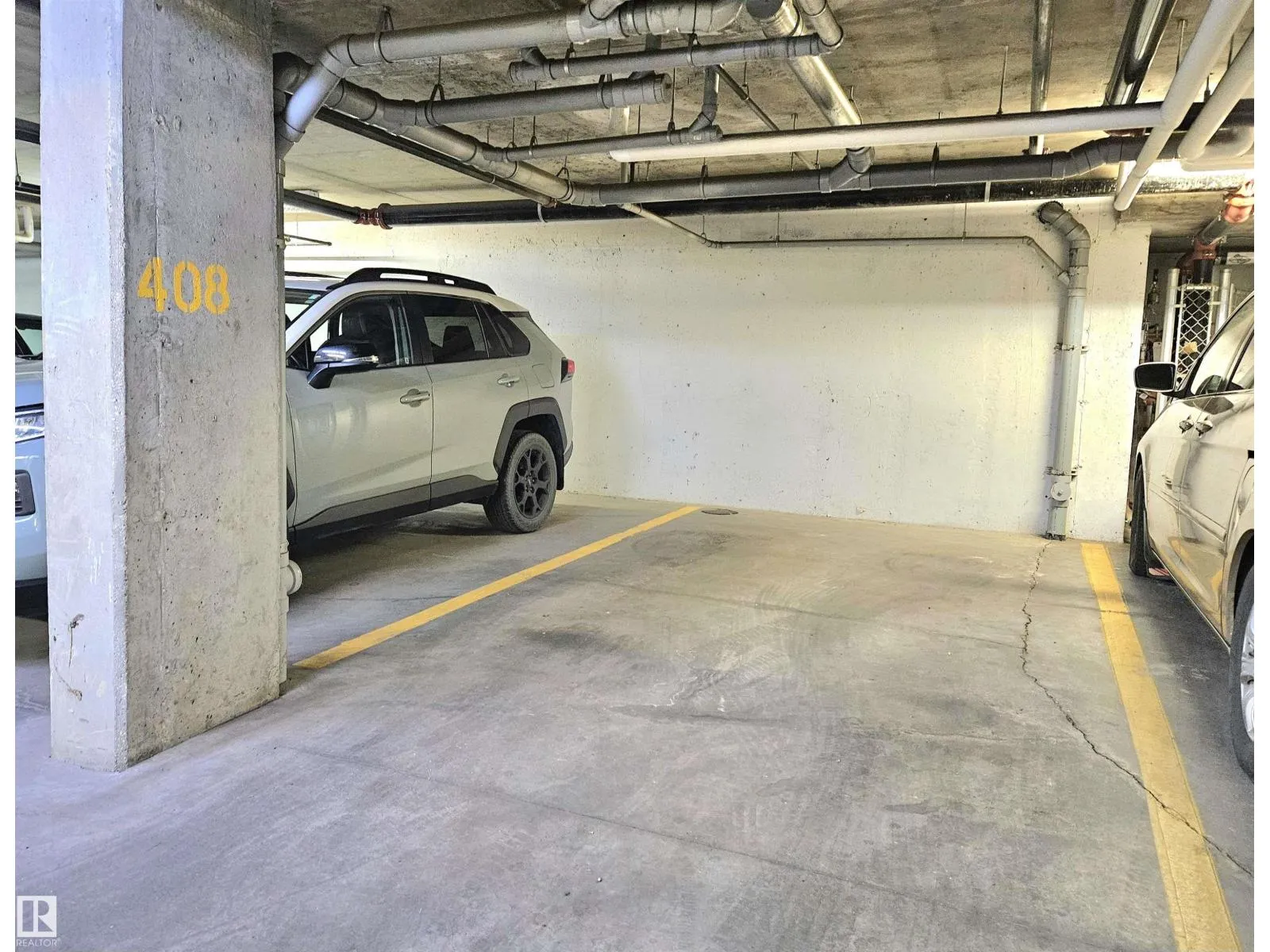 Beautiful and spacious move-in ready with IMMEDIATE POSSESSION 847 sq. ft. 2 bedrooms plus DEN, 2 baths, and 2 titled parking stalls (one underground and one surface parking) top floor condo unit in Elements At McConachie. This lovely unit has contemporary color tones newly painted 5 years ago. Large and bright living room has big window and access to the Southeast facing balcony. Beautiful kitchen has granite countertops, extended breakfast bar, tiled backsplash, stainless steel appliances, and laminate flooring. Spacious dining area. Good size bedrooms. Primary bedroom has walk-through closet and 3 pcs. ensuite. The second bedroom has adjacent 4 pcs. main bath. A good size den offers much versatility. Convenient insuite laundry with newer washer. Two titled parking stalls. The underground parking stall is conveniently located just steps to the elevator. Close to all amenities and quick access to Anthony Henday. (id:27476)
