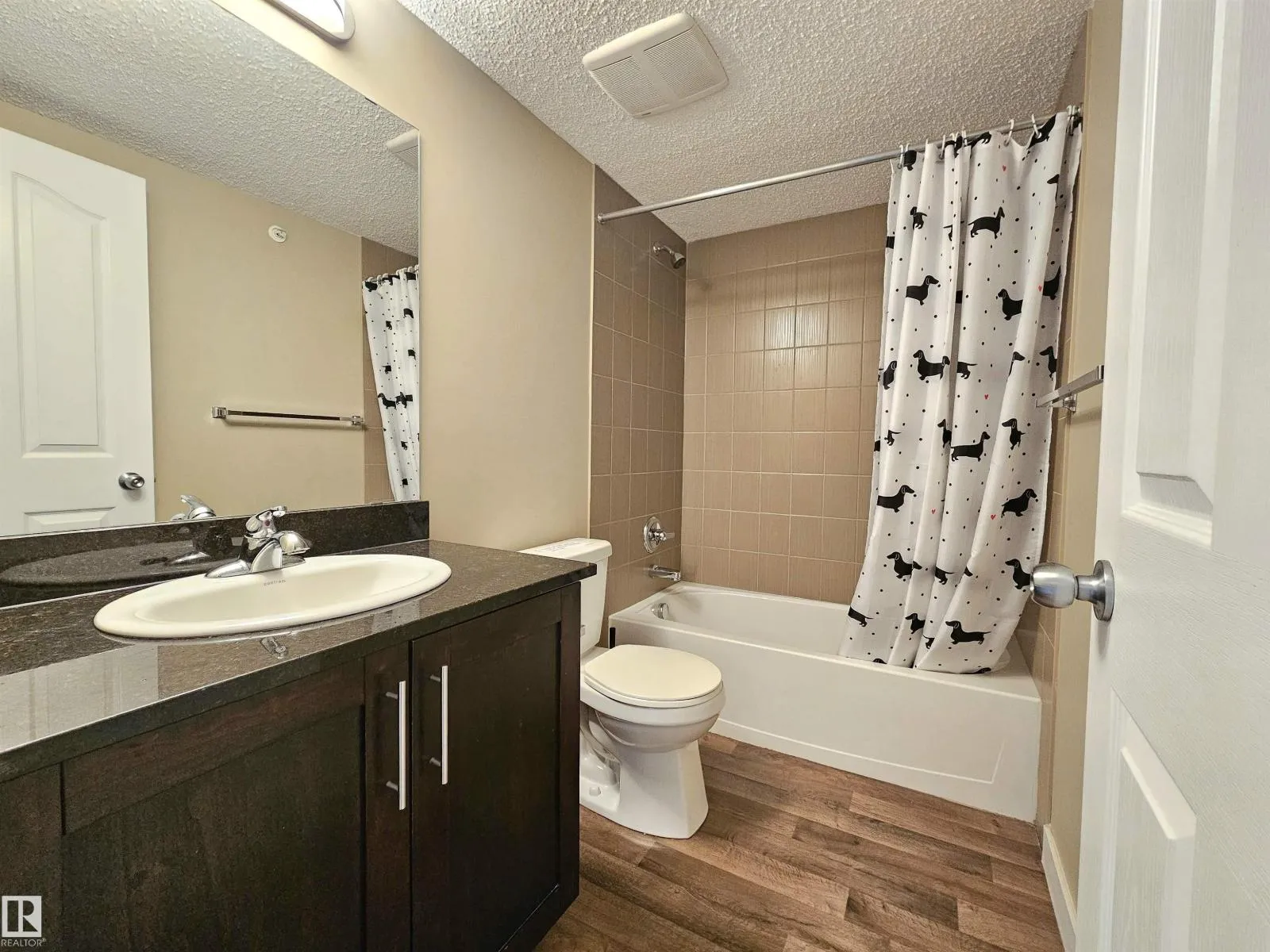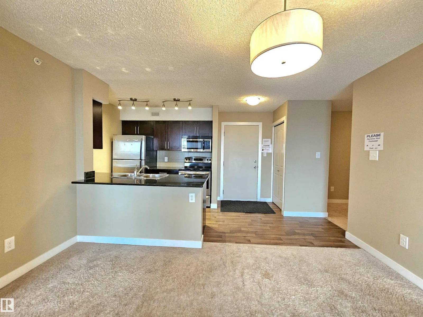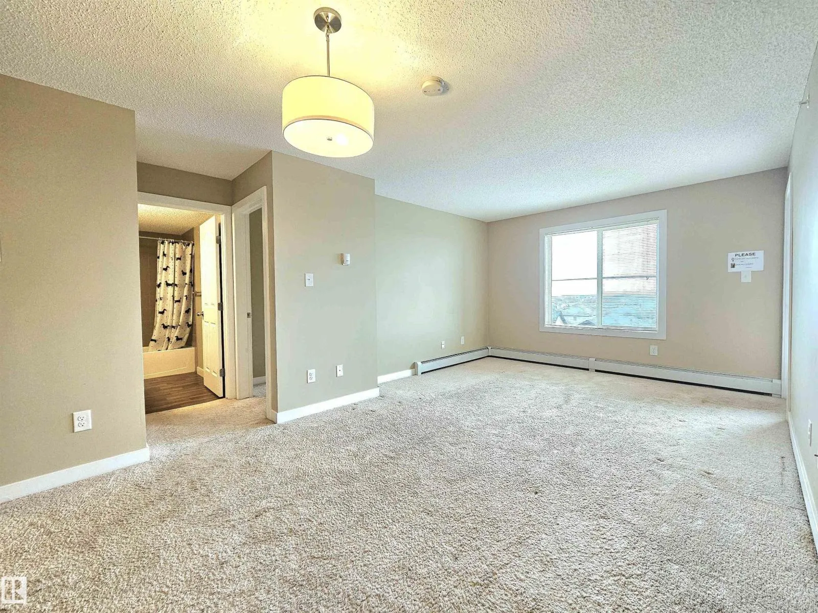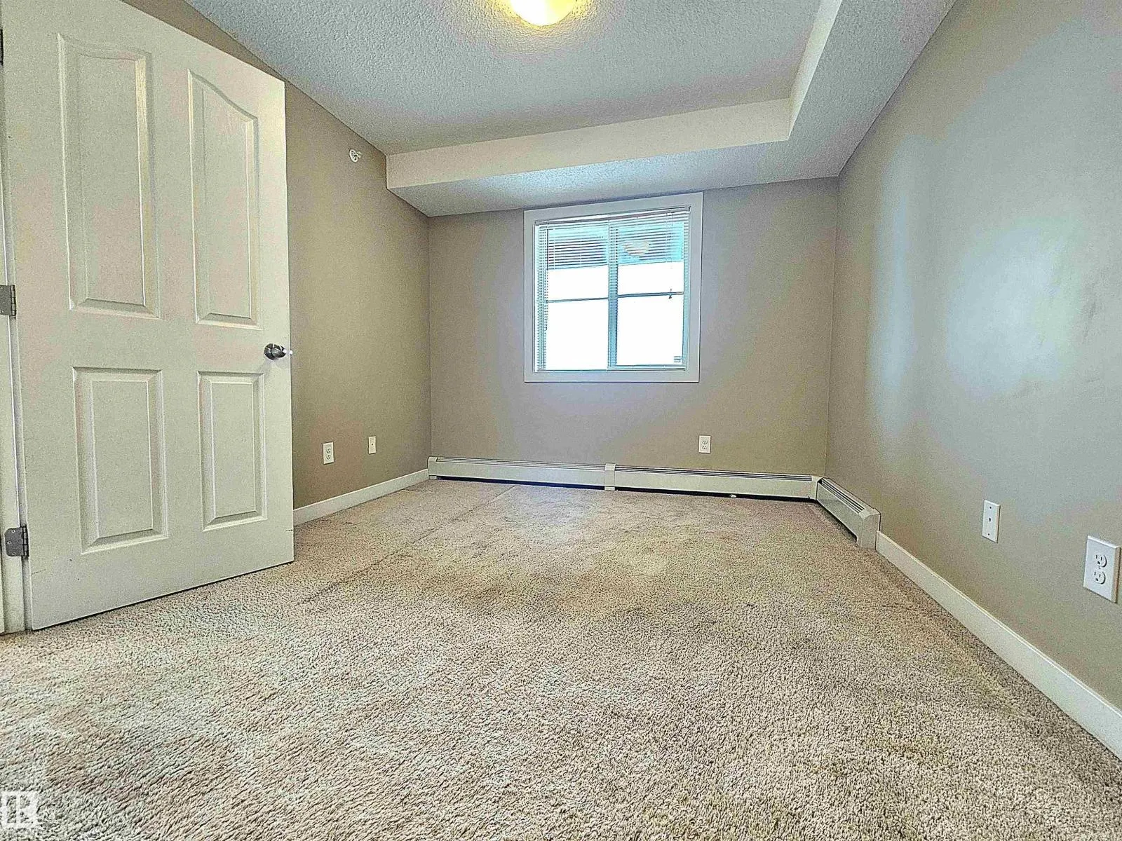 Beautiful and spacious move-in ready with IMMEDIATE POSSESSION 847 sq. ft. 2 bedrooms plus DEN, 2 baths, and 2 titled parking stalls (one underground and one surface parking) top floor condo unit in Elements At McConachie. This lovely unit has contemporary color tones newly painted 5 years ago. Large and bright living room has big window and access to the Southeast facing balcony. Beautiful kitchen has granite countertops, extended breakfast bar, tiled backsplash, stainless steel appliances, and laminate flooring. Spacious dining area. Good size bedrooms. Primary bedroom has walk-through closet and 3 pcs. ensuite. The second bedroom has adjacent 4 pcs. main bath. A good size den offers much versatility. Convenient insuite laundry with newer washer. Two titled parking stalls. The underground parking stall is conveniently located just steps to the elevator. Close to all amenities and quick access to Anthony Henday. (id:27476)