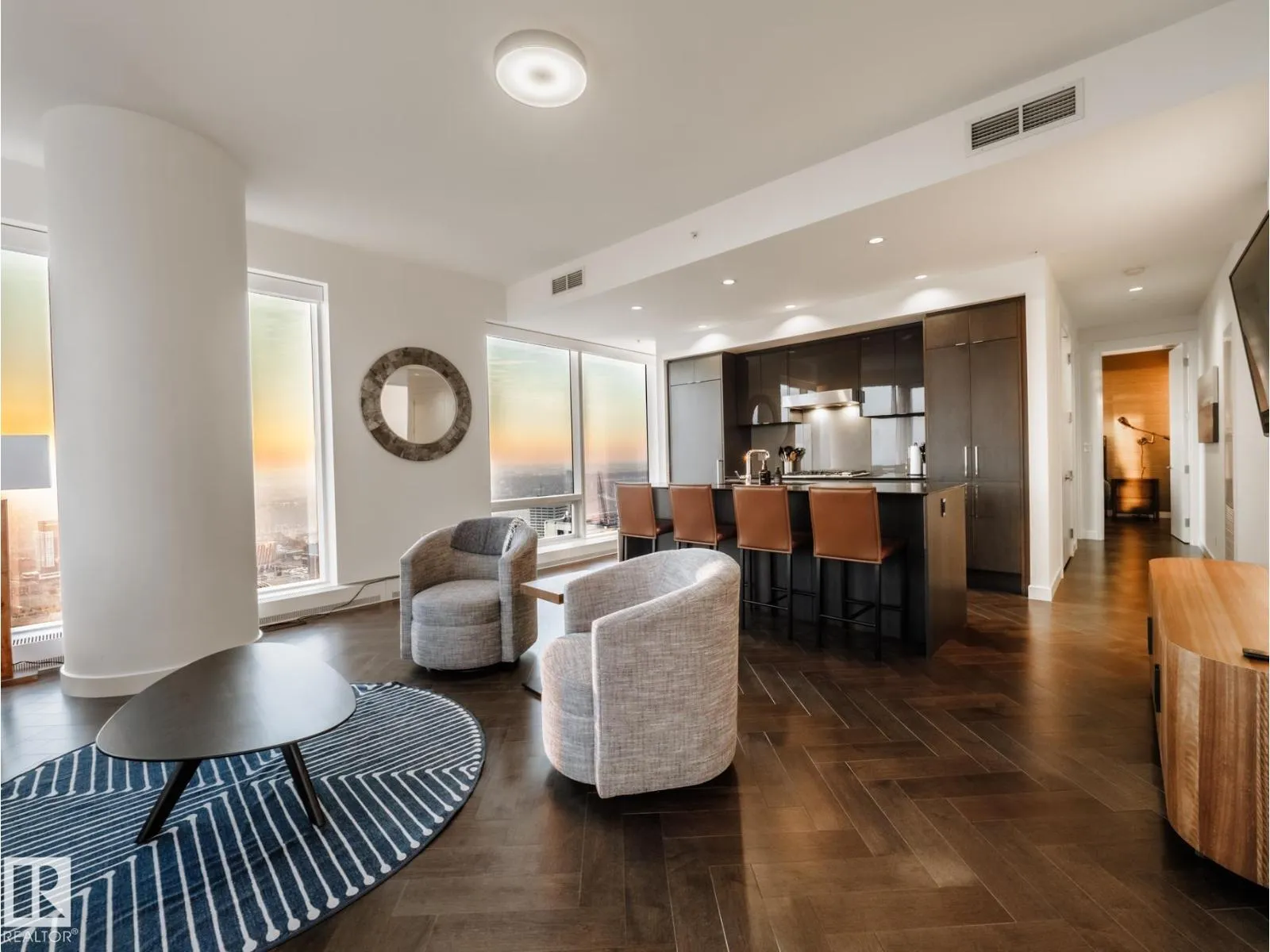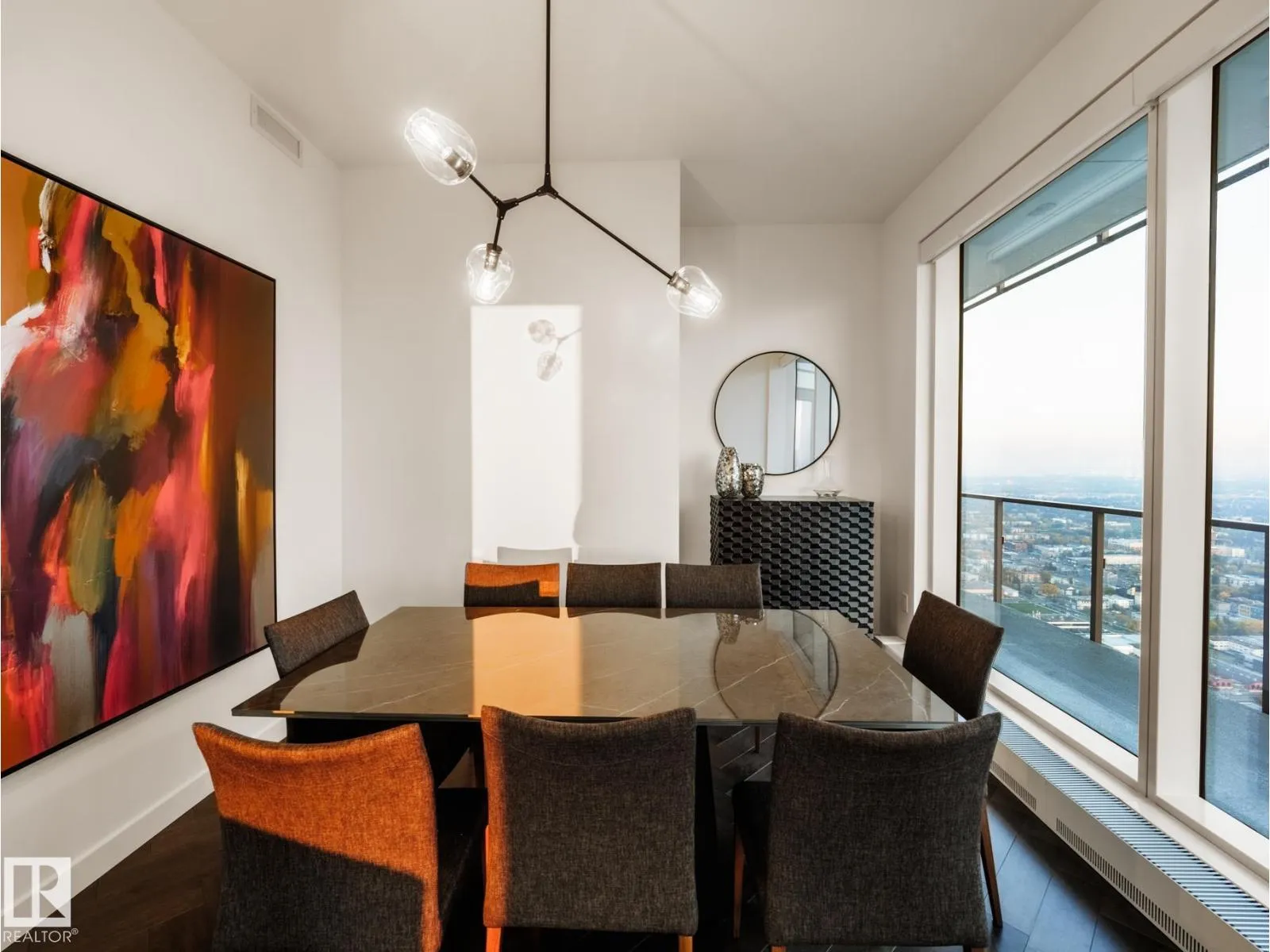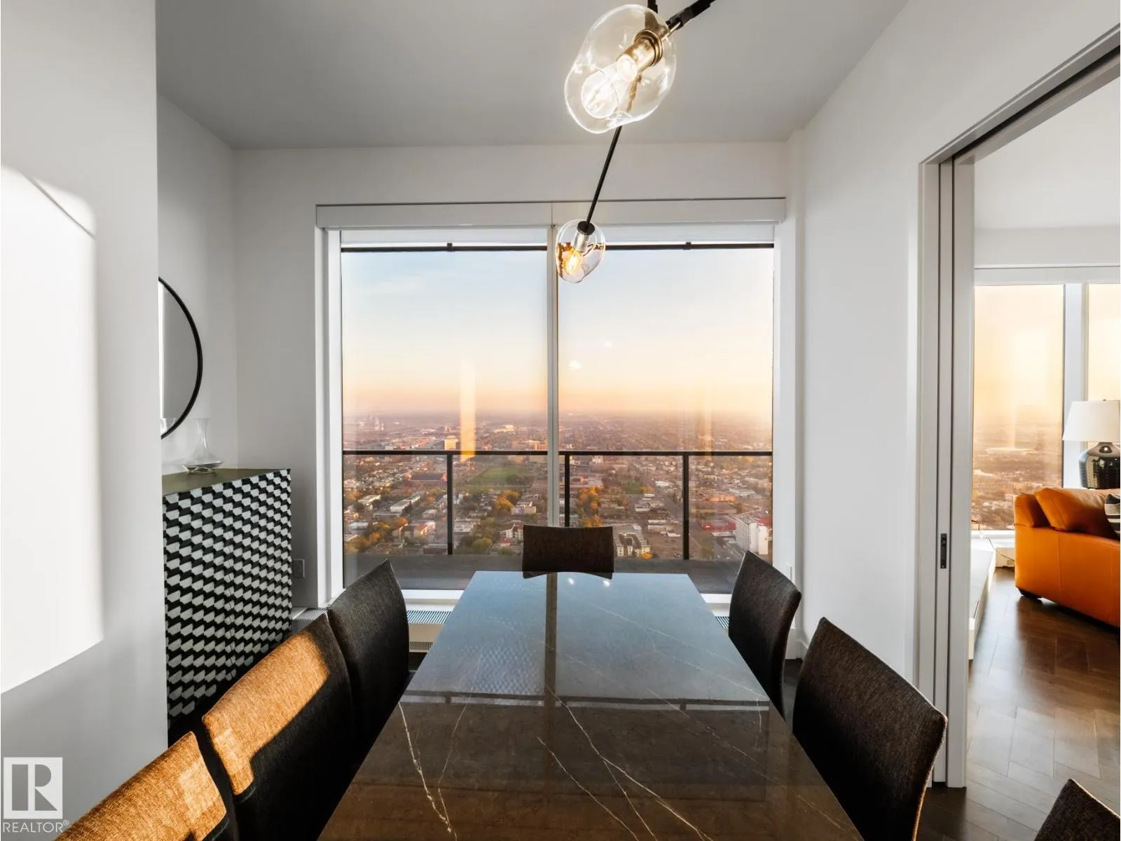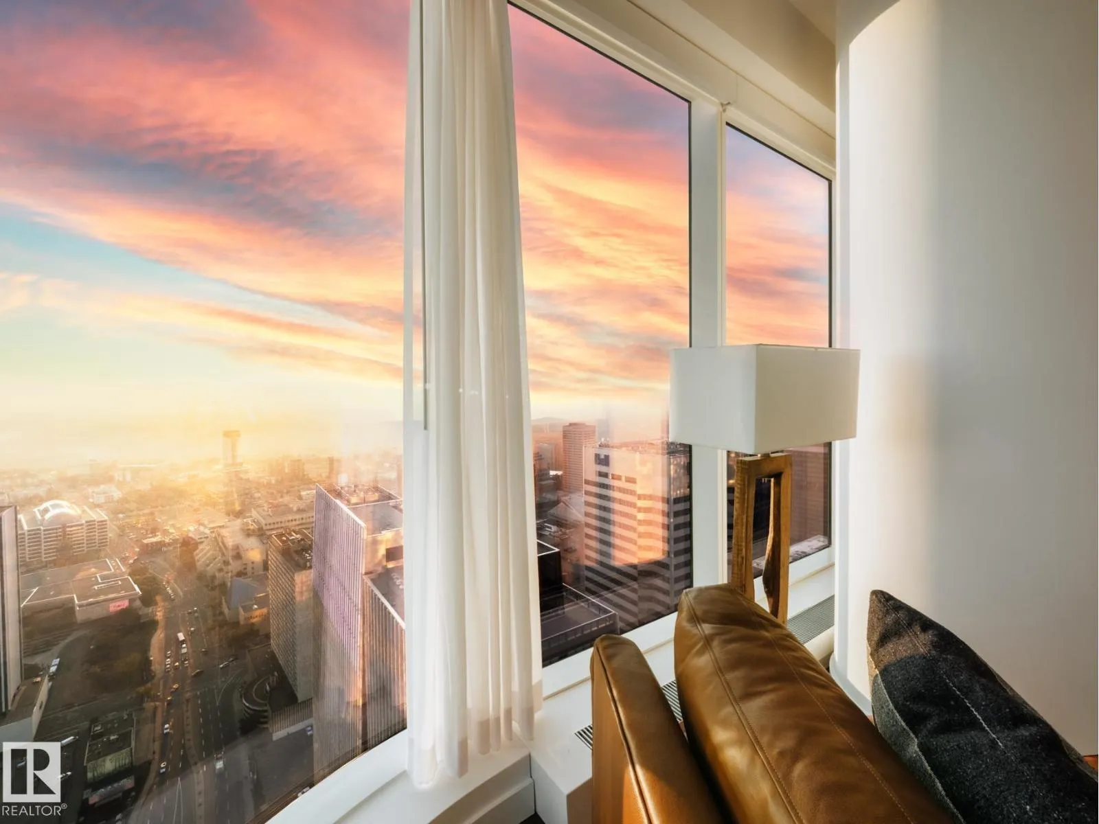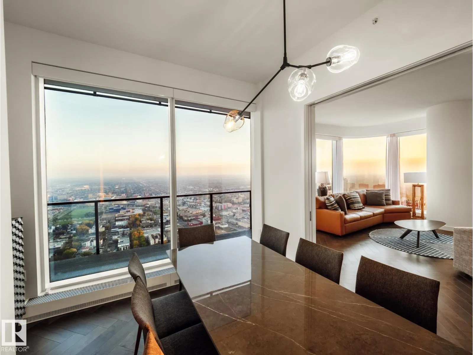 EXCLUSIVE 44TH FLOOR SUITE BOASTING PREMIUM DESIGNER FINISHES....SPECTACULAR PANORAMIC VIEWS....ARCHITECTURAL PERFECTION....HERRINGBONE LAID HARDWOOD FLOORS....WHEN NOTHING BUT THE BEST WILL DO...~!WELCOME HOME!~ First steps into your new LIFESTYLE; perfect foyer leads towards the HEART of the condo. Spectacular kitchen, high end appliances w/ built in wine fridge, and a warm modern flavour. CURTAIN WALL GLASS is everywhere * custom powered window treatments lets you decide on the birds eye city view or opulence exuding inside the unit! The living space falls nothing short of spectacular. The north wing has a dining room w/ views for days. Den/flex room on east side separates the primary bedroom; and yes it has a large walk through closet and proper spa/ensuite. What could be a third bedroom is on the west side of the unit( also well appointed!) all perched on top of the ice district, JW MARRIOT, comes w/ concierge, access to pool & ARCHETYPE gym, dinning, shopping & more. Second parking stall optional* (id:27476)