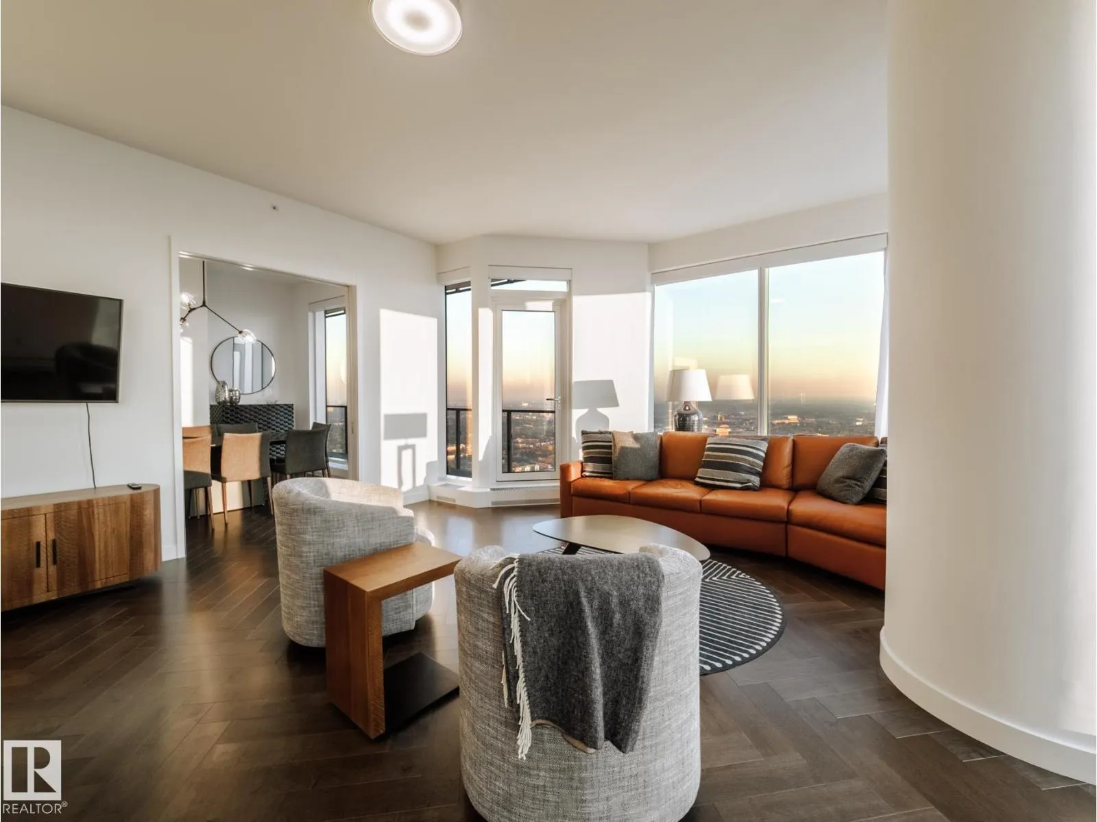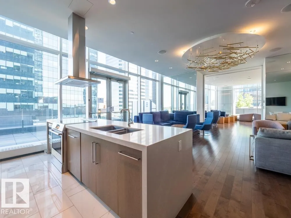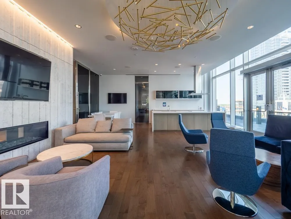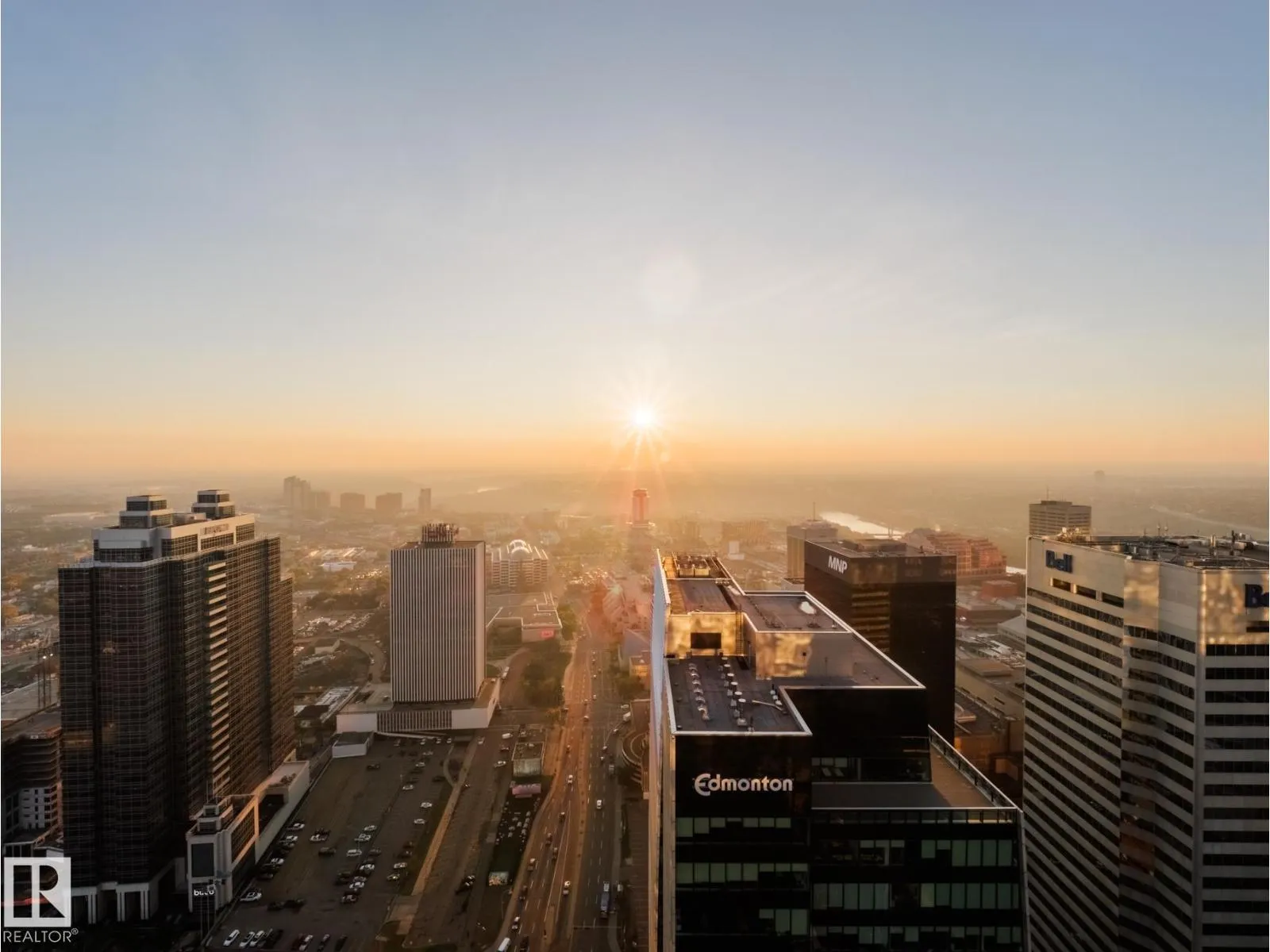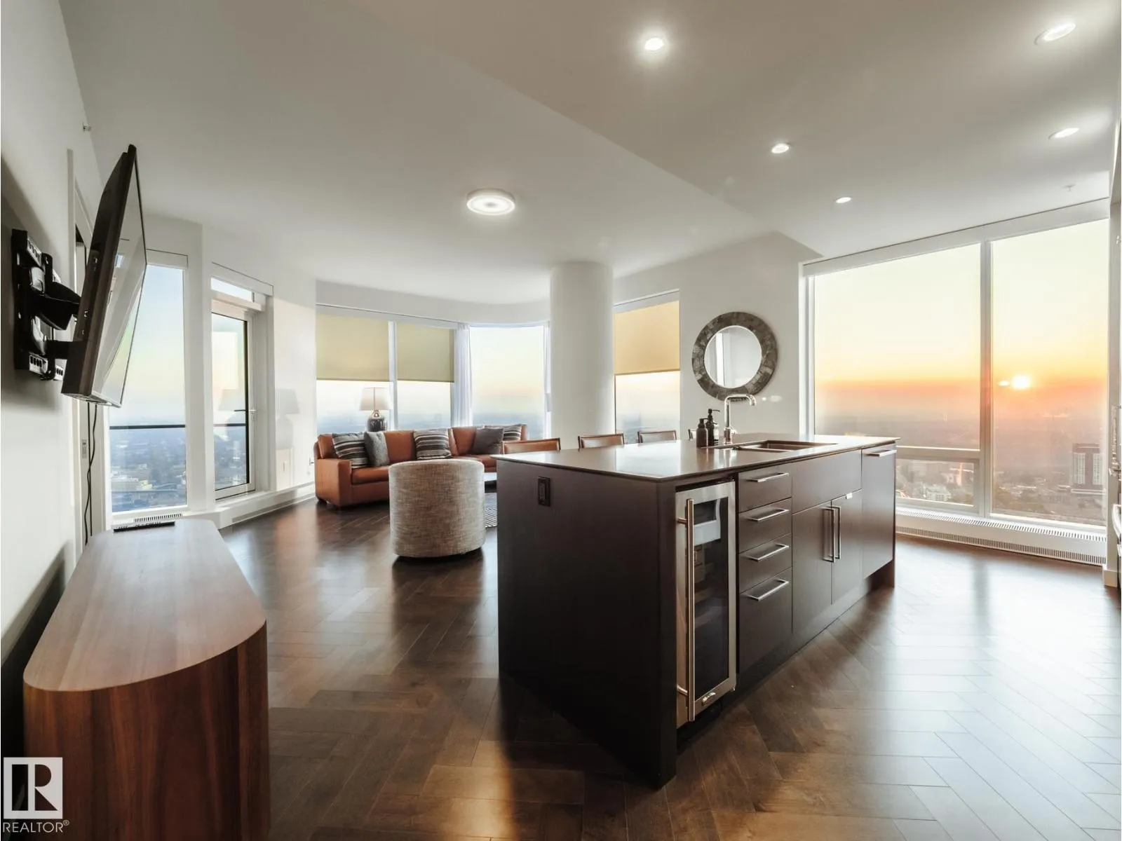EXCLUSIVE 44TH FLOOR SUITE BOASTING PREMIUM DESIGNER FINISHES....SPECTACULAR PANORAMIC VIEWS....ARCHITECTURAL PERFECTION....HERRINGBONE LAID HARDWOOD FLOORS....WHEN NOTHING BUT THE BEST WILL DO...~!WELCOME HOME!~ First steps into your new LIFESTYLE; perfect foyer leads towards the HEART of the condo. Spectacular kitchen, high end appliances w/ built in wine fridge, and a warm modern flavour. CURTAIN WALL GLASS is everywhere * custom powered window treatments lets you decide on the birds eye city view or opulence exuding inside the unit! The living space falls nothing short of spectacular. The north wing has a dining room w/ views for days. Den/flex room on east side separates the primary bedroom; and yes it has a large walk through closet and proper spa/ensuite. What could be a third bedroom is on the west side of the unit( also well appointed!) all perched on top of the ice district, JW MARRIOT, comes w/ concierge, access to pool & ARCHETYPE gym, dinning, shopping & more. Second parking stall optional* (id:27476)